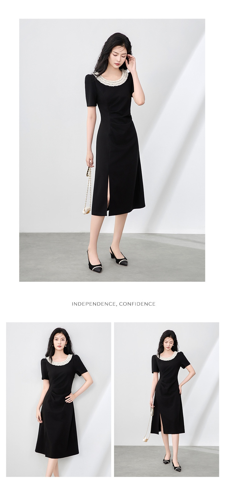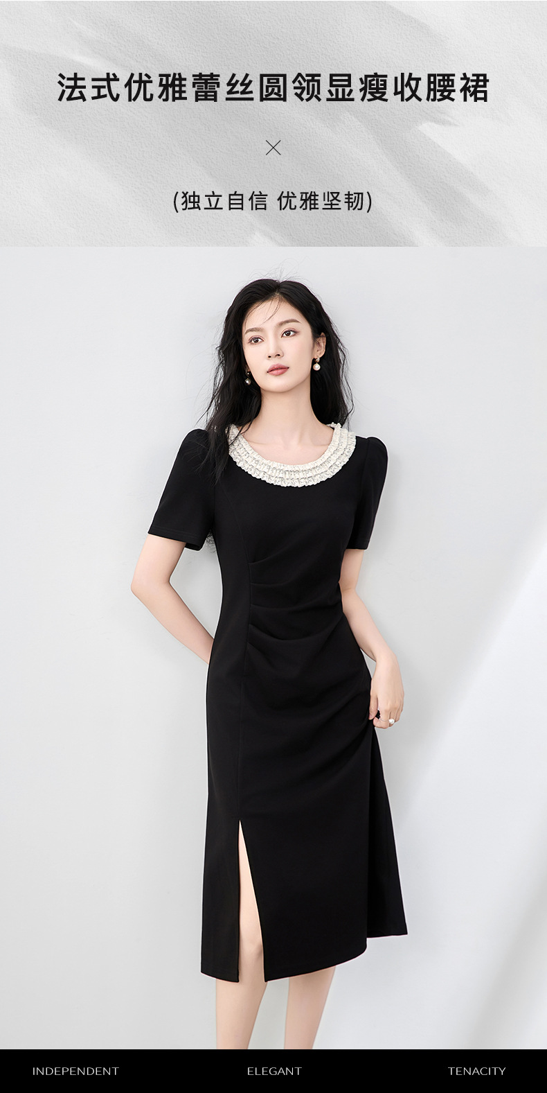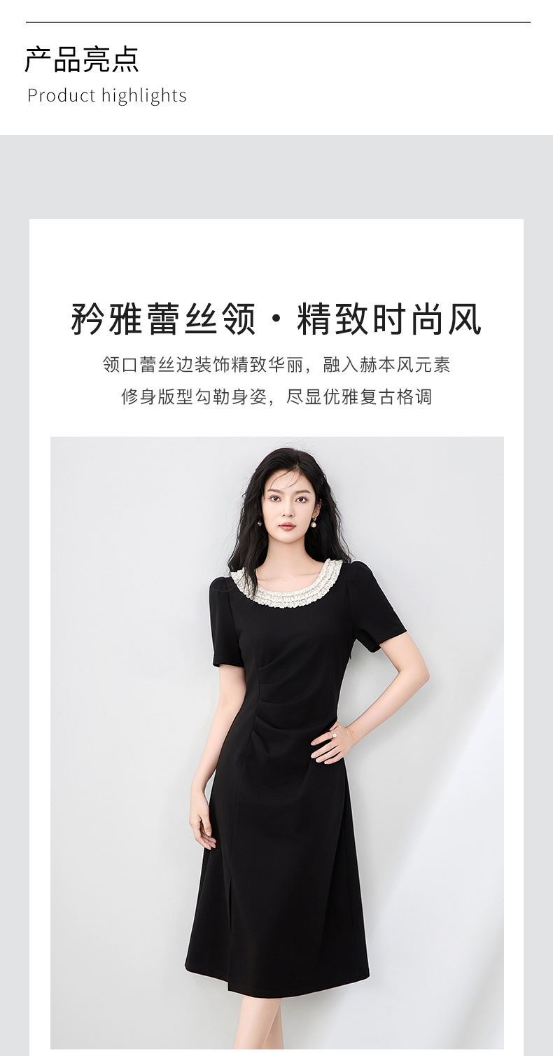 「高货wl」全新升级【铂金会员293/天猫399/差价106】(01150)洛诗琳法式蕾丝拼接连衣裙2025夏季侧开叉收腰显瘦裙子