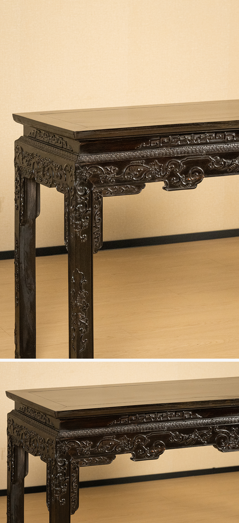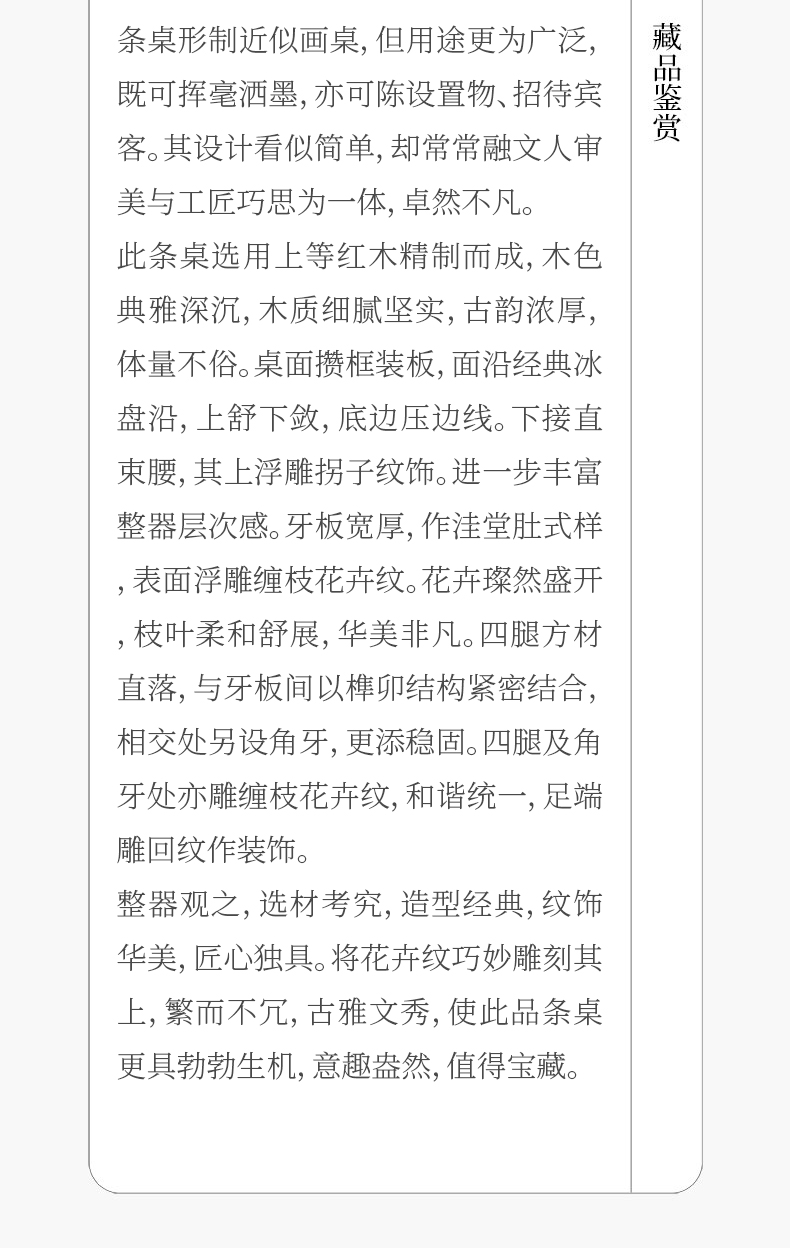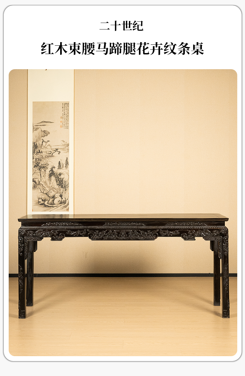 二十世纪 红木束腰马蹄腿花卉纹条桌