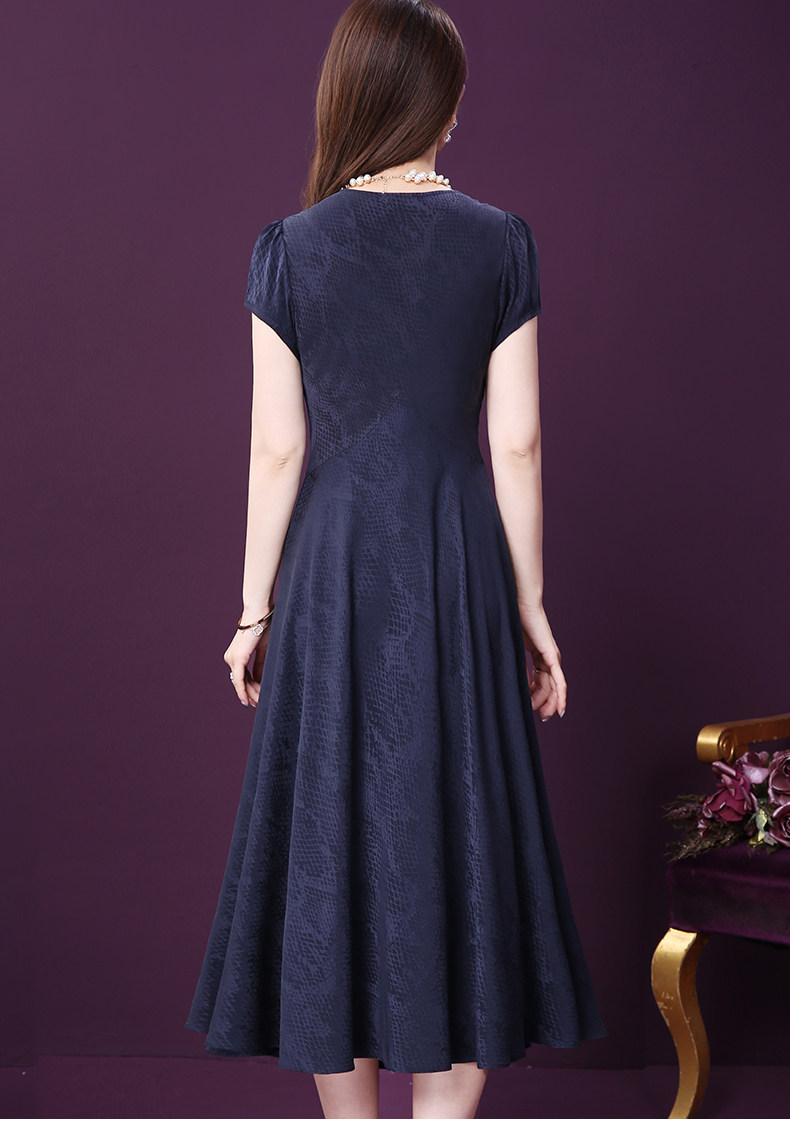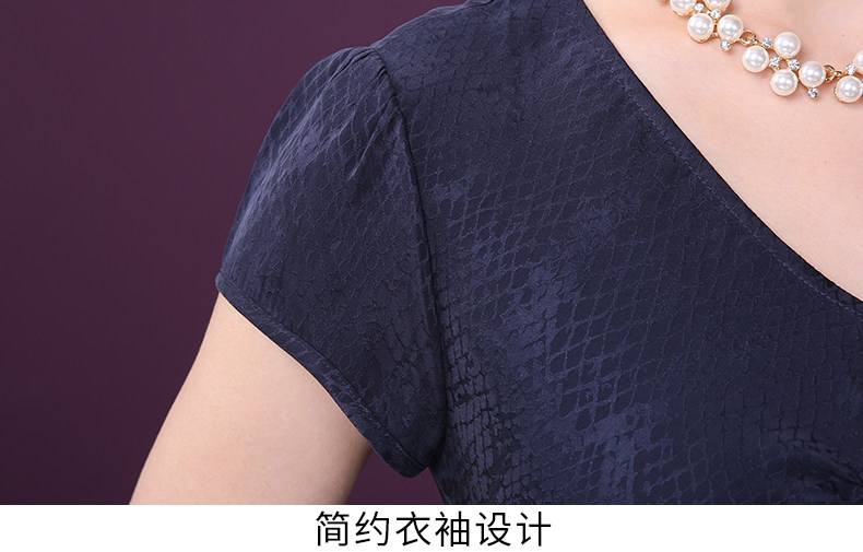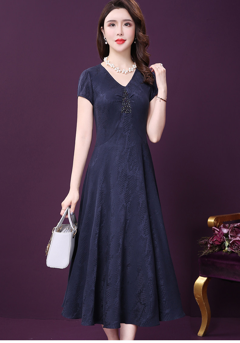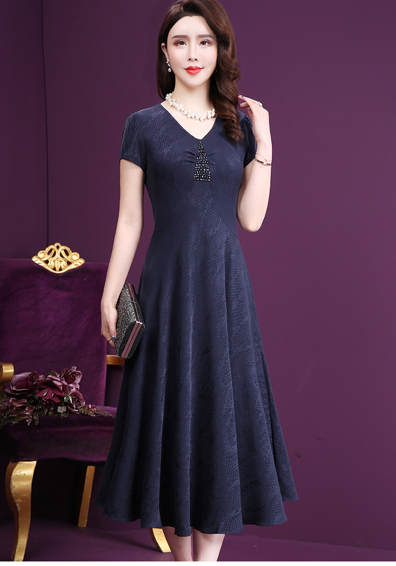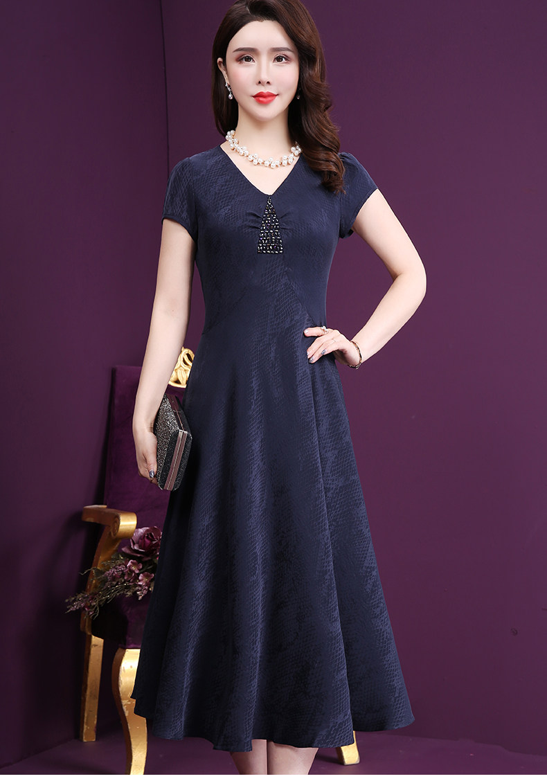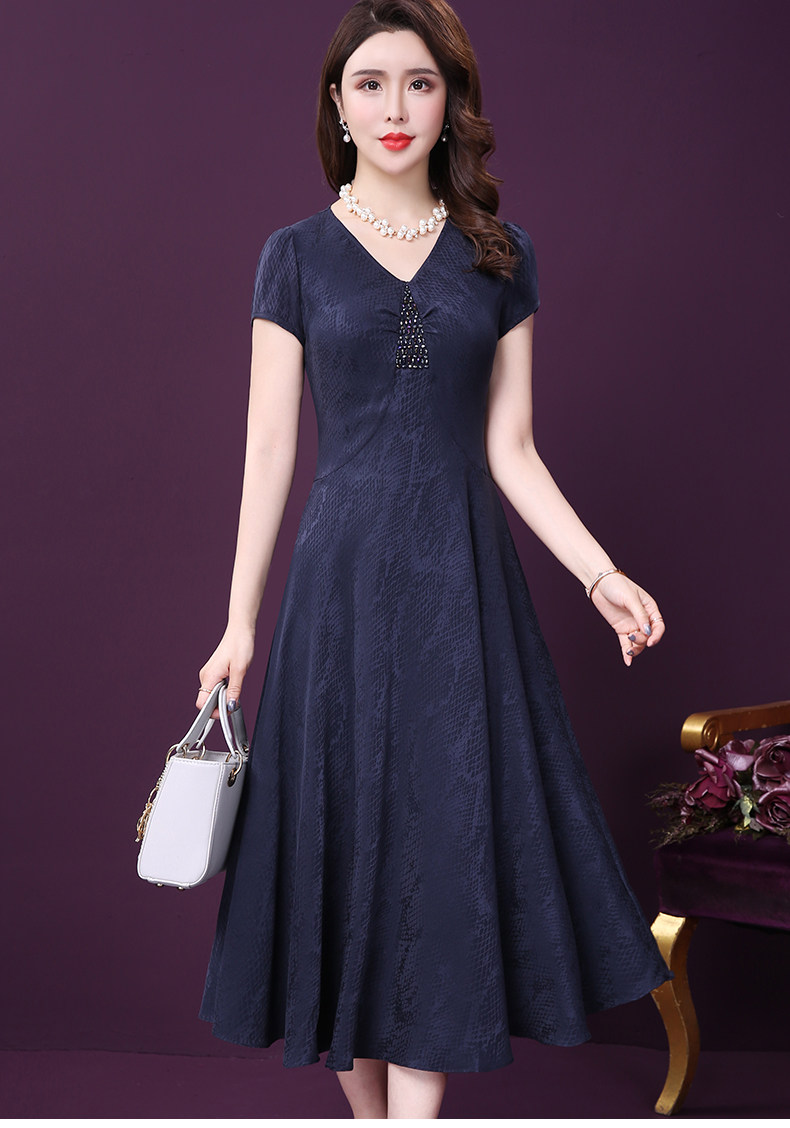 WXY-W-XY-1300真丝 新款V领高贵阔太太中年女士韩版简约A字裙