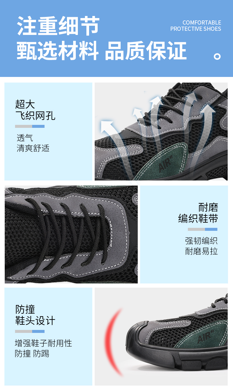 2024新款夏季透气男士防砸防刺劳保鞋橡胶大底耐磨款