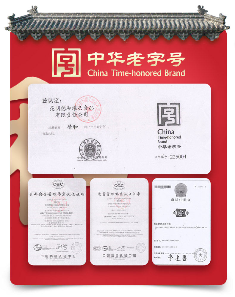 昆明德和罐头厂是中国最早开始生产制造罐头的企业之一,至今已有九十八年的悠久历史,现已形成以罐头食品为主,腌腊制品、糕点月饼等为辅的云南省规模最大和最具影响力综合食品制造企业,奠定了云南罐头行业的基石。