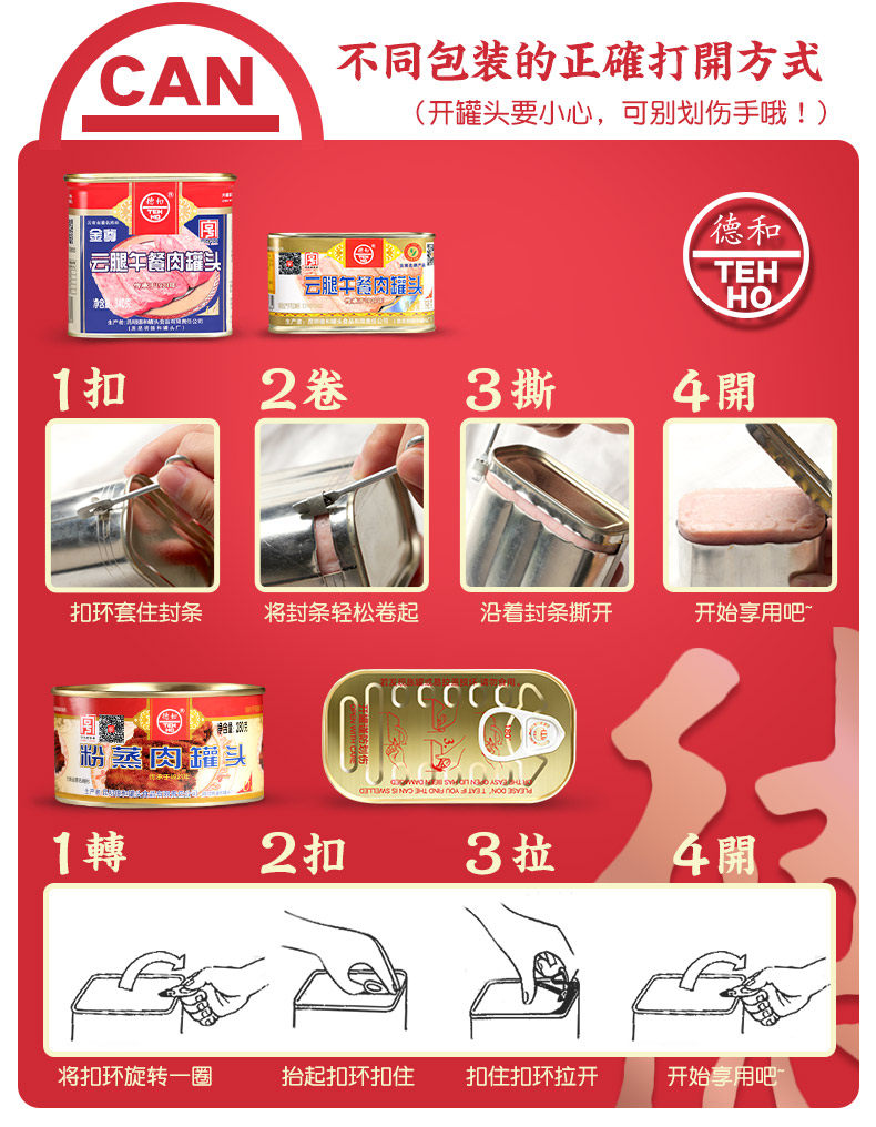 云南特产德和云腿午餐肉罐头340g*5罐云南火腿罐头火锅食材速食