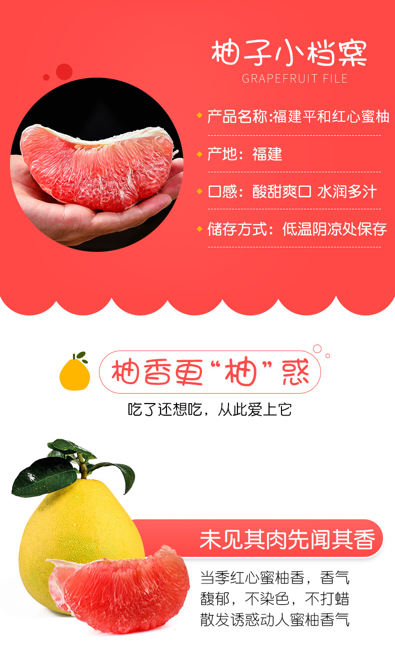 【福建·平和】琯溪蜜柚 红心蜜柚 一级精品蜜柚 下单送开果器