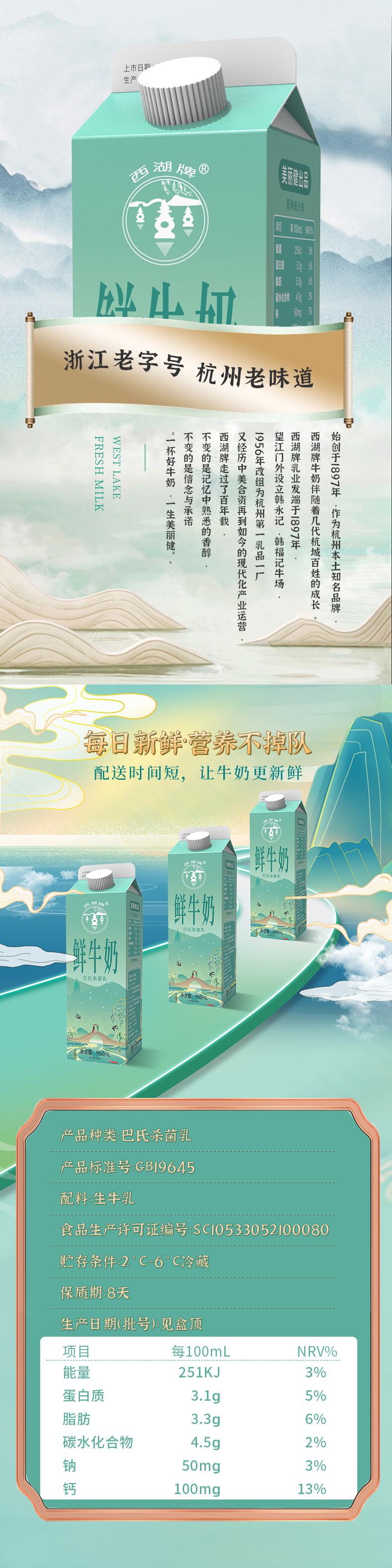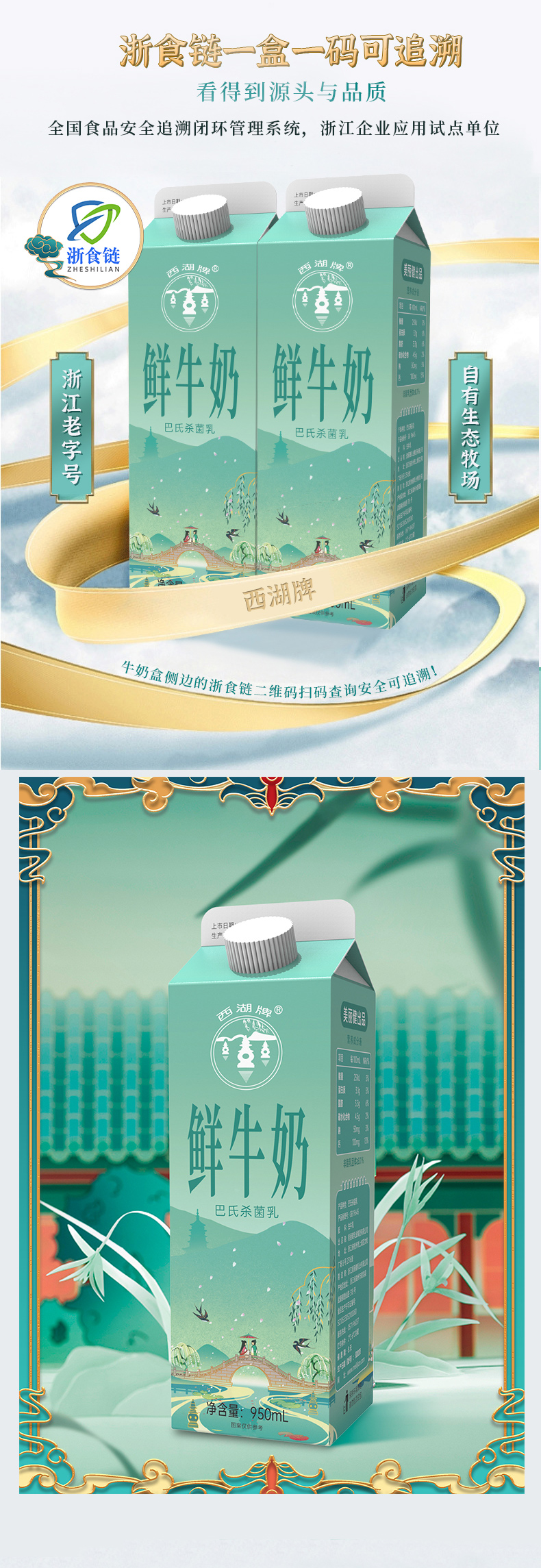【快递直达】美丽健西湖牌PET4.0鲜牛奶500g