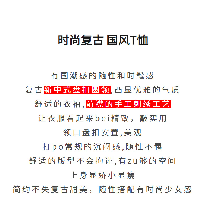 新中式短袖棉t恤绣花刺绣 XY-T4C0621