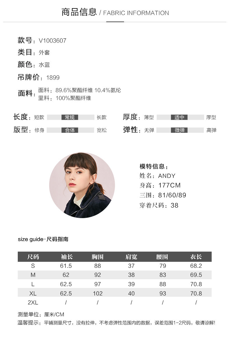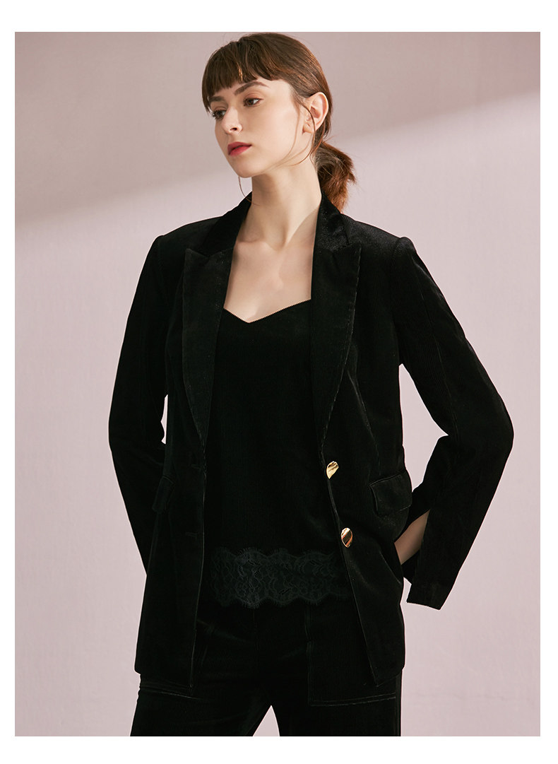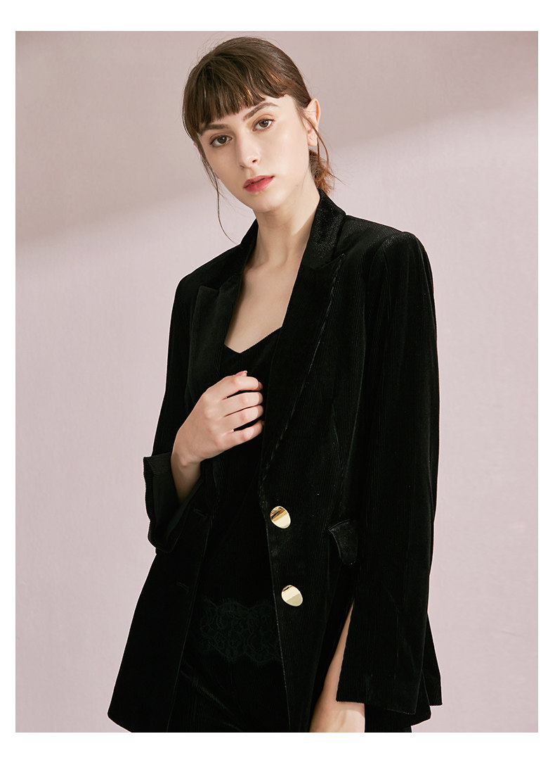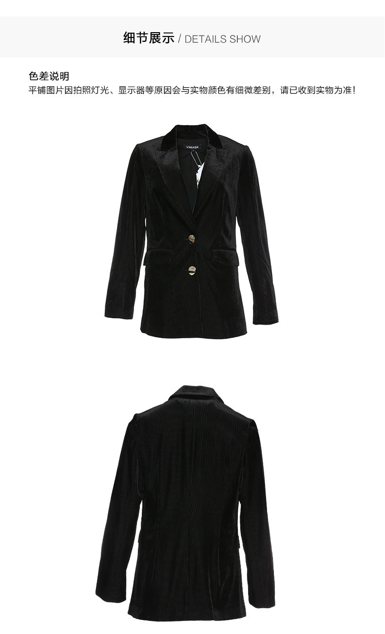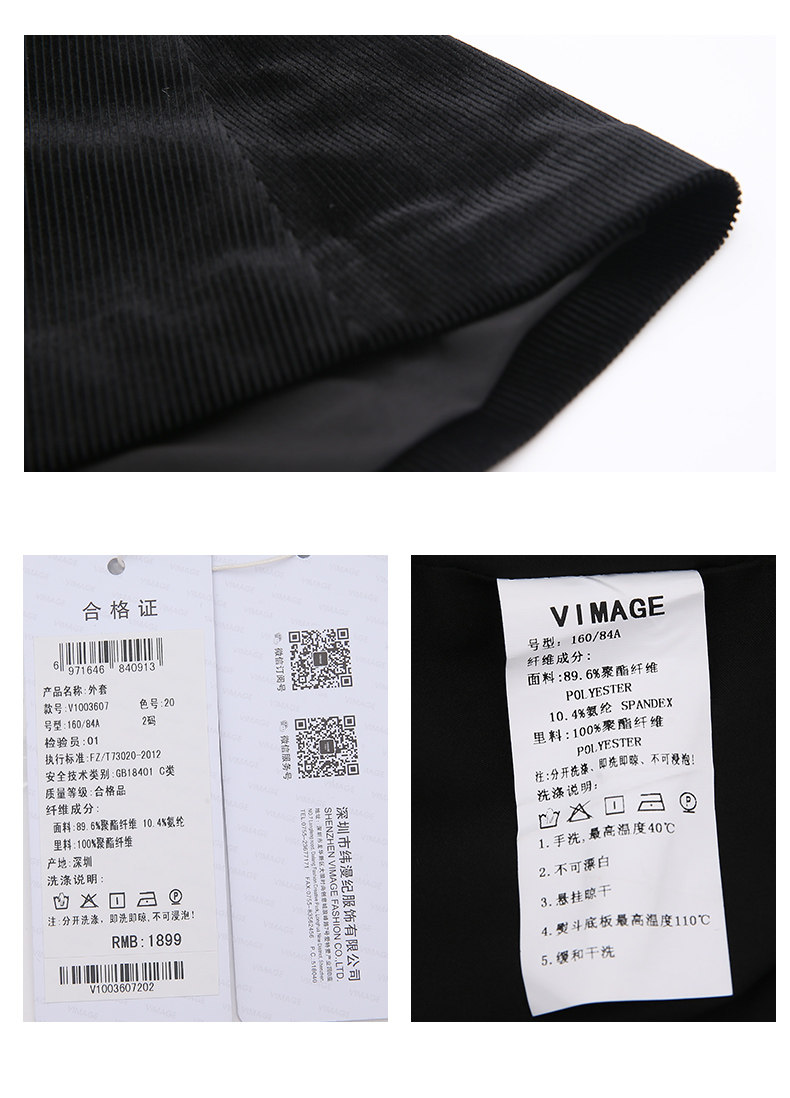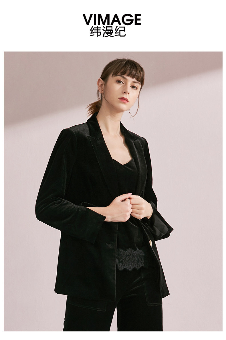VIMAGE纬漫纪品牌女装冬季时尚修身长袖西装领短外套女V1003607