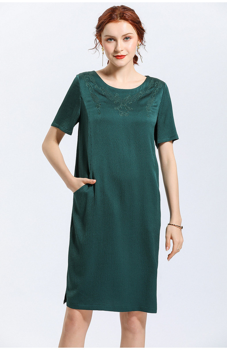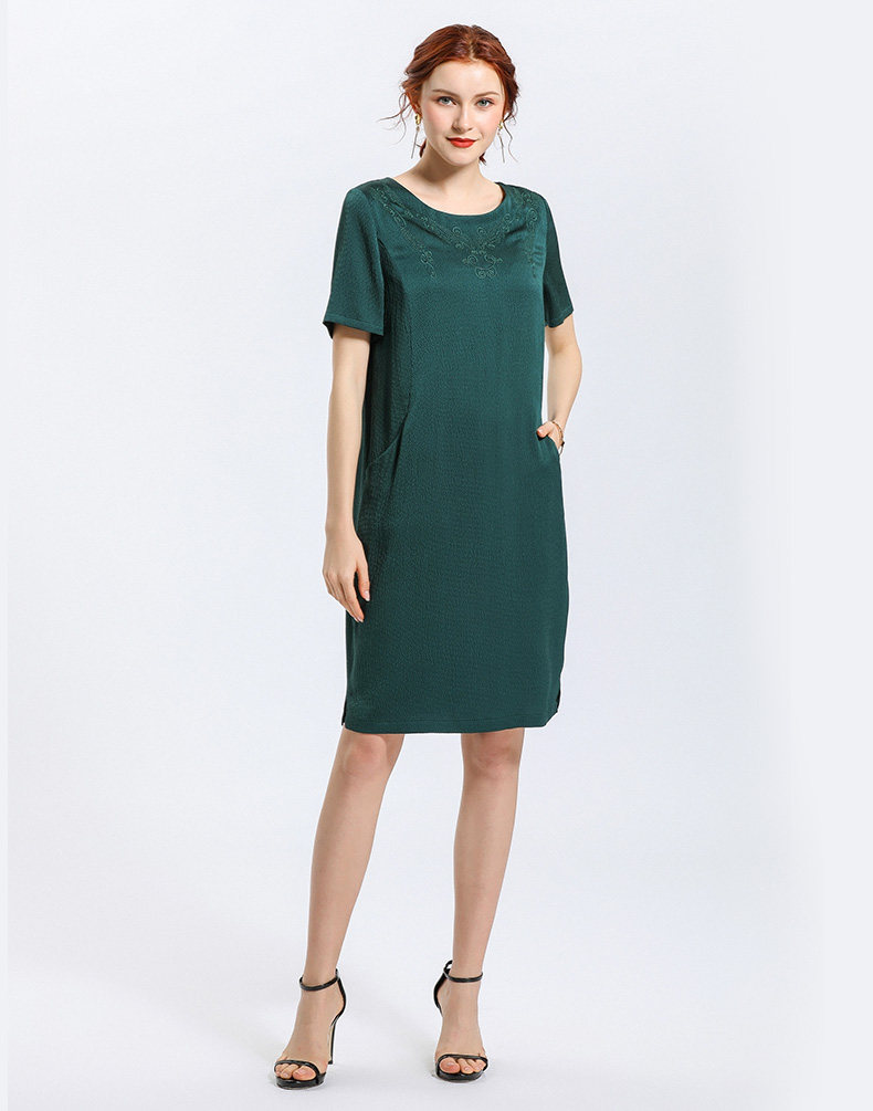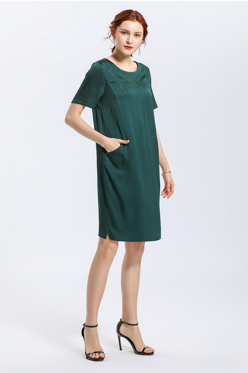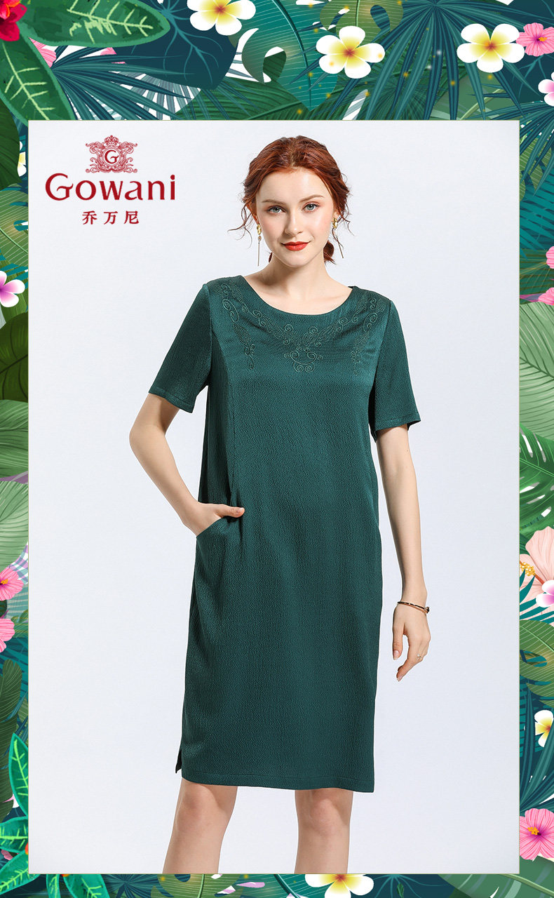 乔万尼夏季时尚桑蚕丝气质宽松中长款真丝连衣裙EN2E541
