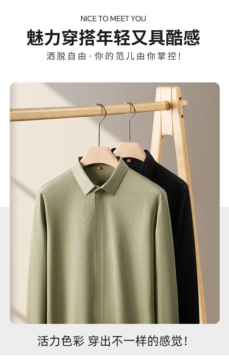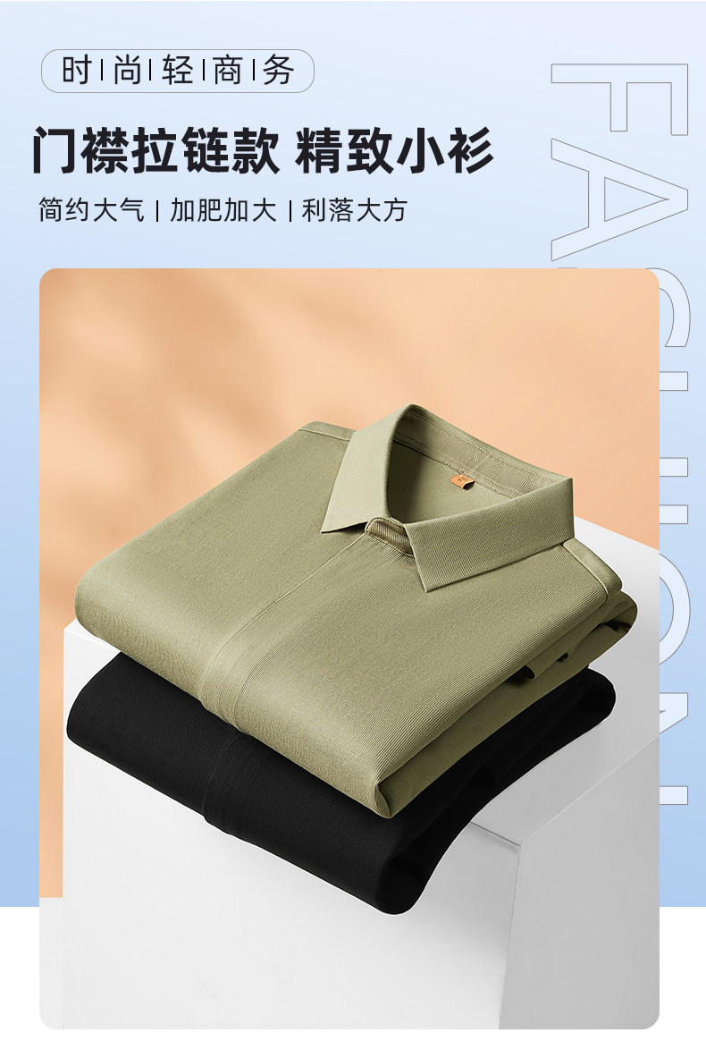 【DDP】大依优型大码男装春季门襟拉链款长袖衬衫无痕商务休闲棉质T恤