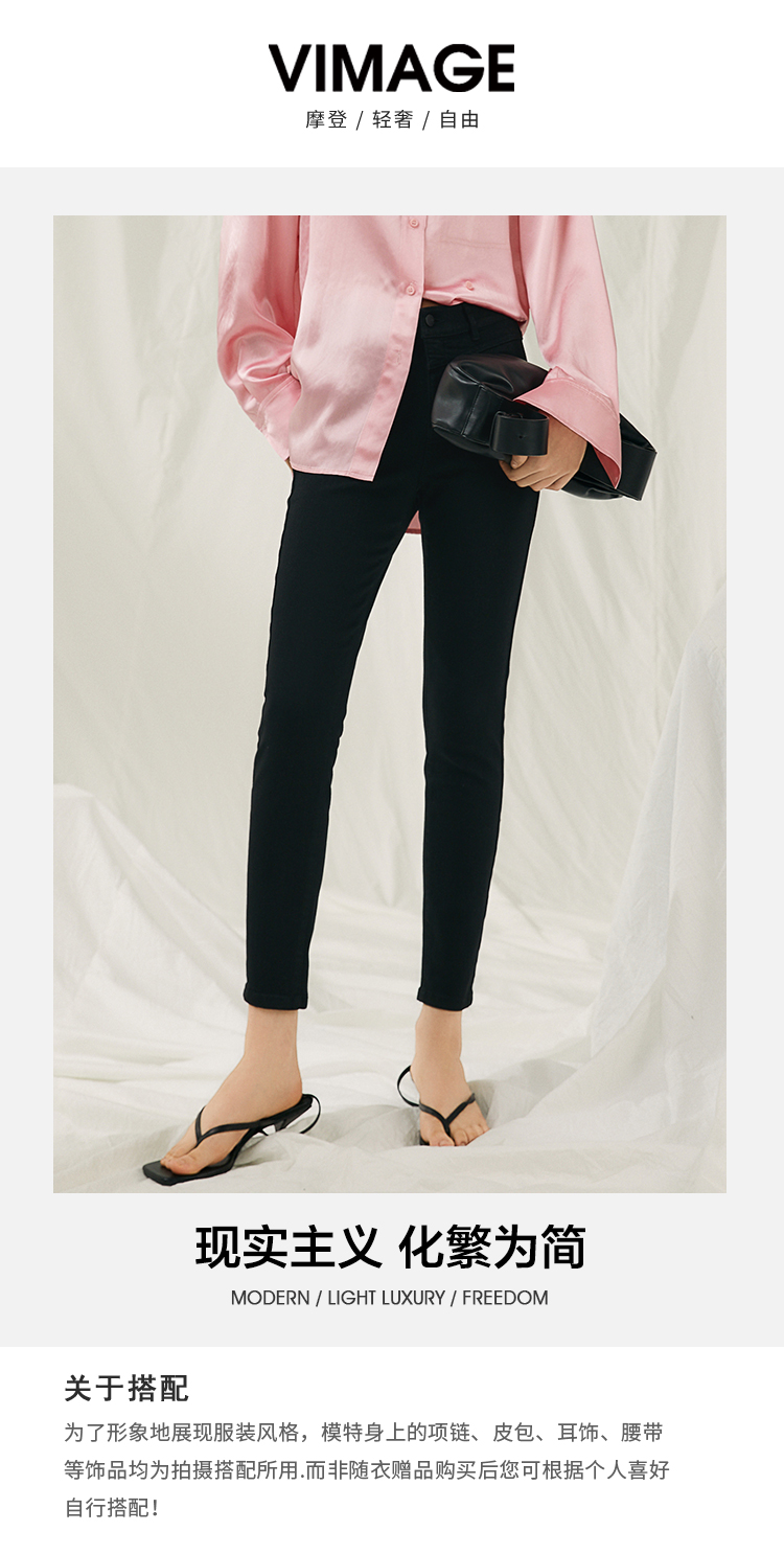 VIMAGE纬漫纪春季新款黑色小脚裤V1905521