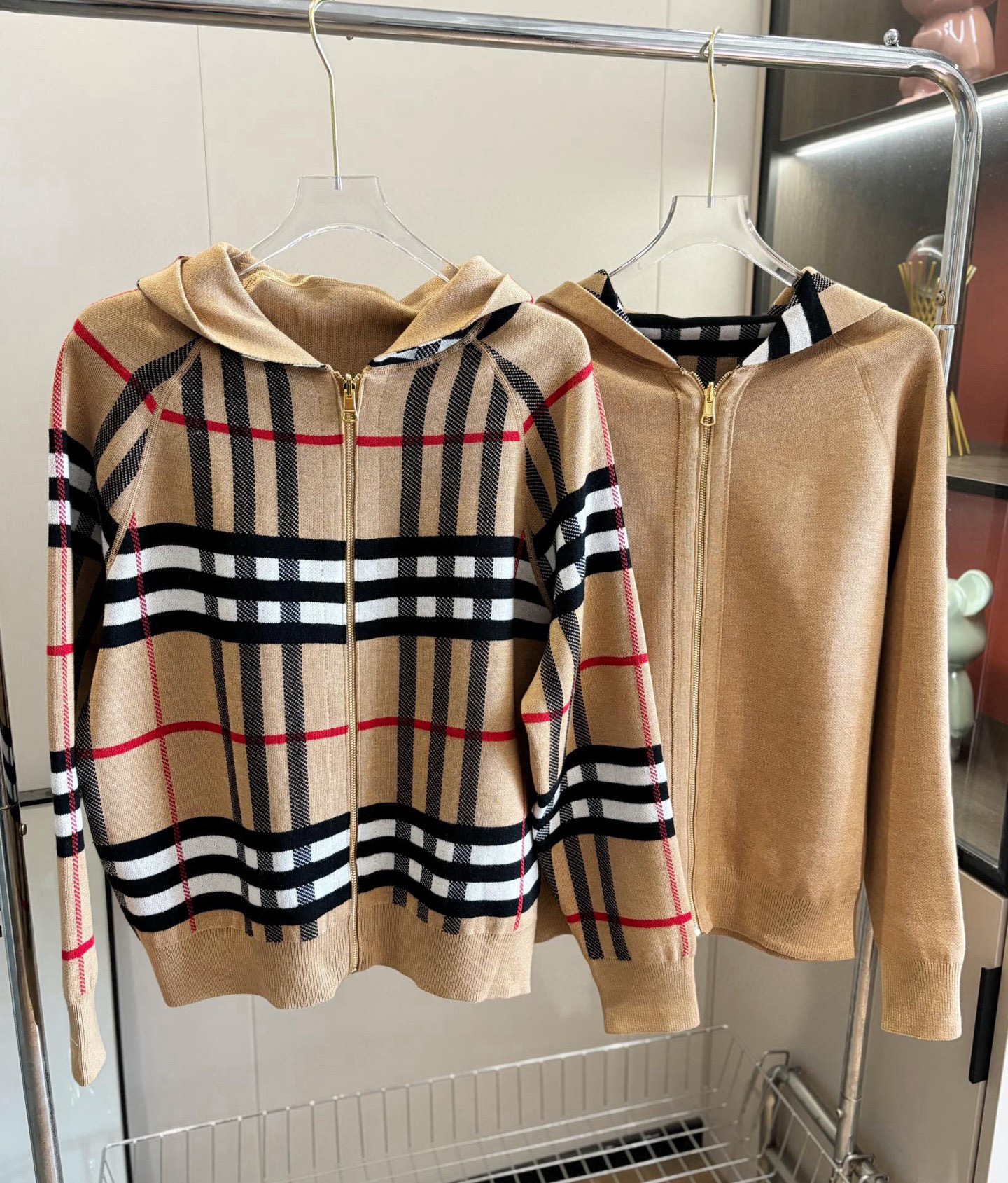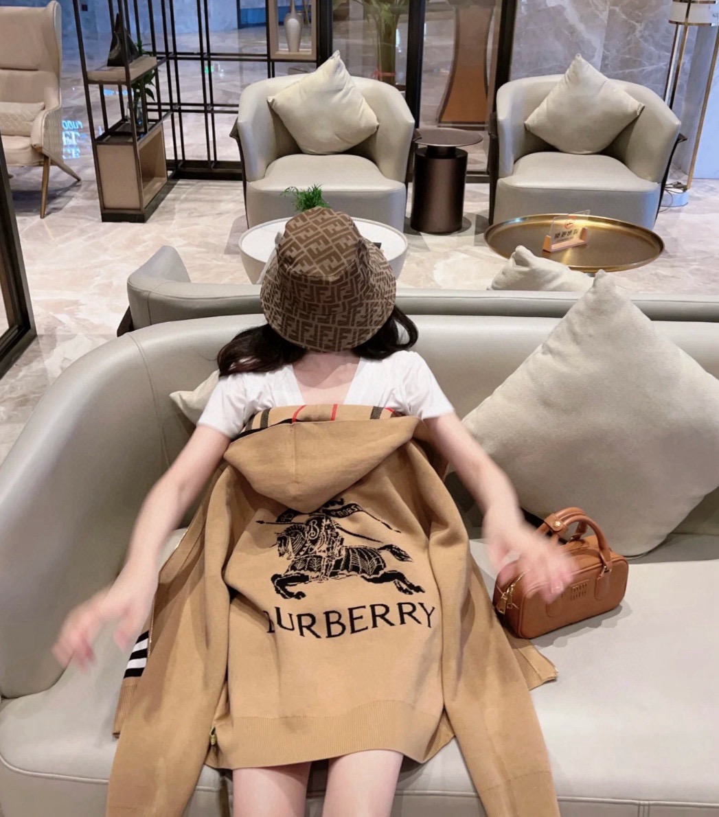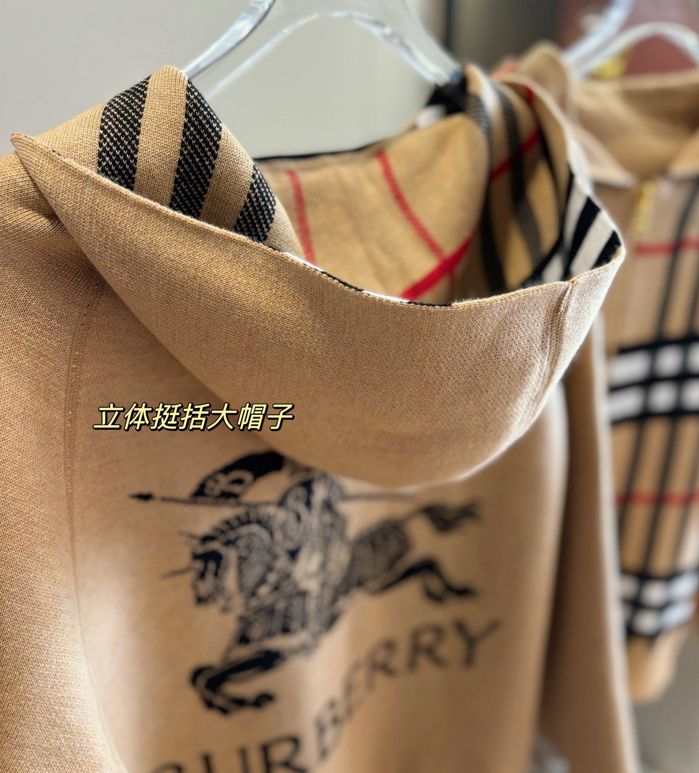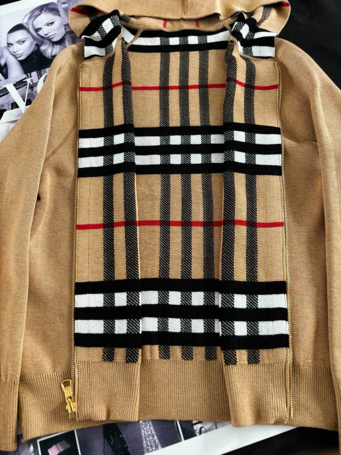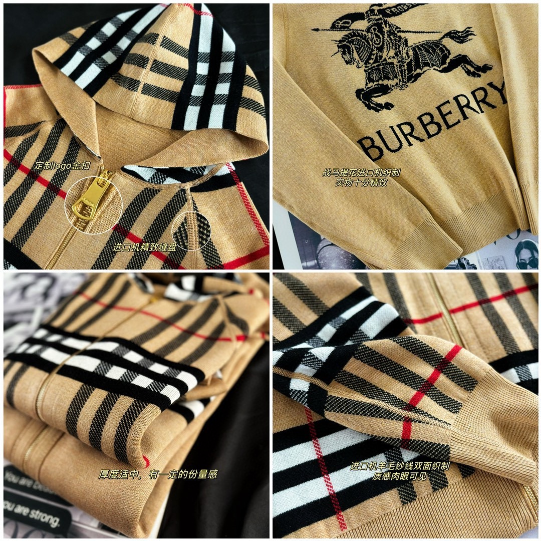 【高品质】Bbr 巴宝*莉经典格纹战马双面羊绒连帽拉链开衫外套®