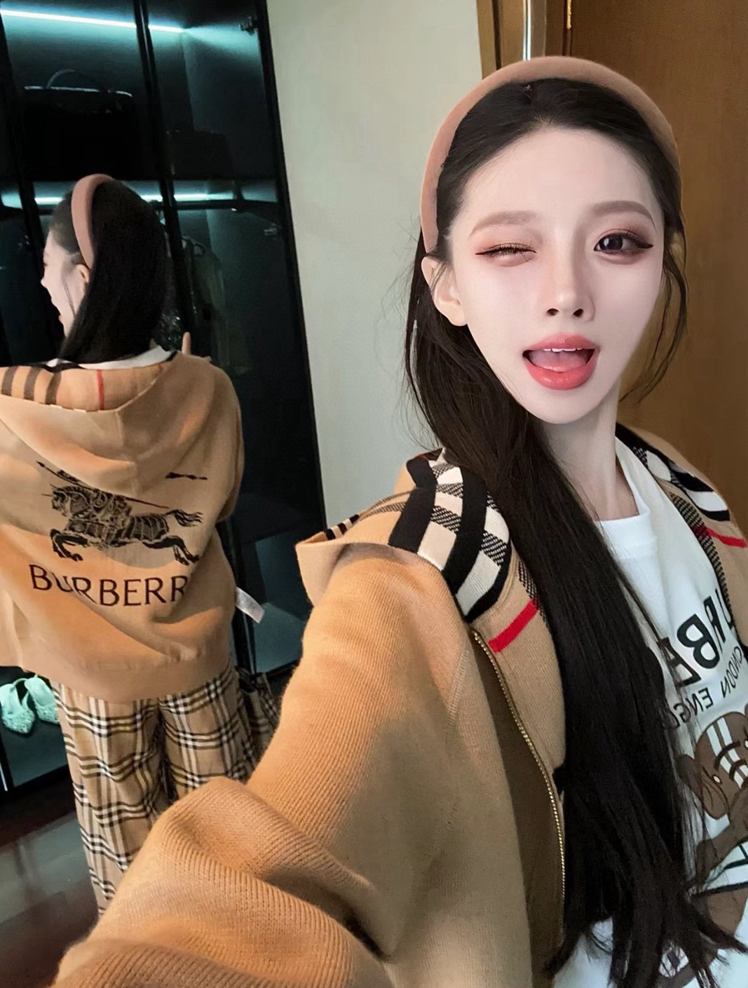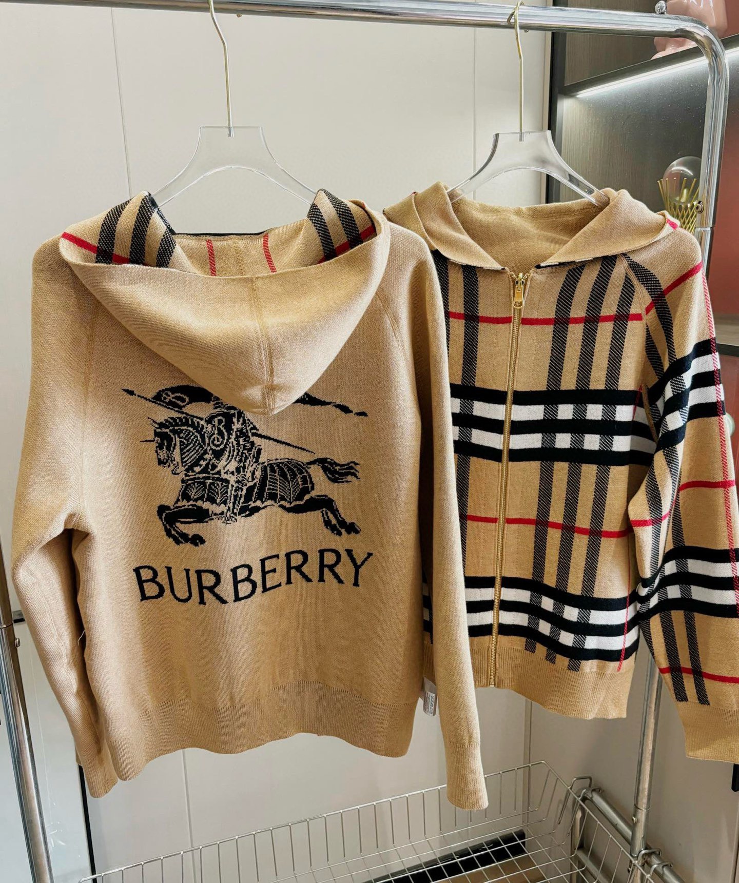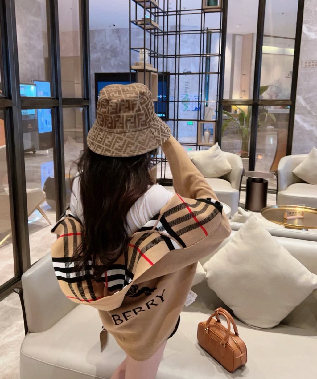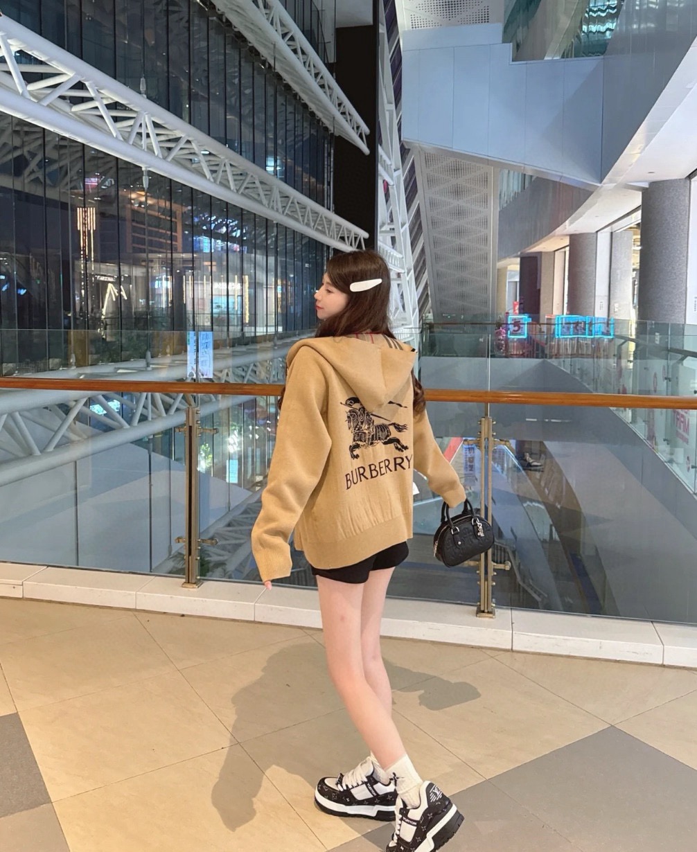 【高品质】Bbr 巴宝*莉经典格纹战马双面羊绒连帽拉链开衫外套®