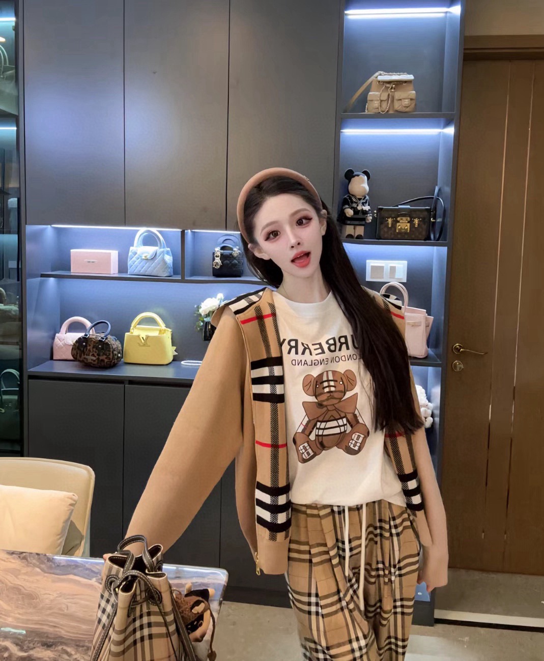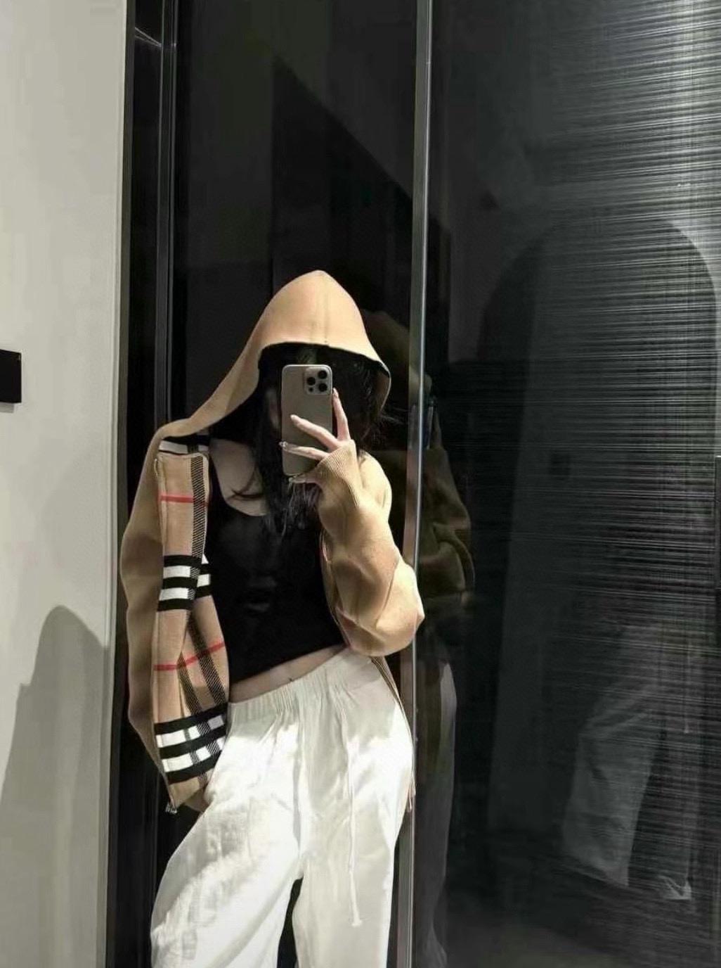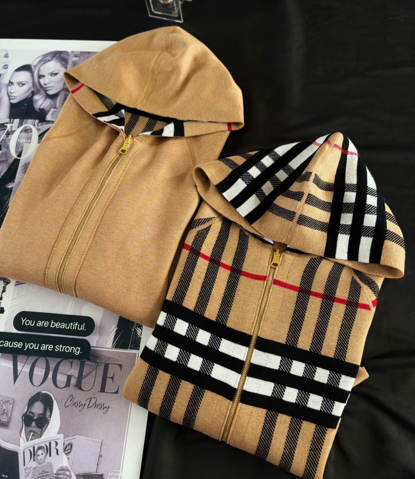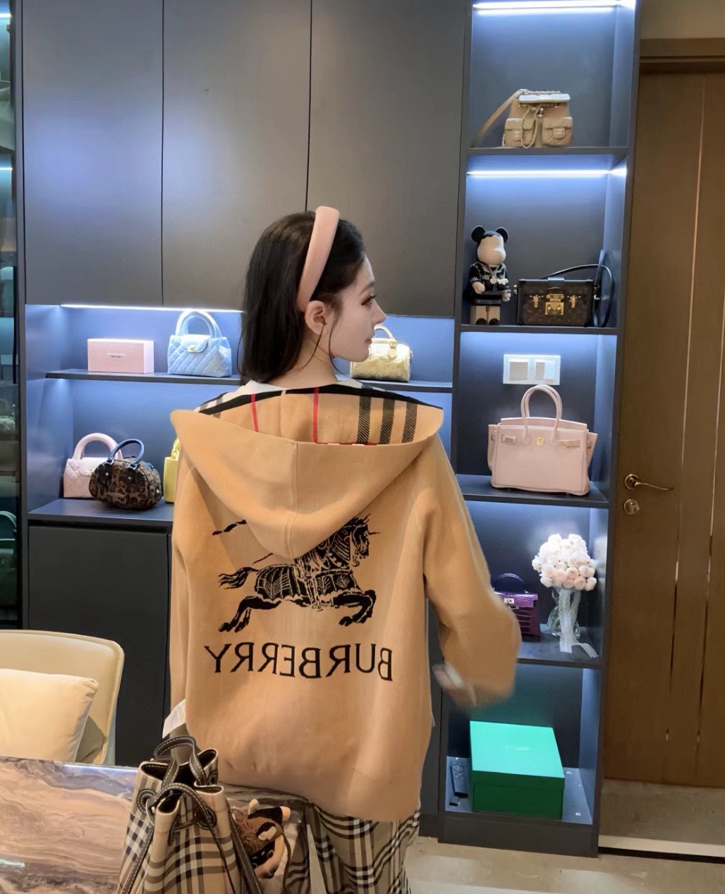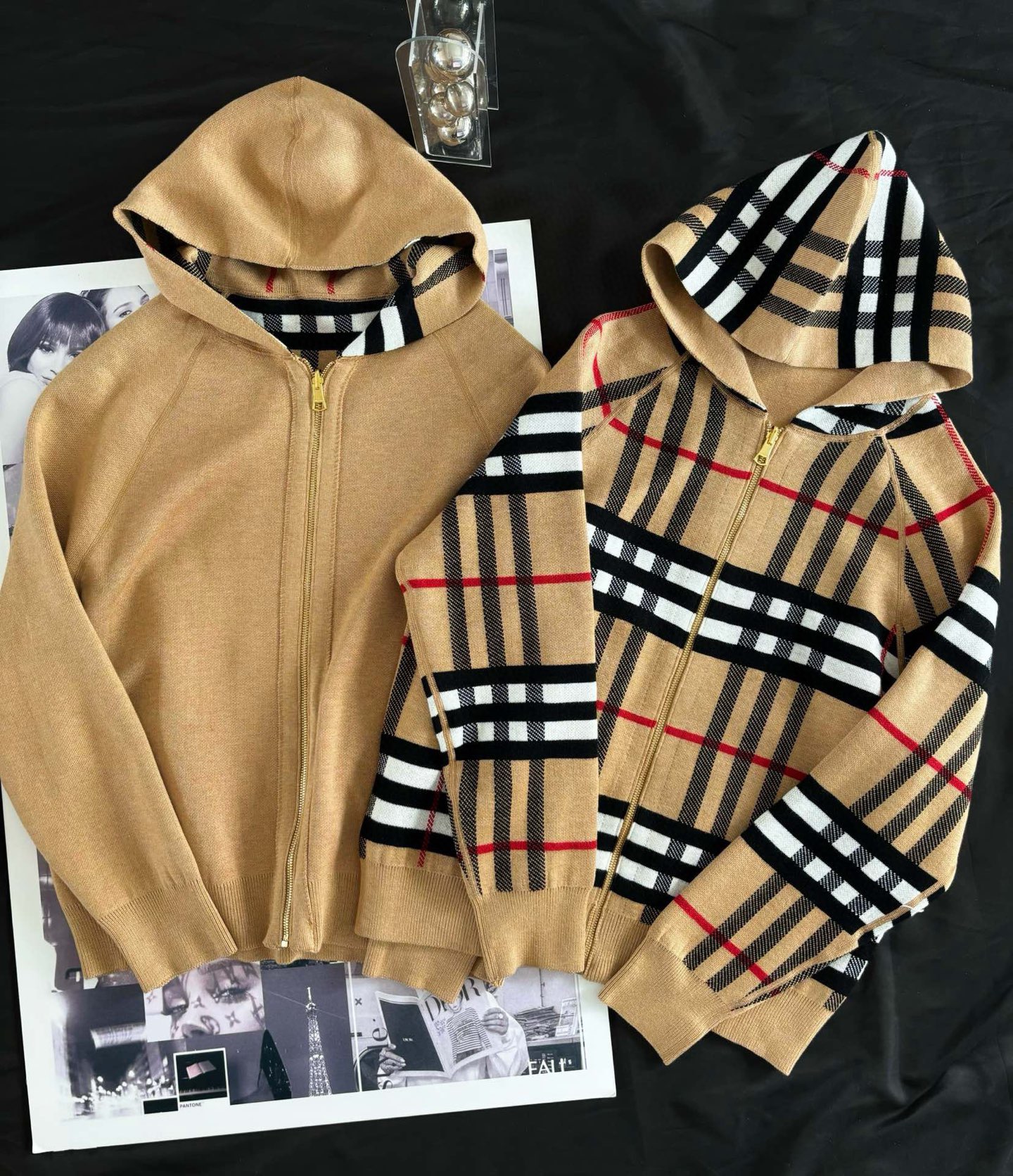 【高品质】Bbr 巴宝*莉经典格纹战马双面羊绒连帽拉链开衫外套®