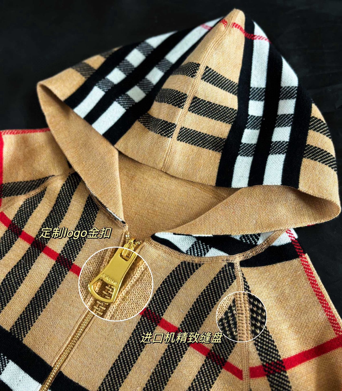 重磅经典中的经典,双面可穿羊绒面料很厚实,整件都是采用对格工艺,进口机提花织制,走线精致。