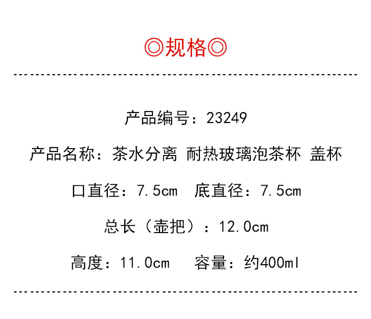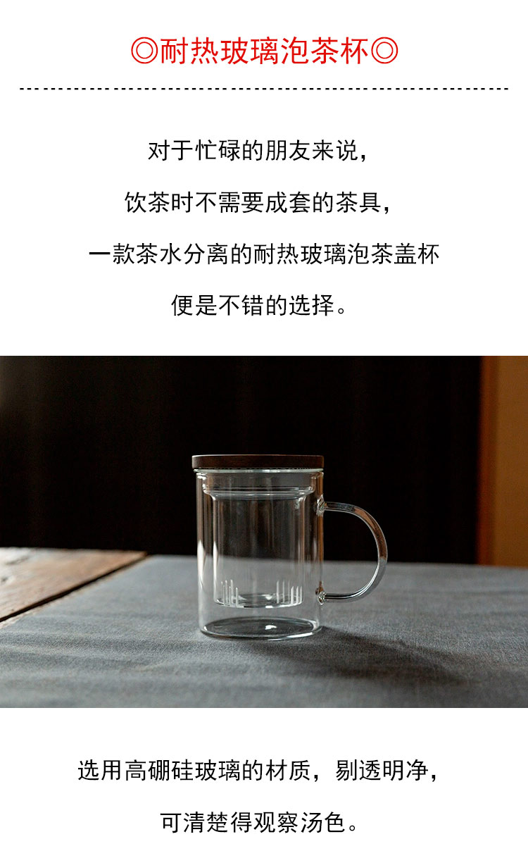 茶香记 茶水分离 耐热玻璃泡茶杯 盖杯 简便喝茶 大容量 个人杯