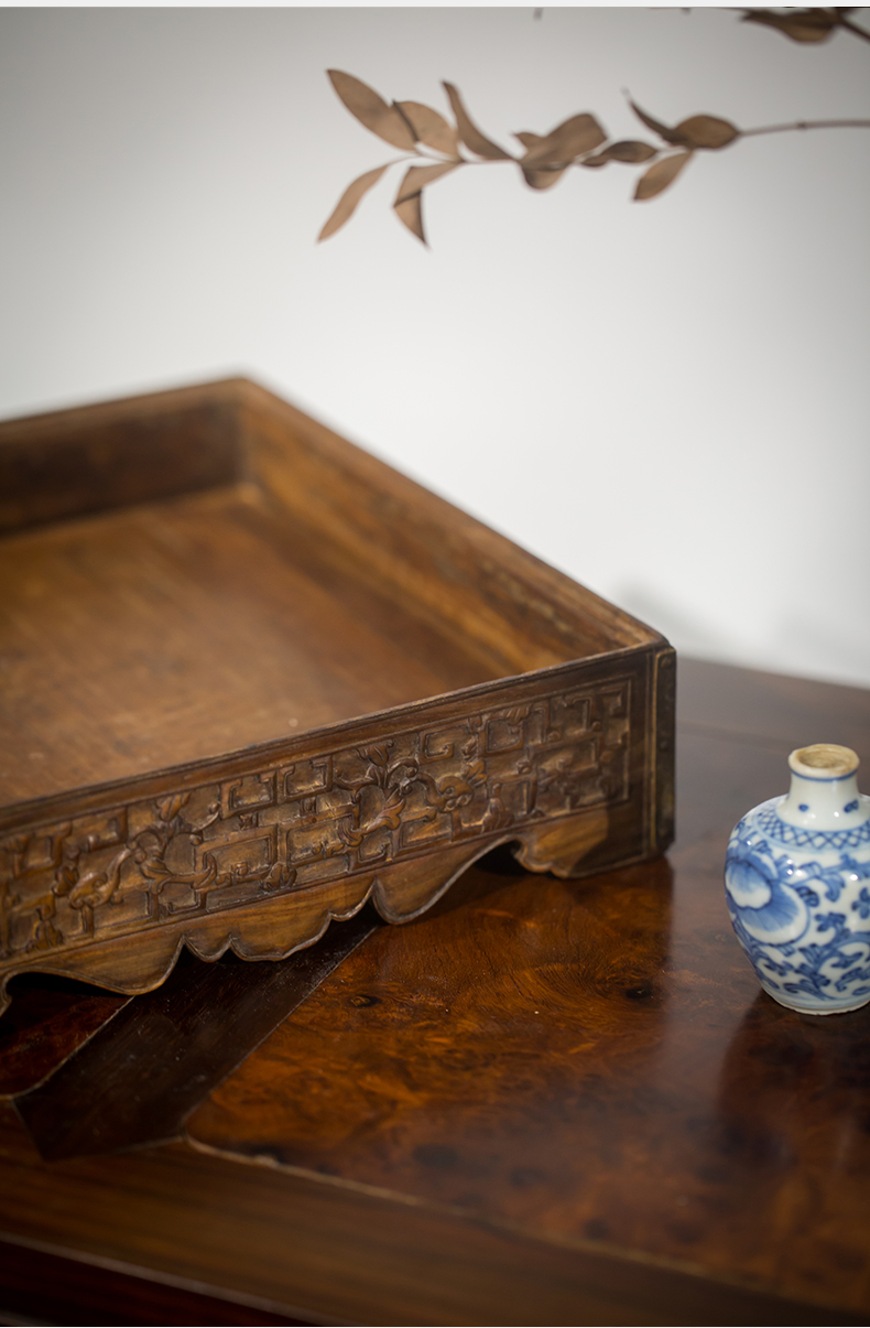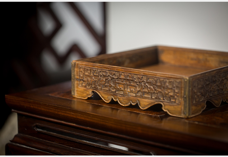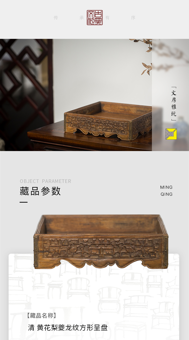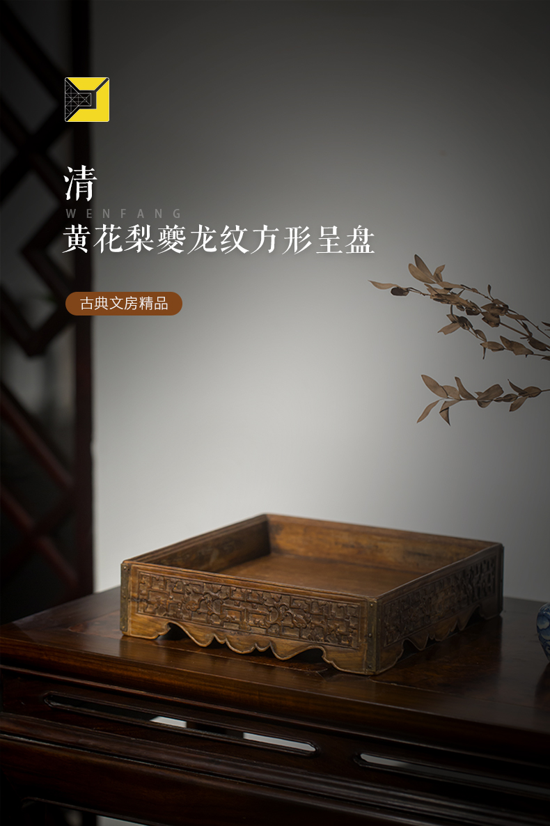 清代 黄花梨夔龙纹方形呈盘