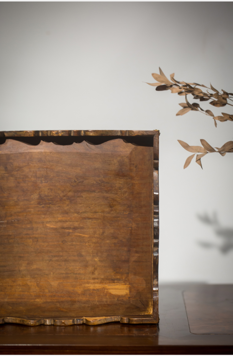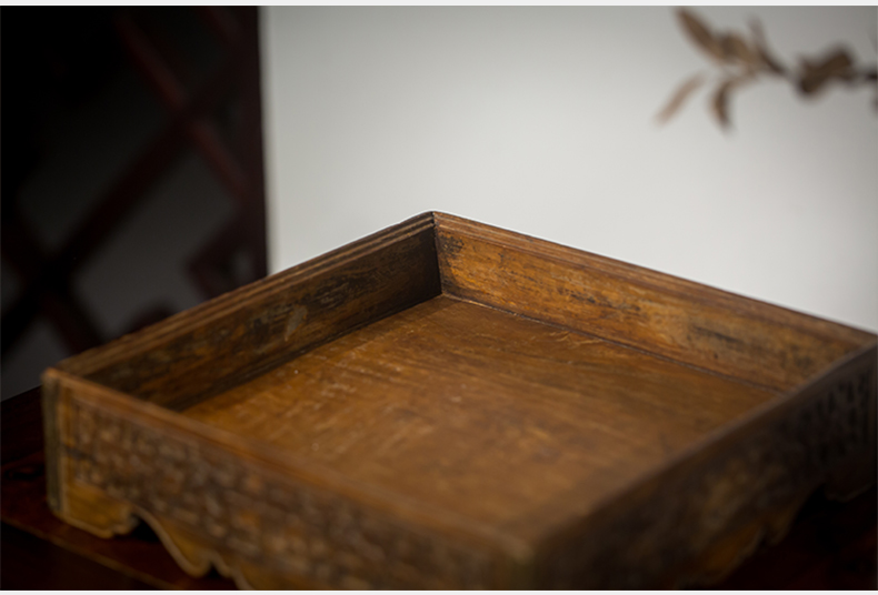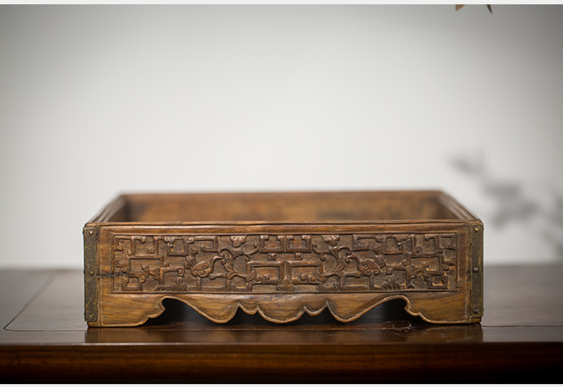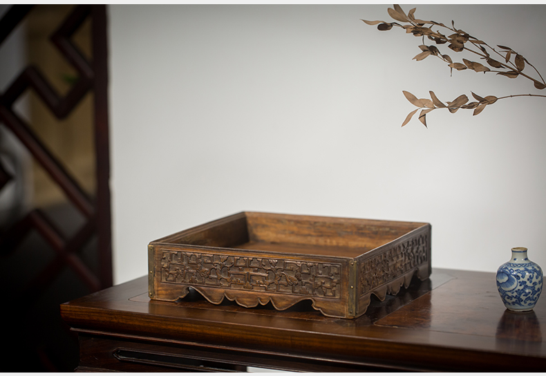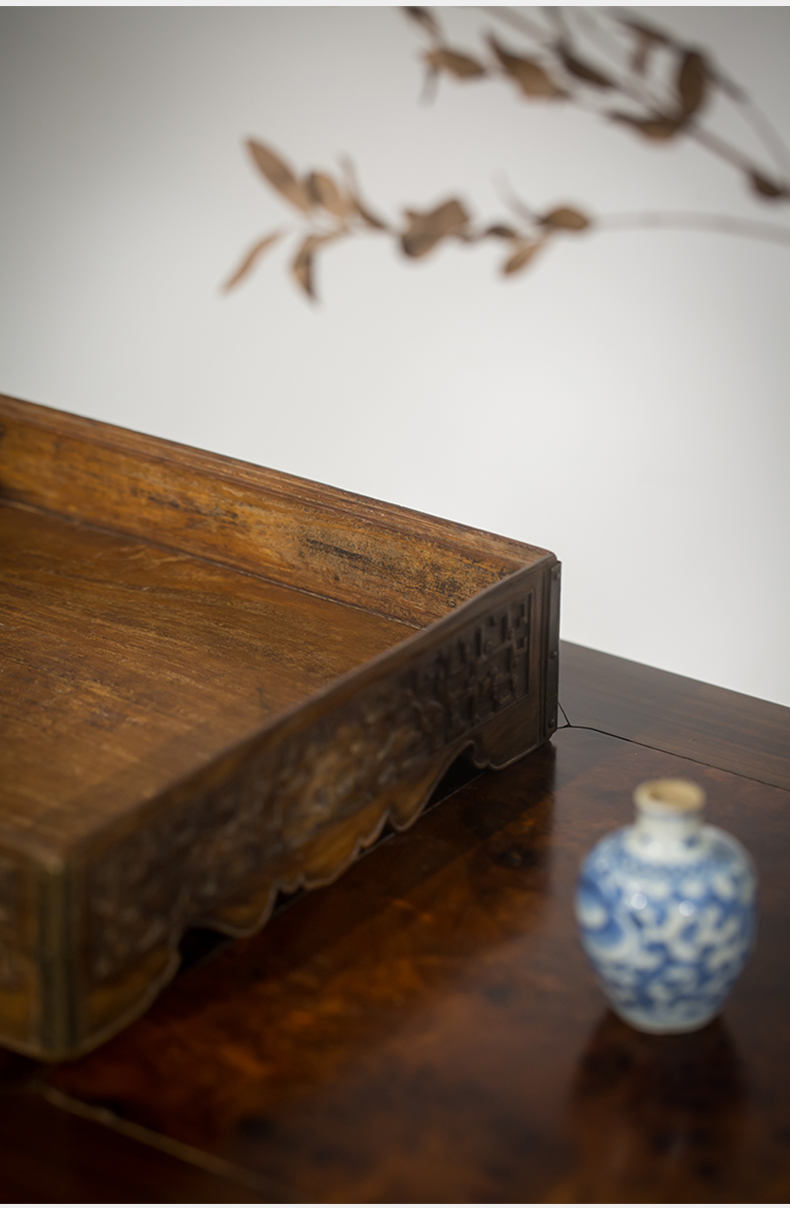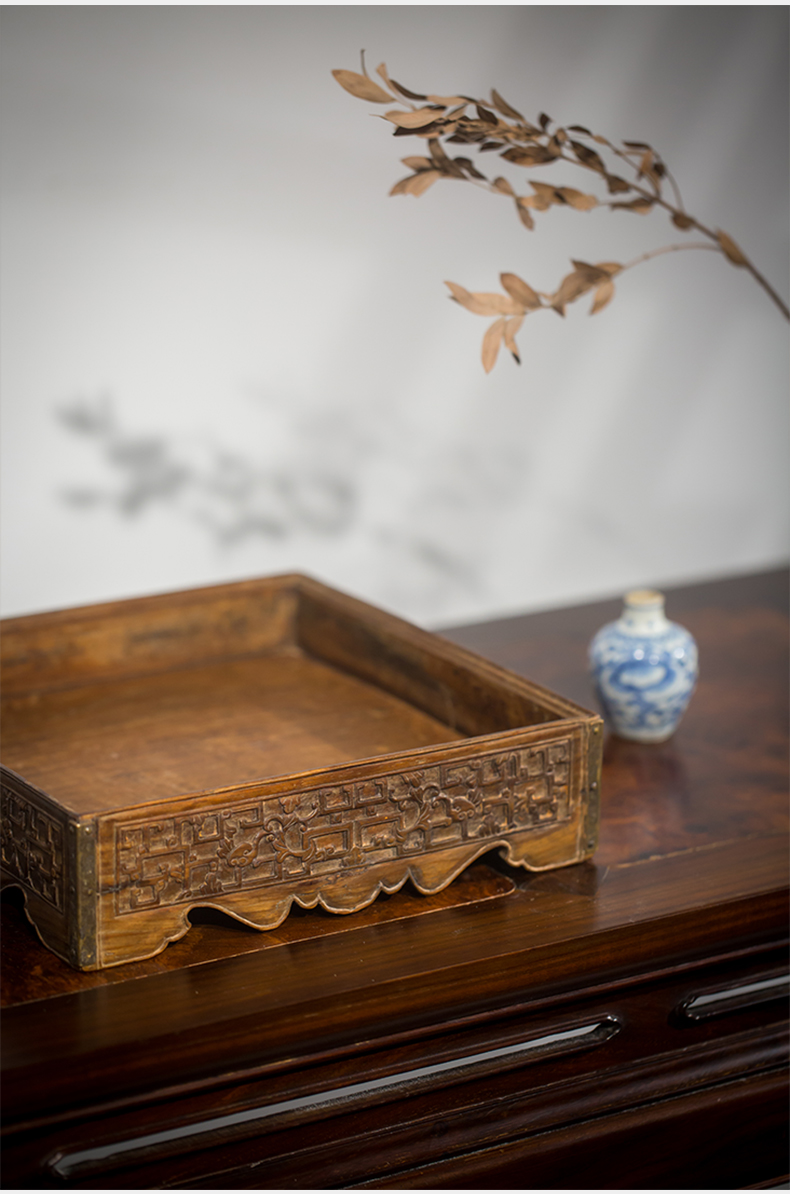 清代 黄花梨夔龙纹方形呈盘