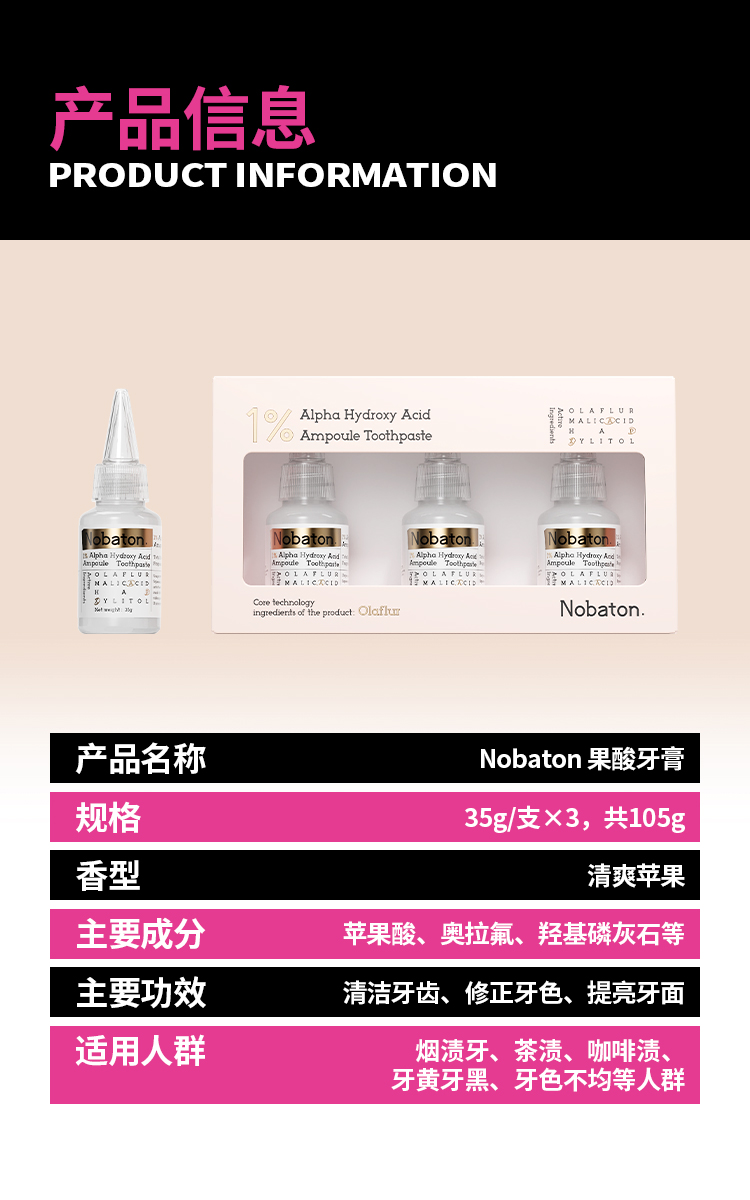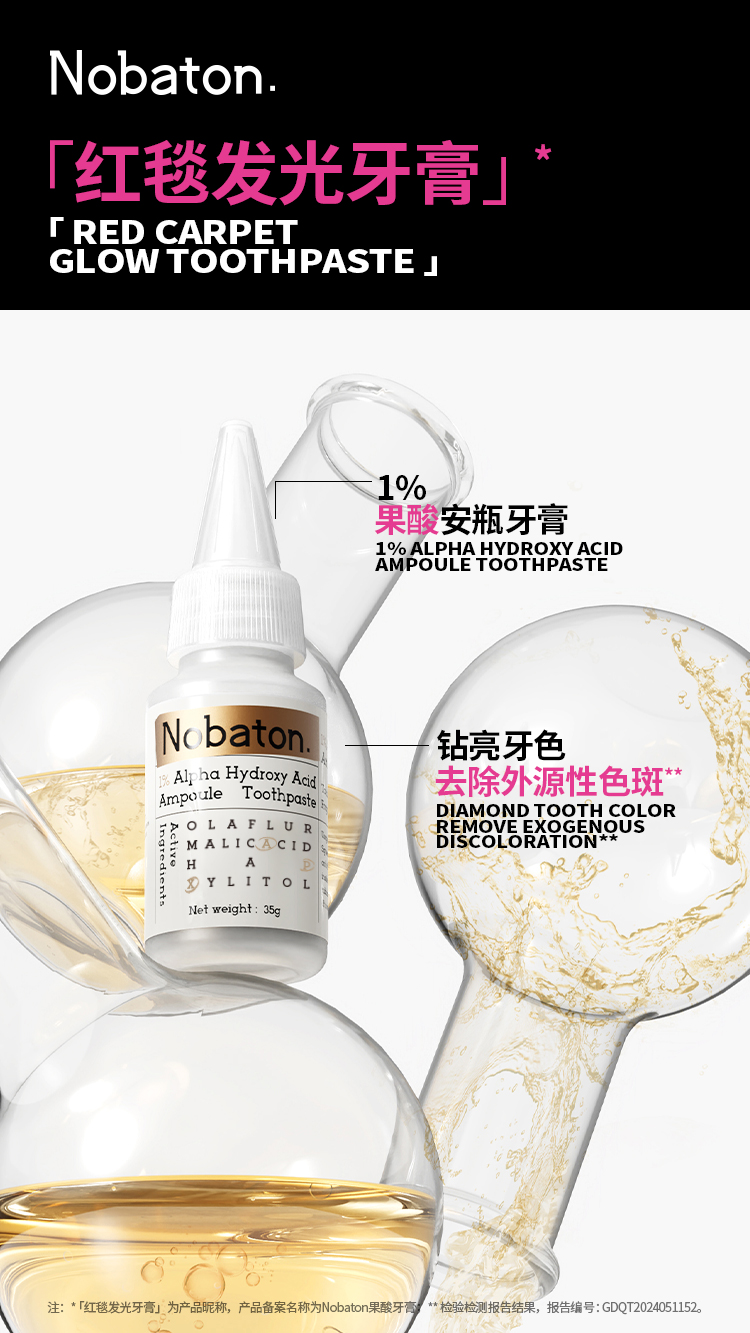 好莱坞明星推荐红毯发光牙膏 | 美国NOBATON诺巴顿安瓶牙膏(下单加赠1%果酸美白牙膏35g*1)