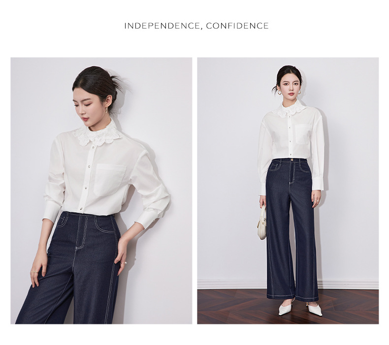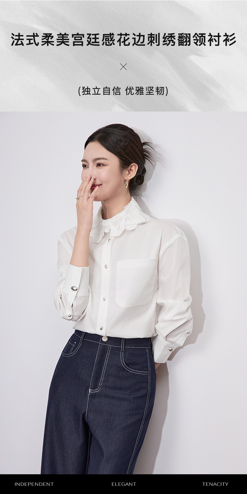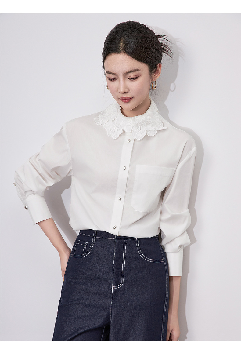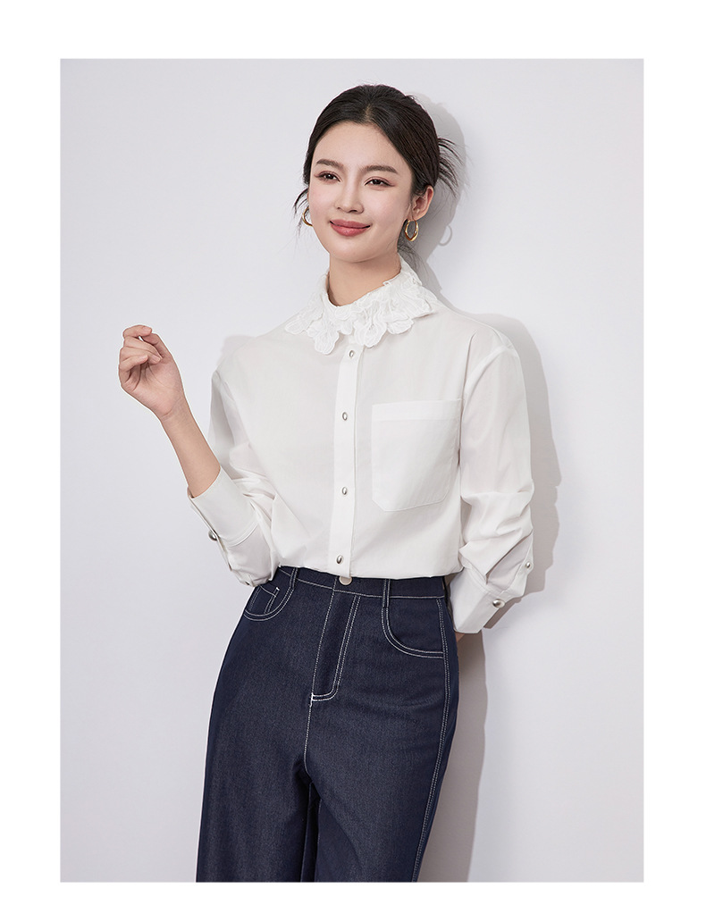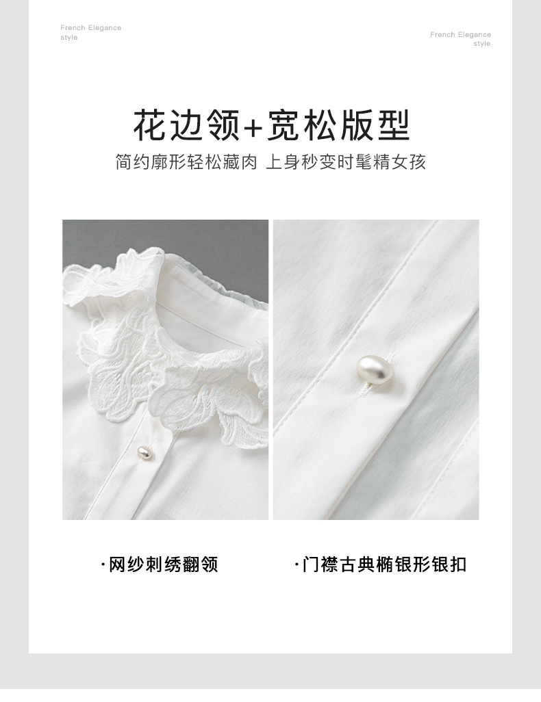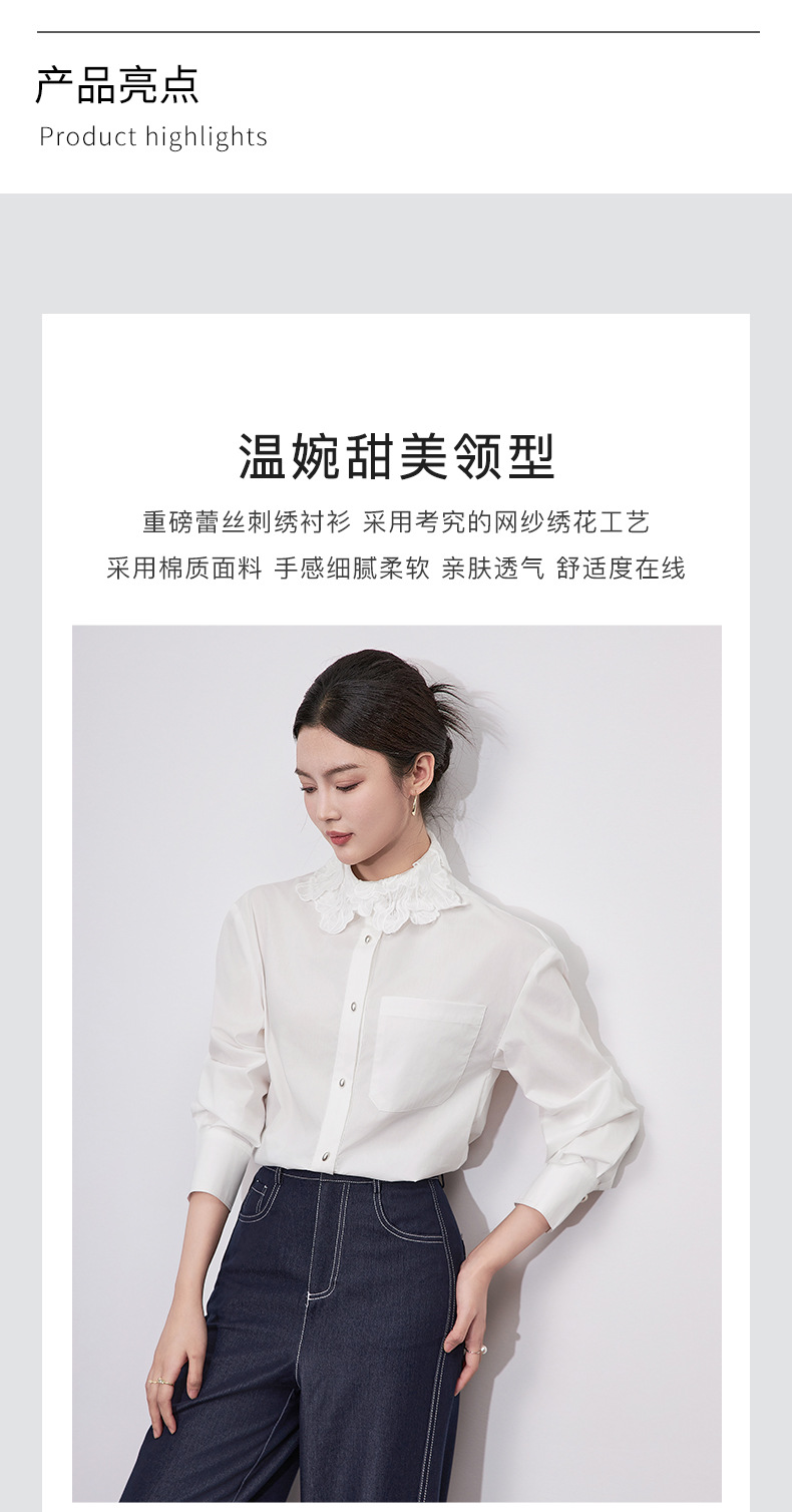 【高货wl】全新升级【铂金会员257/天猫339/差价82】(64633) 洛诗琳法式时尚刺绣翻领上衣2025春季高级感棉质长袖衬衫