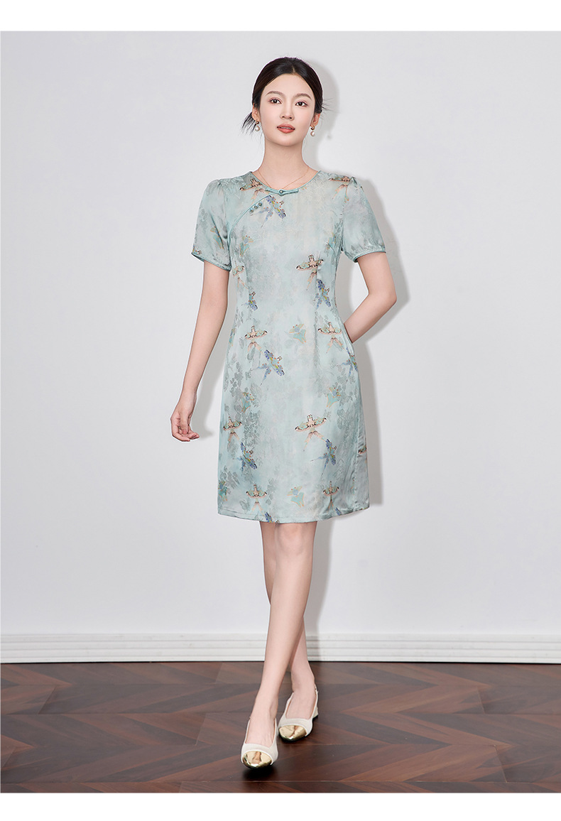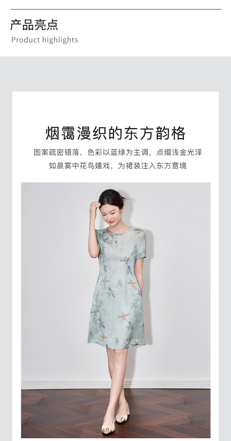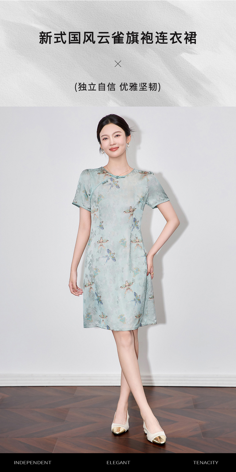 「高货wl」全新升级【铂金会员358/天猫479/差价121】(94854)洛诗琳国风提花改良旗袍裙2025夏季气质显瘦香云纱连衣裙