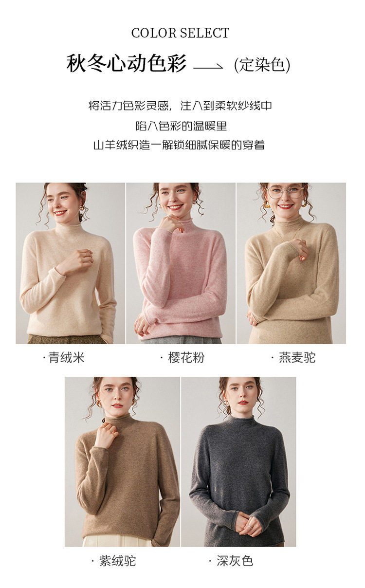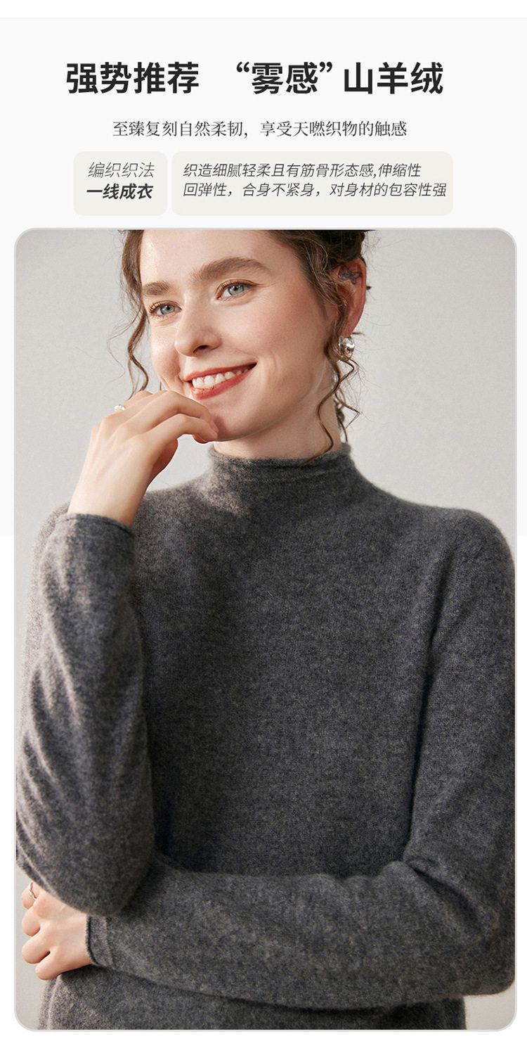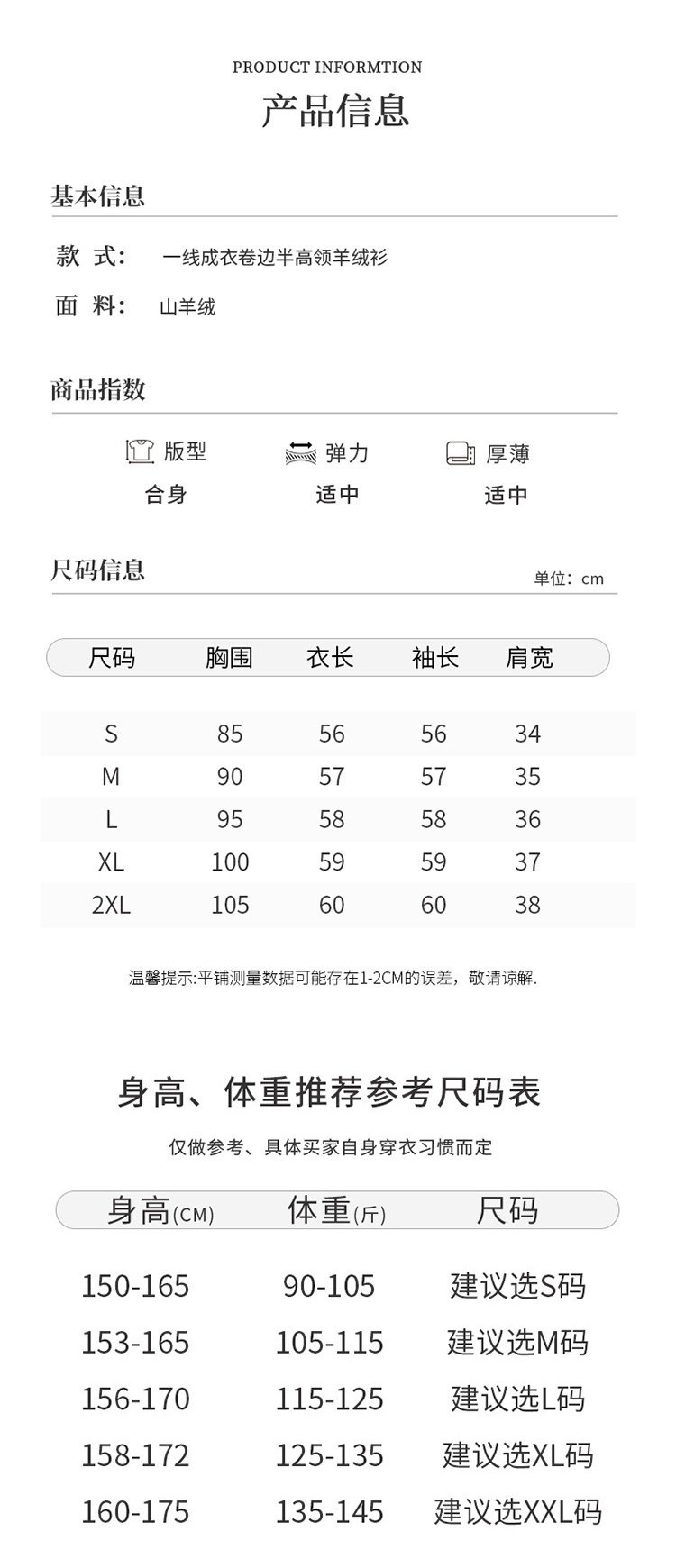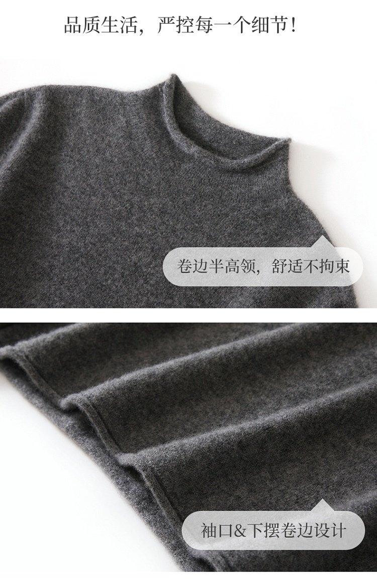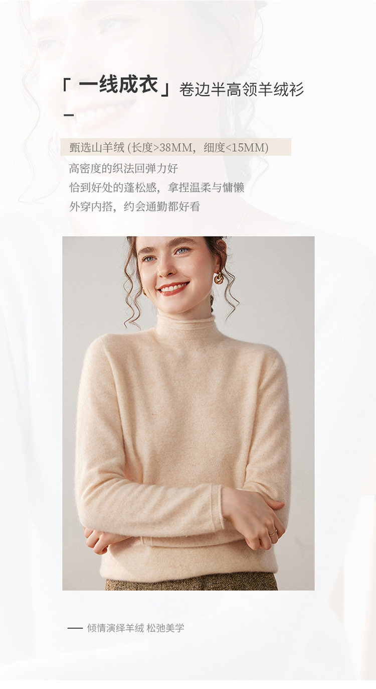 「自」全新升级【铂金会员330/天猫439/差价109】(12706)洛诗琳一线成衣卷边半高领羊绒衫2025冬季百搭宽松针织打底毛衣