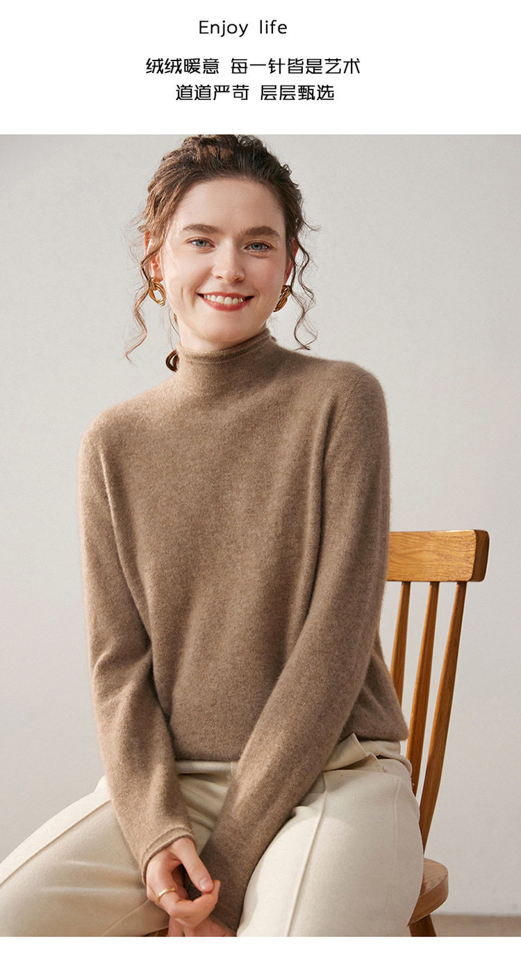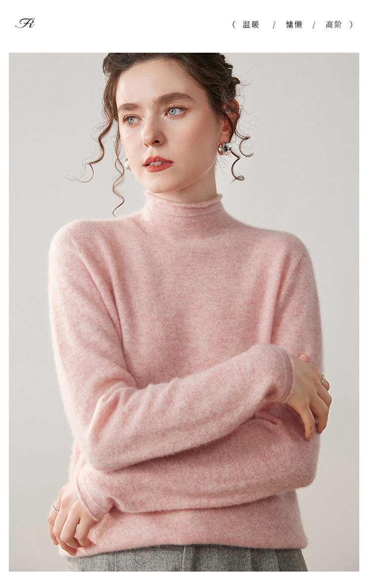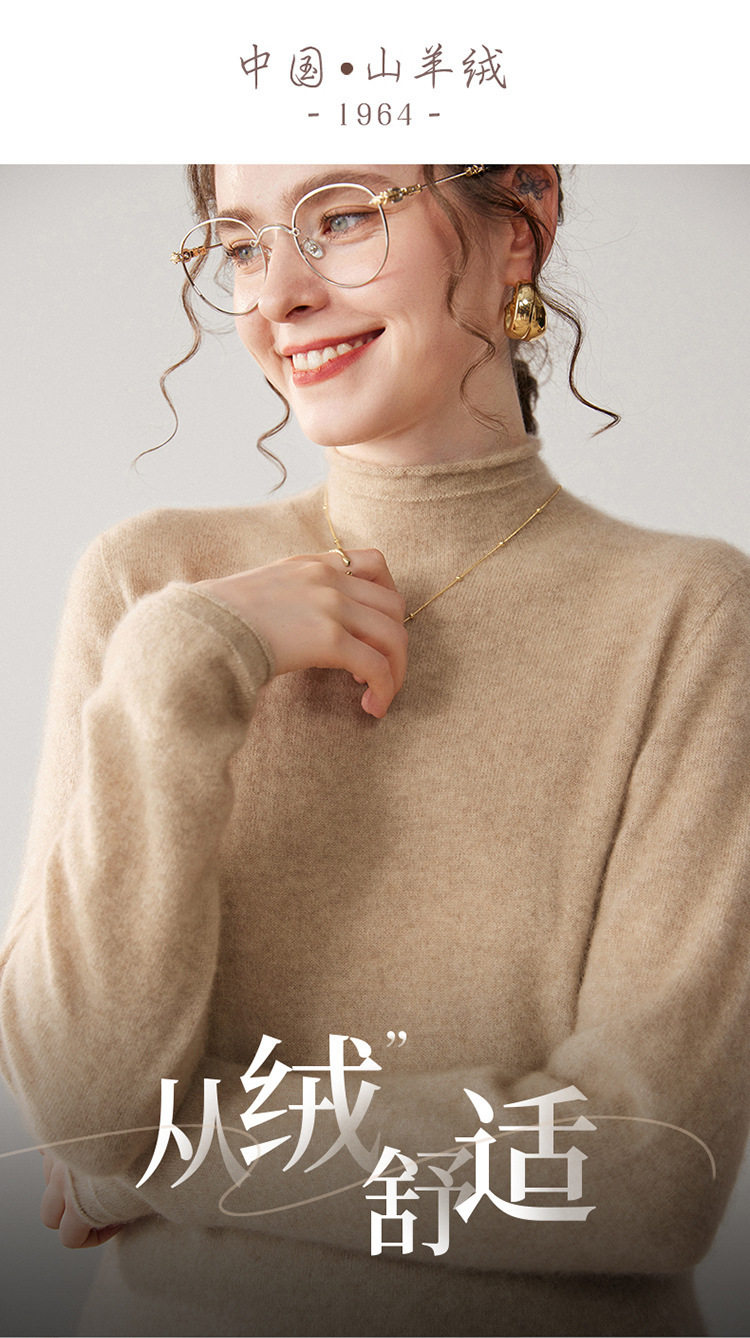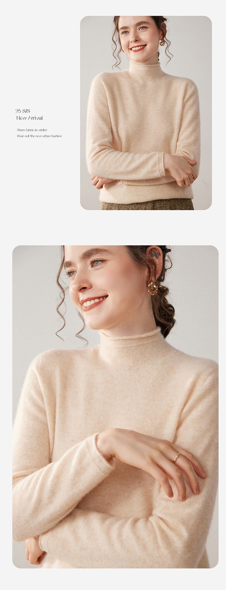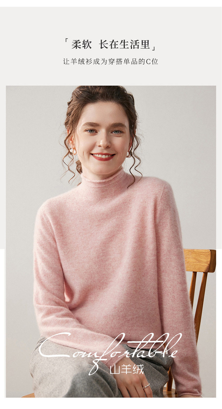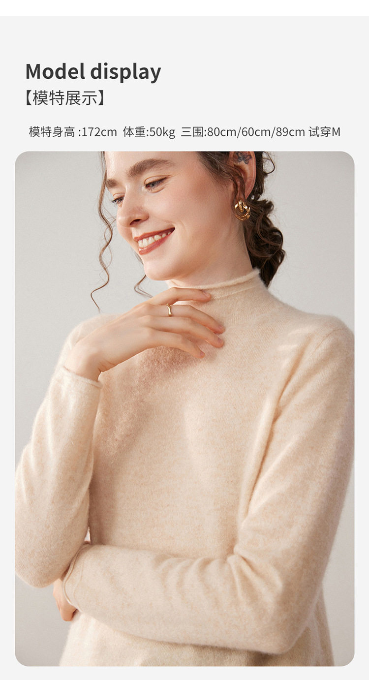 「自」全新升级【铂金会员330/天猫439/差价109】(12706)洛诗琳一线成衣卷边半高领羊绒衫2025冬季百搭宽松针织打底毛衣