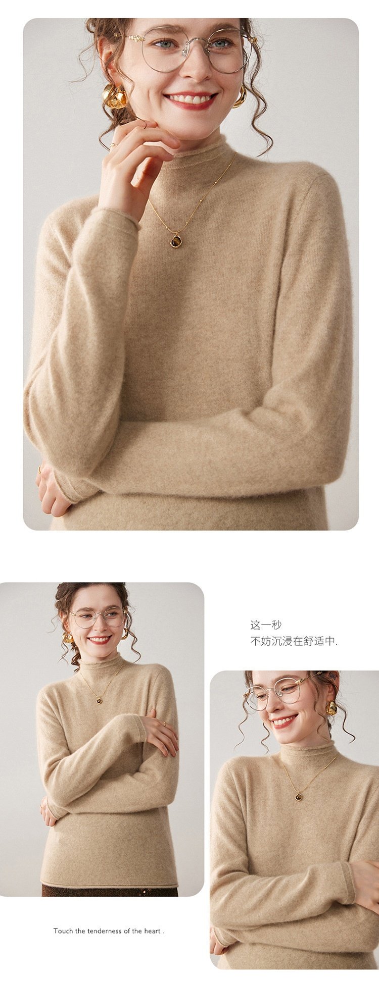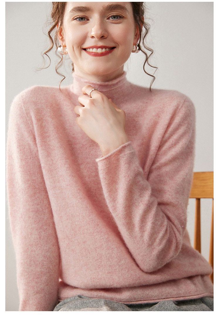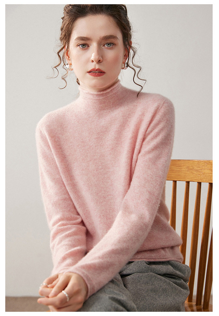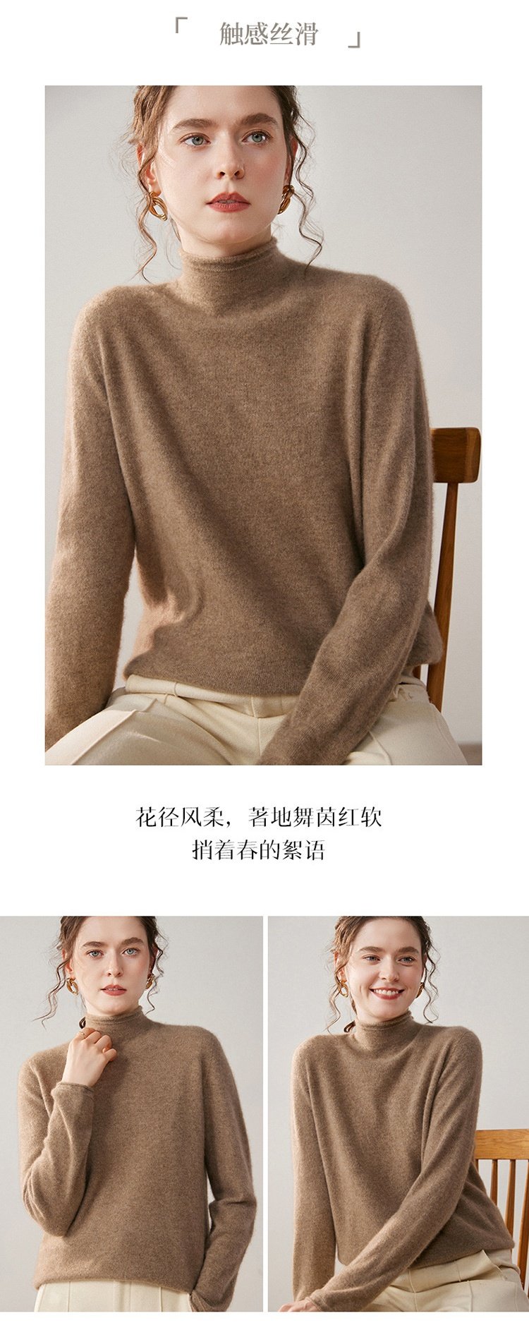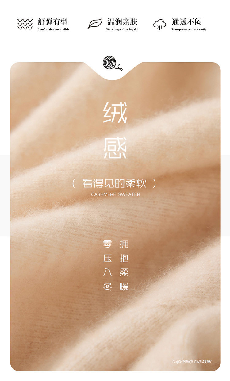 「自」全新升级【铂金会员330/天猫439/差价109】(12706)洛诗琳一线成衣卷边半高领羊绒衫2025冬季百搭宽松针织打底毛衣