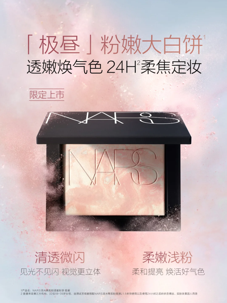 👑NARS纳斯 原生光幻彩蜜粉饼 #极昼 10g ✨透嫩焕亮,24H柔焦定妆 💎清透微闪,见光不见粉,视觉更立体 🩷柔嫩浅粉,细腻提亮,焕活原生好气色 🎉NARS限定科技,持久贴妆不拔干 👍高清镜头下,每一面都天生好皮 💫粉嫩限定|透光定妆|焕颜柔焦✔️