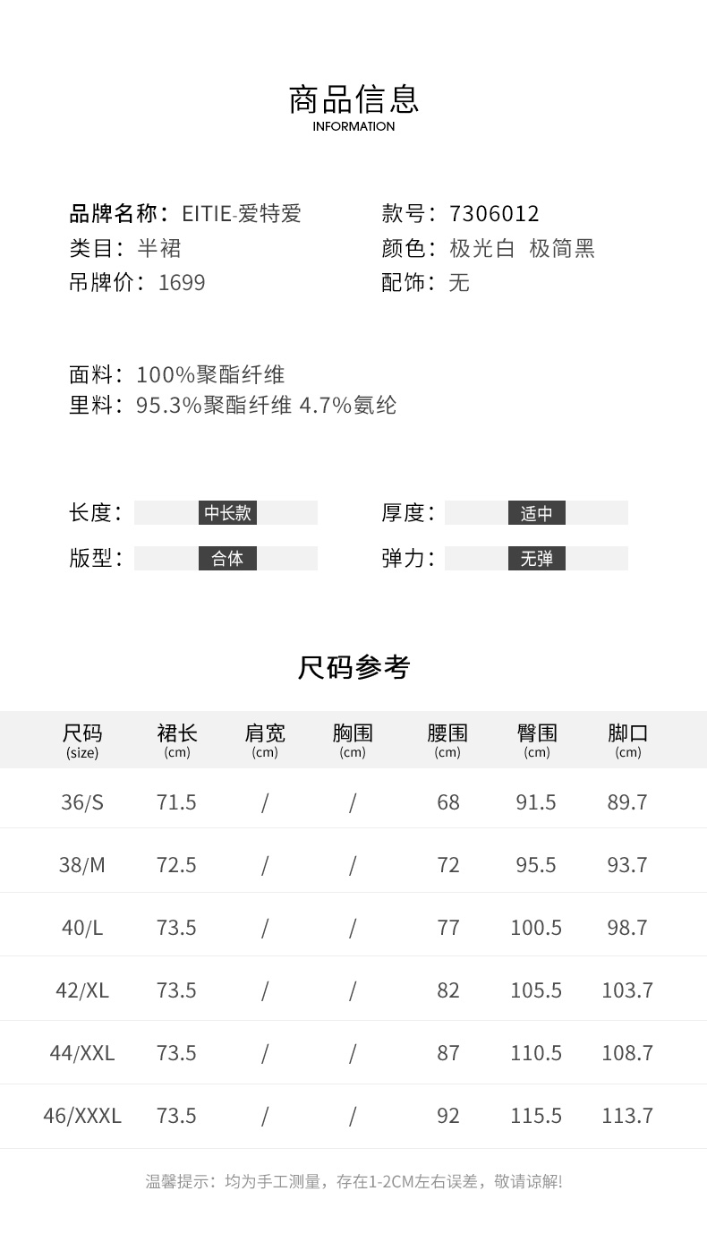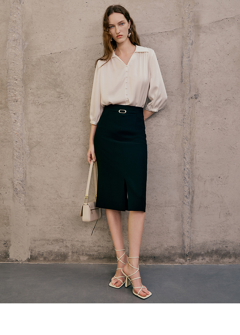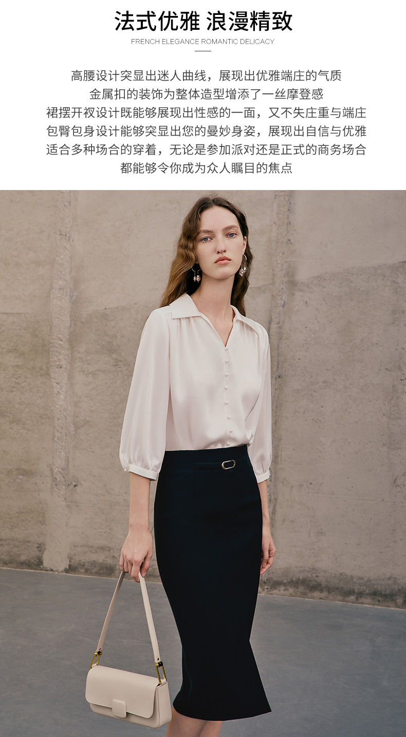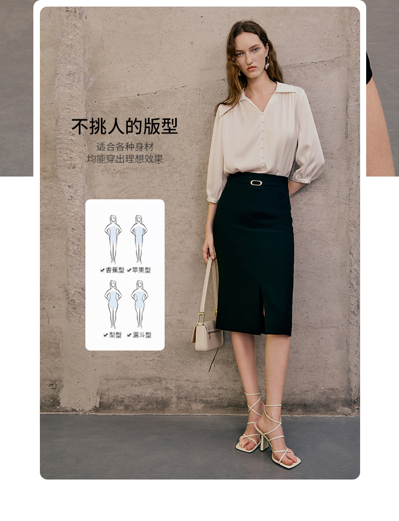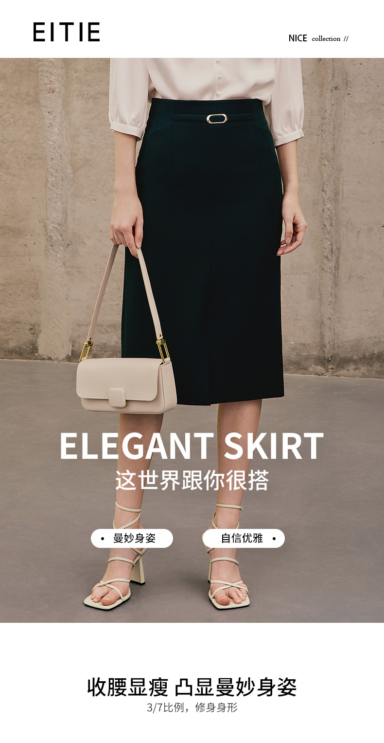 EITIE半裙春季新款开叉半身裙7306012