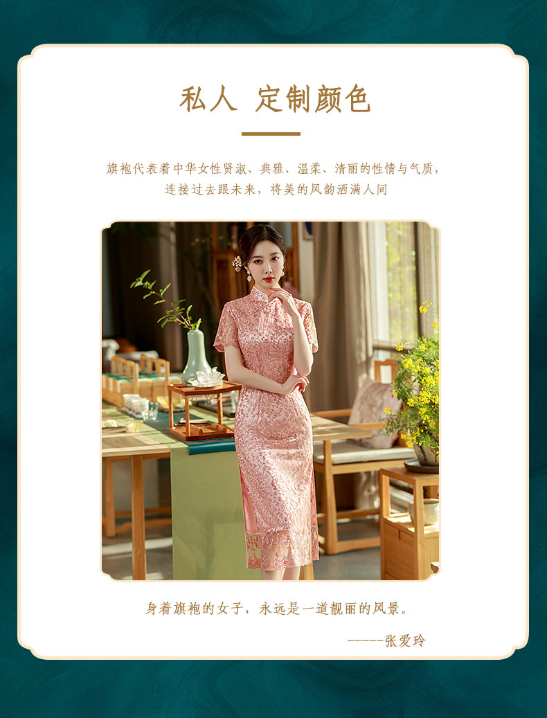 夏季新款,蕾丝绣花短袖立领走秀晚礼服性感旗袍ST- B2158