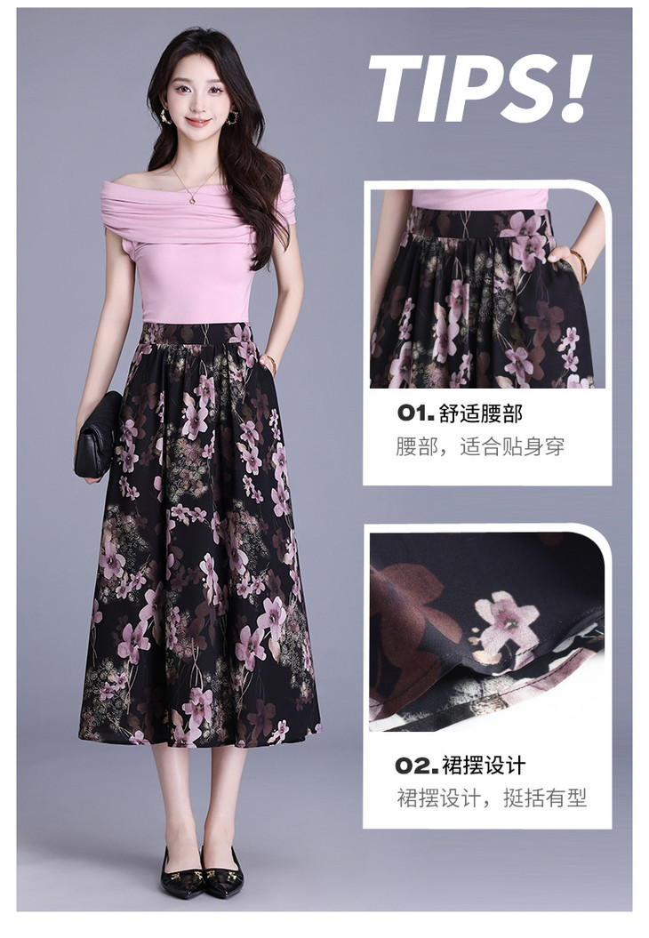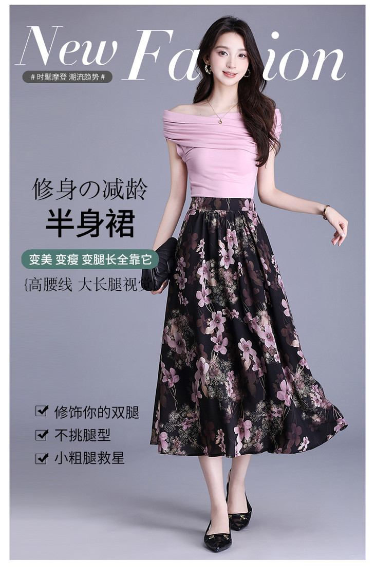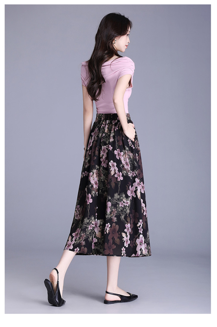 时尚印花中长款雪纺半身裙,韩版气质女士a字裙MYX-AS7333