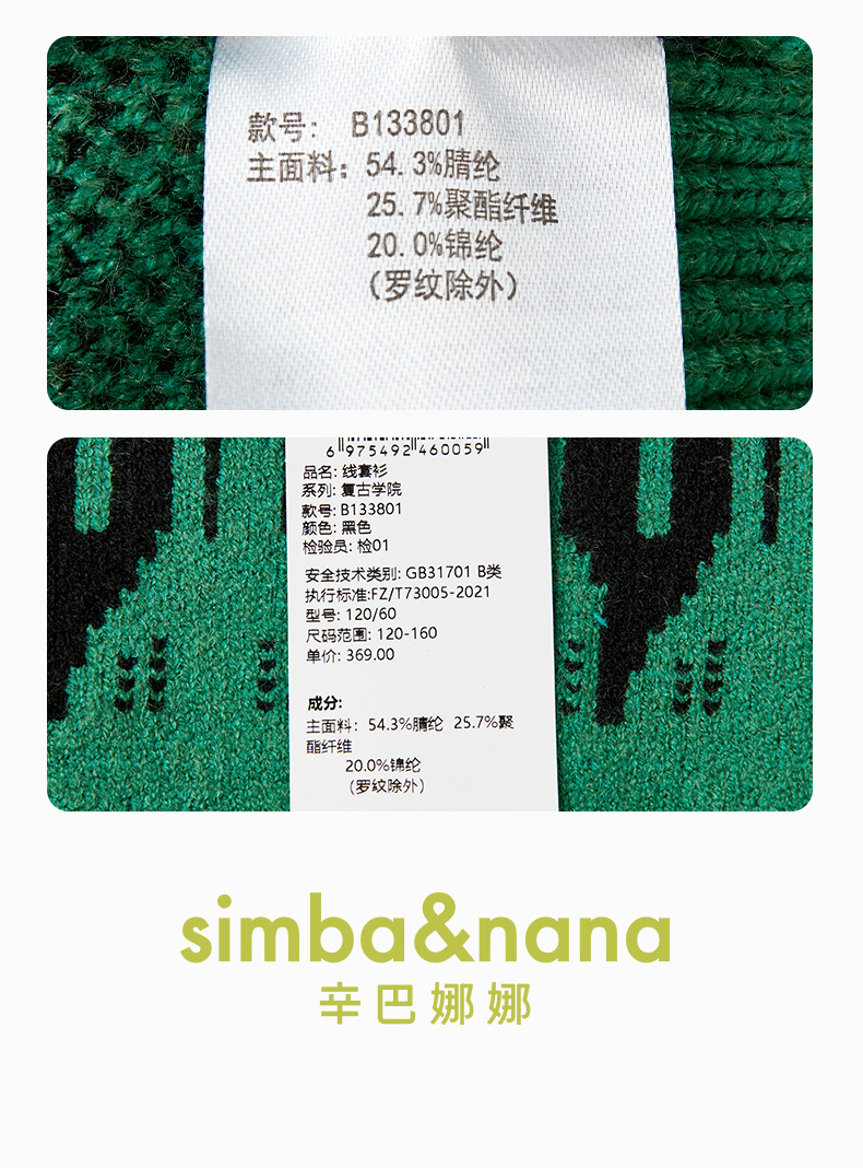 【辛巴娜娜】simbanana男童毛衣新款秋冬儿童针织衫中大童装潮