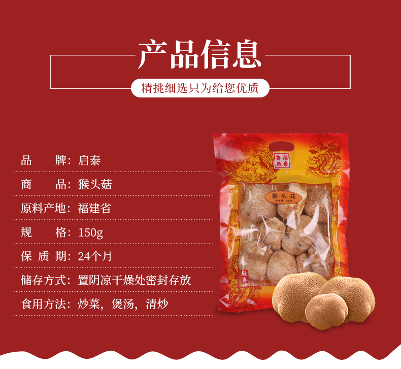 香港啟泰 猴头菇150g袋装 煲汤材料 食用菌菇山珍干货 广东煲汤材料 猴头菇(吃的放心 请选)
