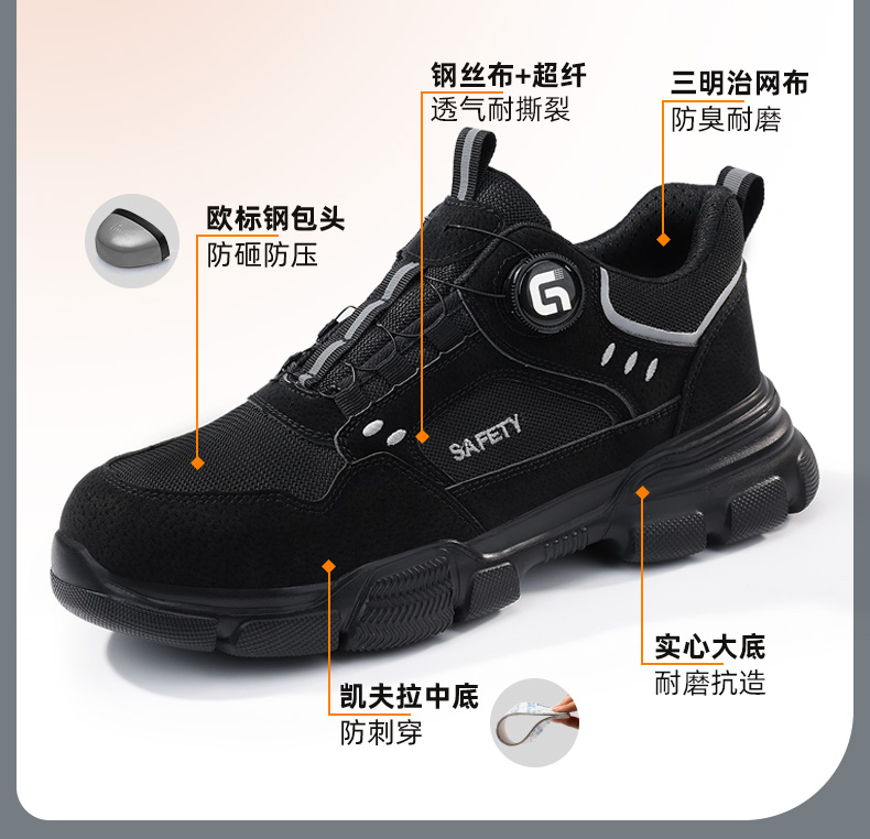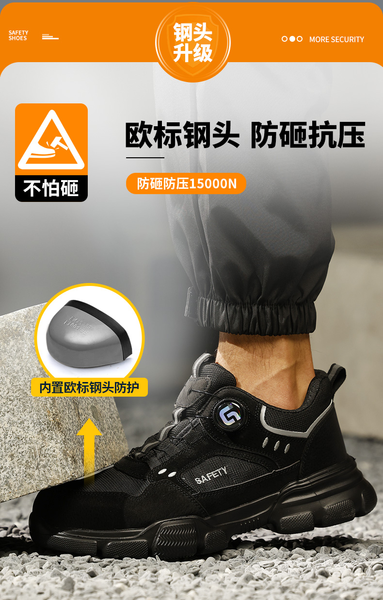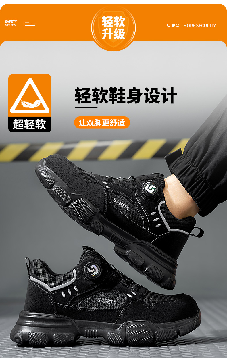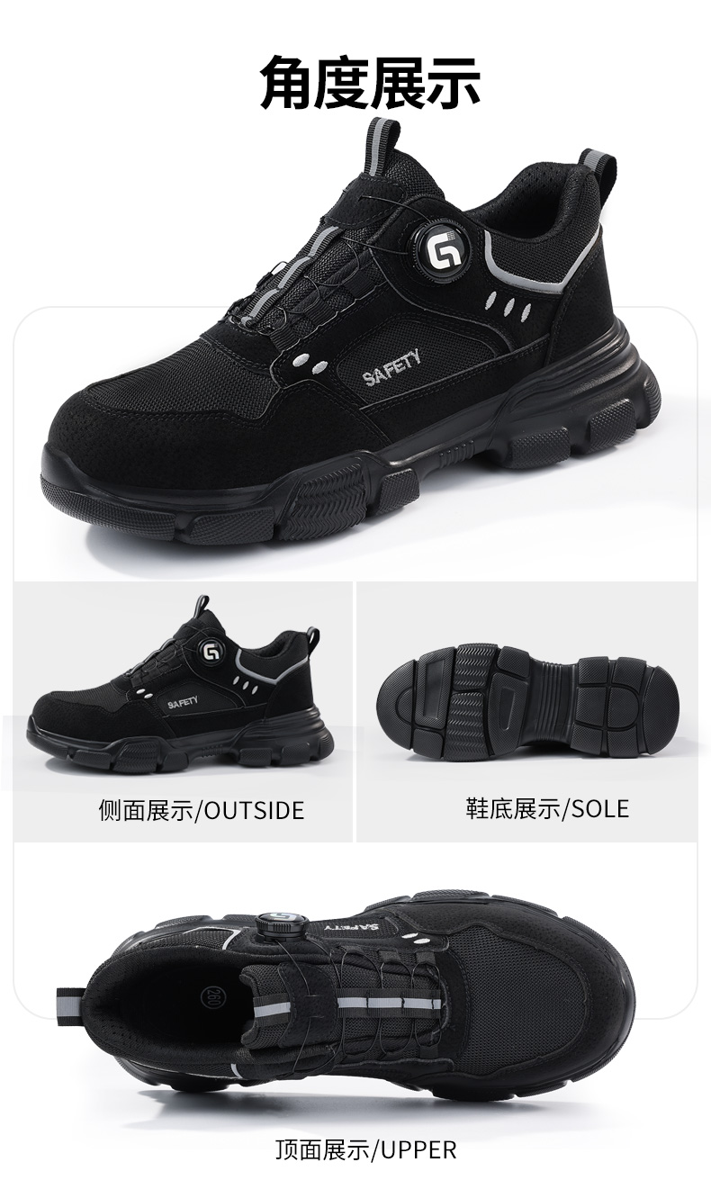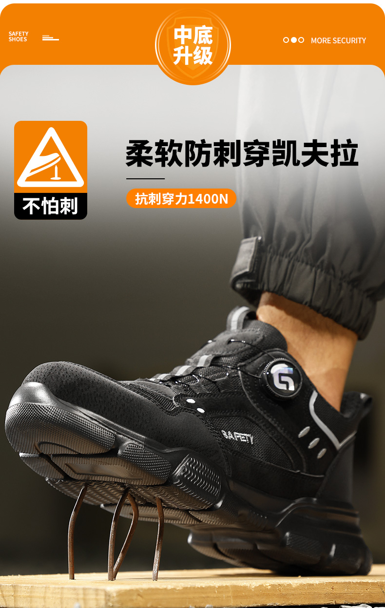2025新款劳保鞋防砸防刺穿欧标钢包头凯夫拉底实心底黑色四季款低帮安全鞋