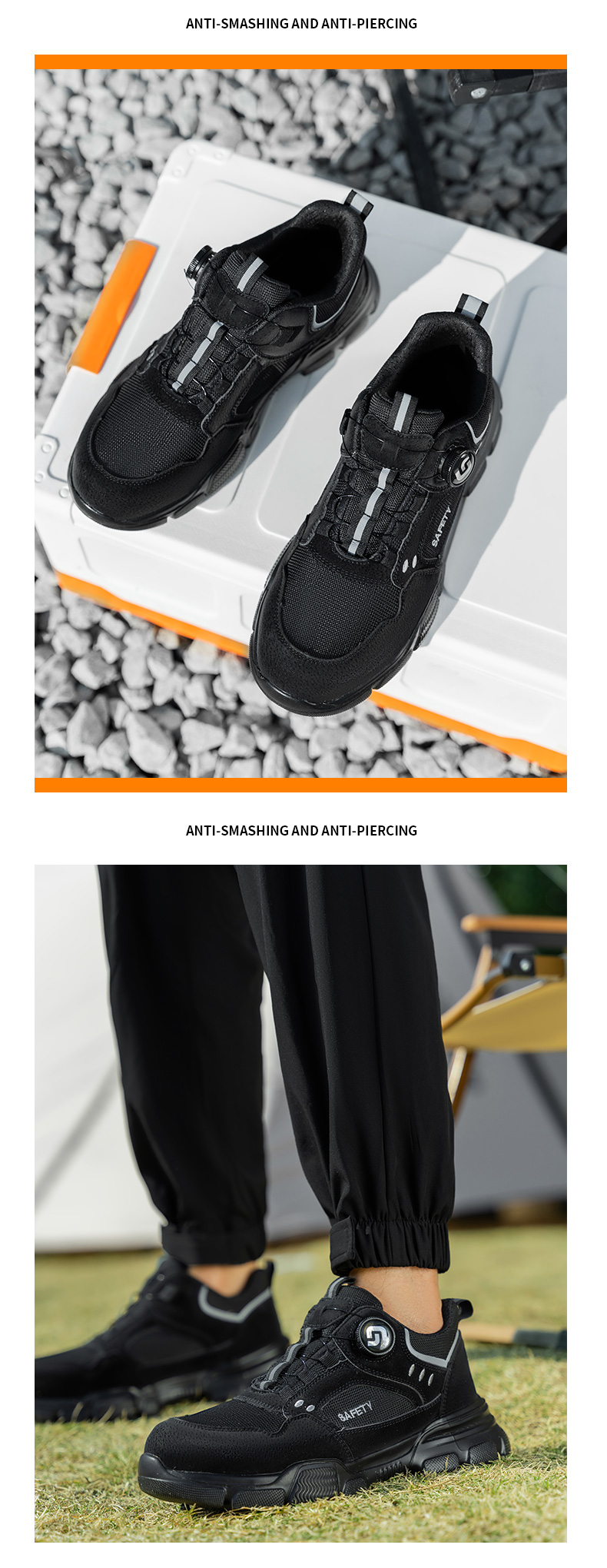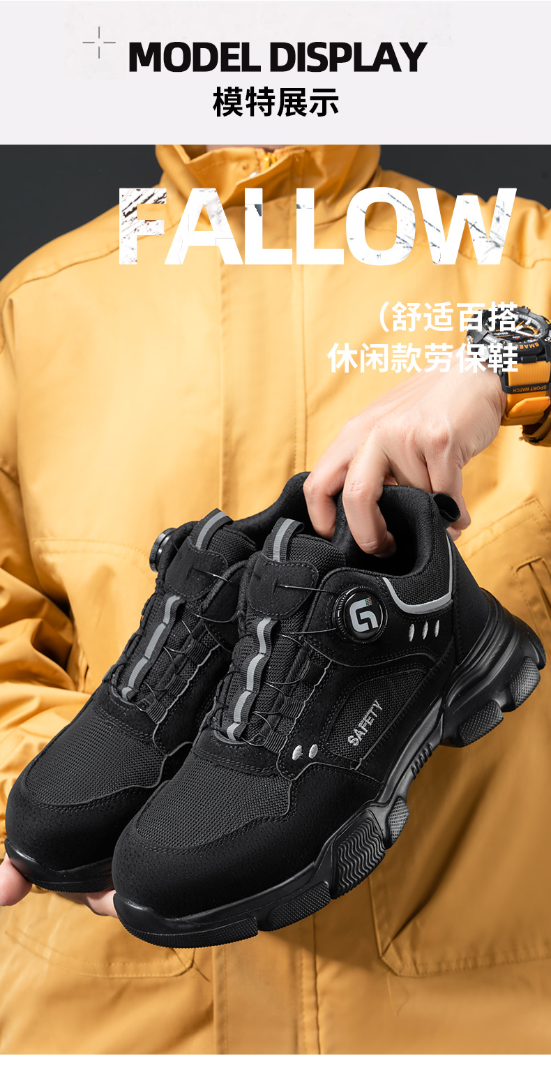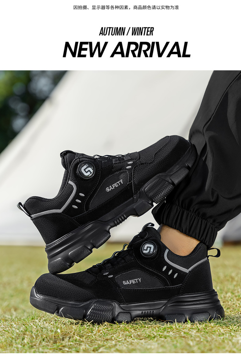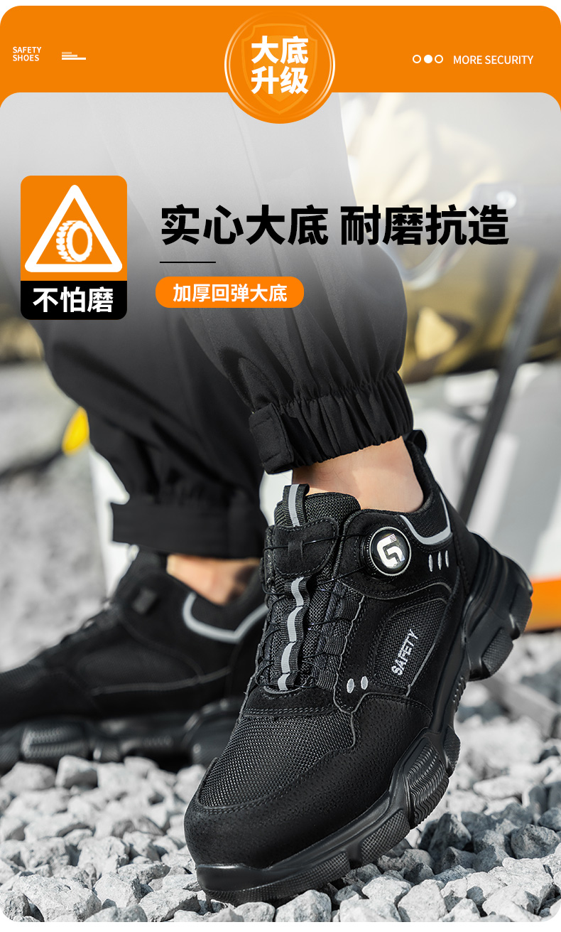 2025新款劳保鞋防砸防刺穿欧标钢包头凯夫拉底实心底黑色四季款低帮安全鞋