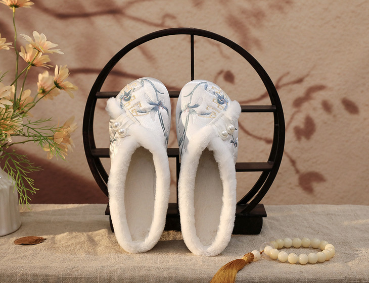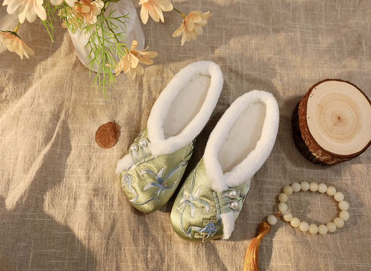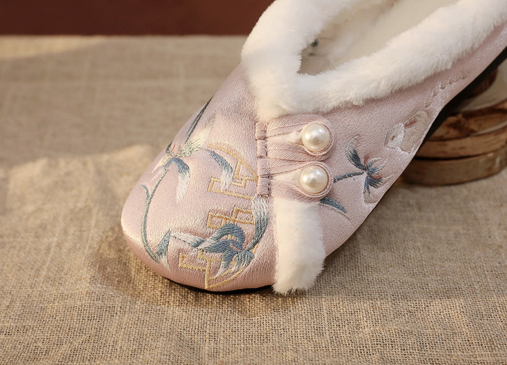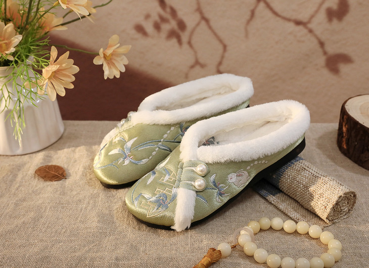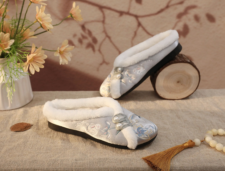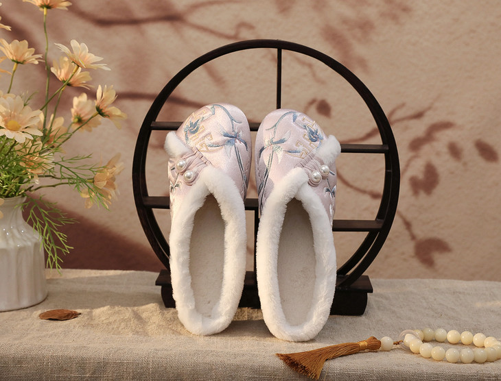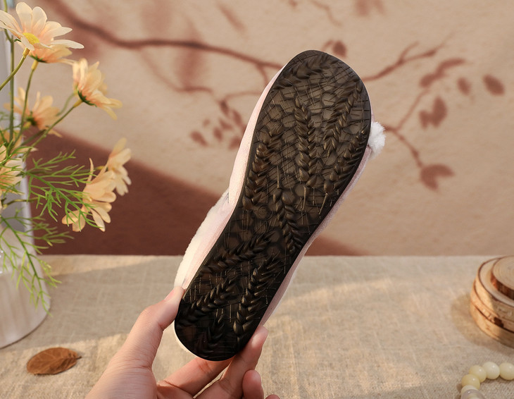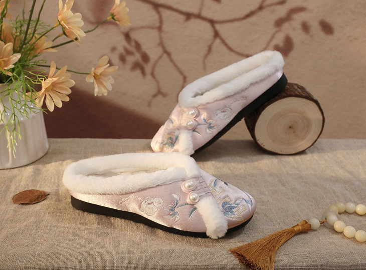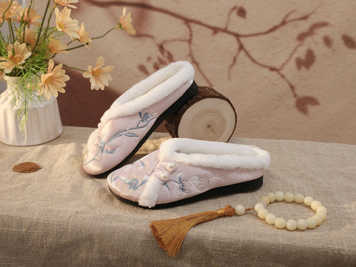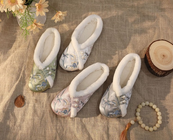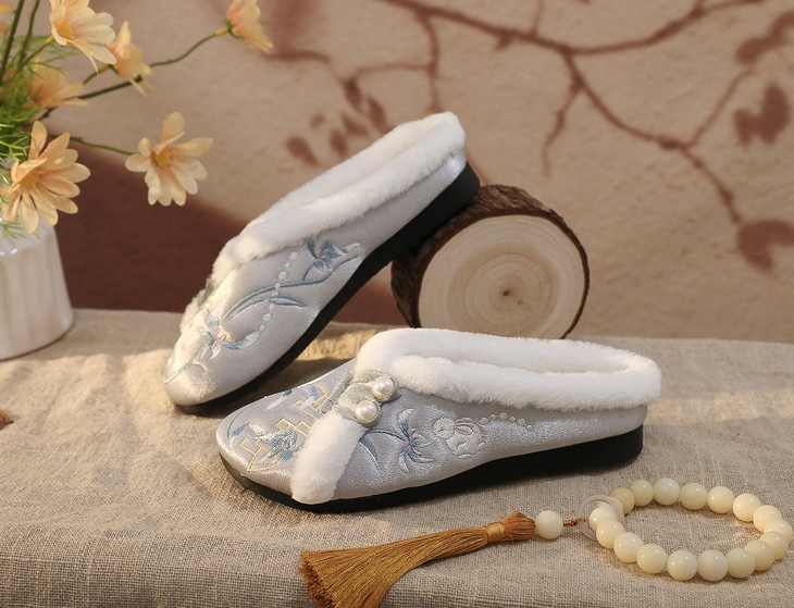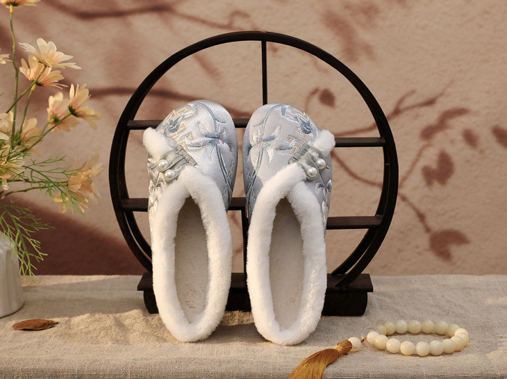 冬季民族风丝光缎面包头加绒软底拖鞋SB3300-10