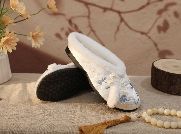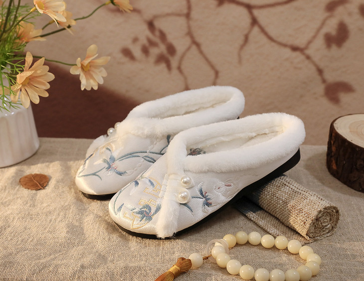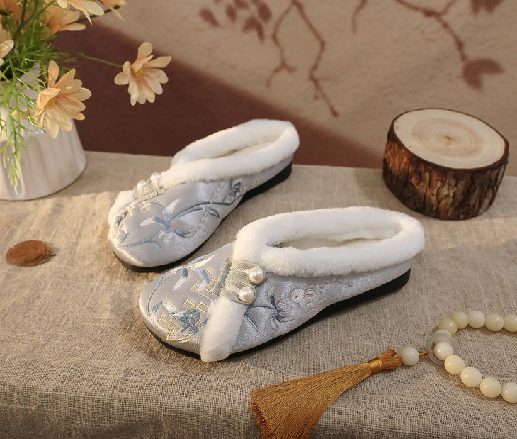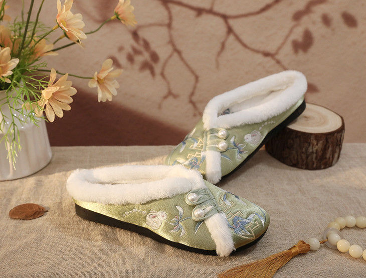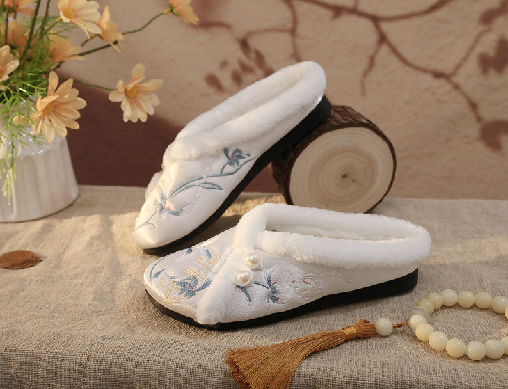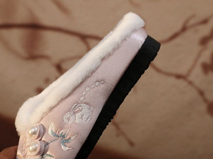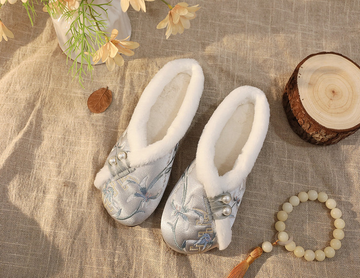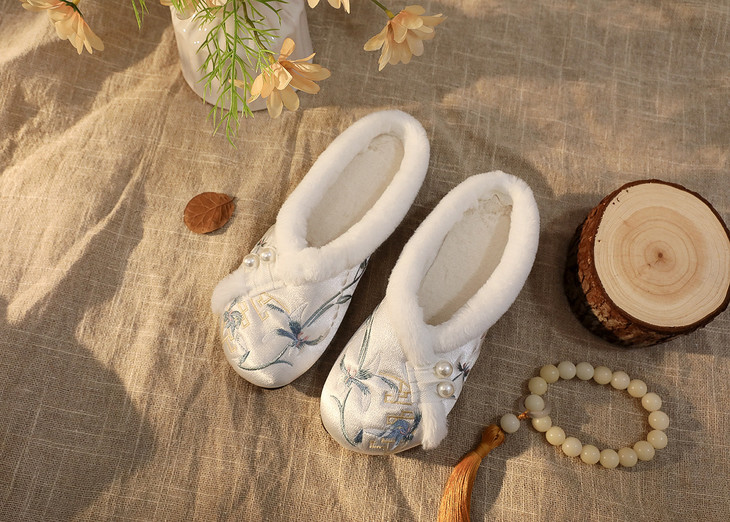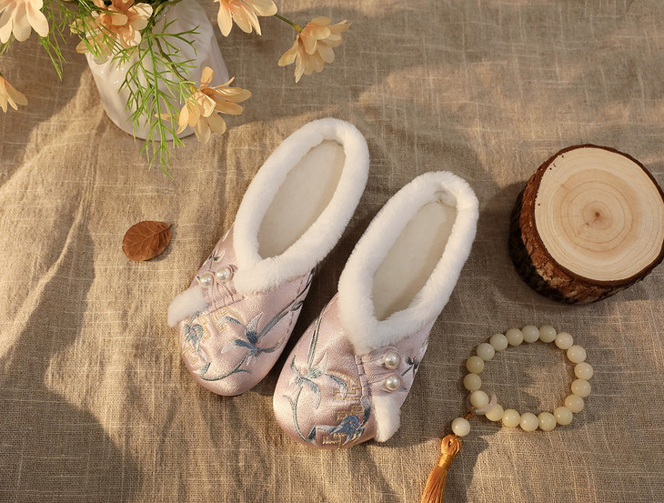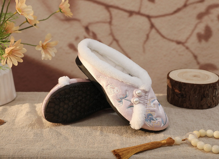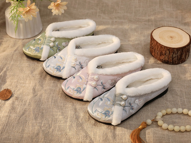 冬季民族风丝光缎面包头加绒软底拖鞋SB3300-10