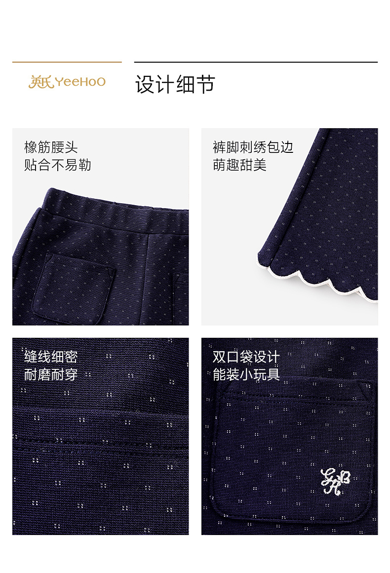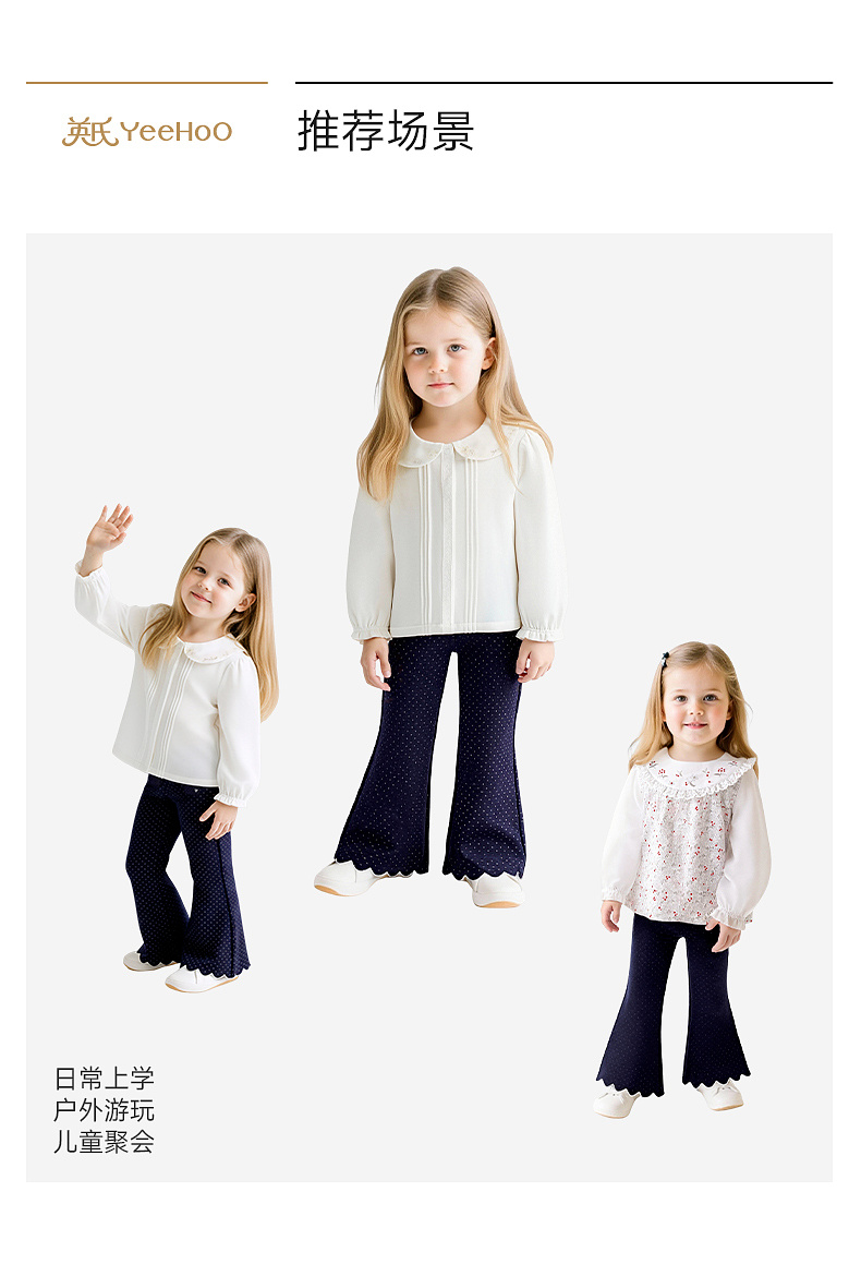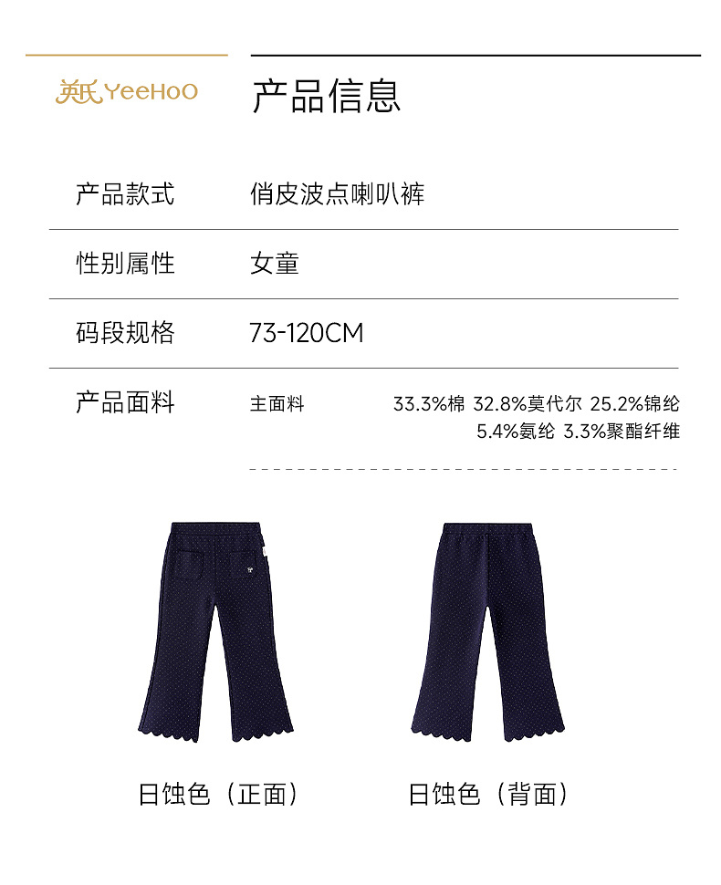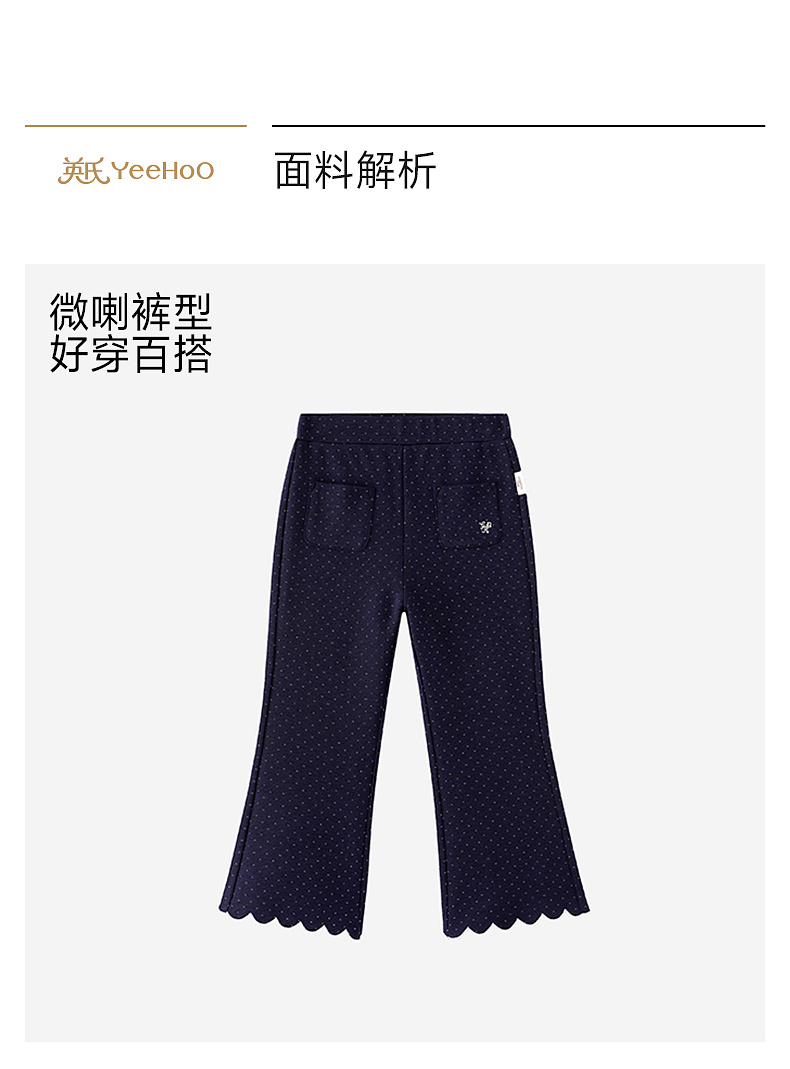 【商场同款】英氏儿童裤子女童长裤微喇花边波点长裤春夏新款百搭