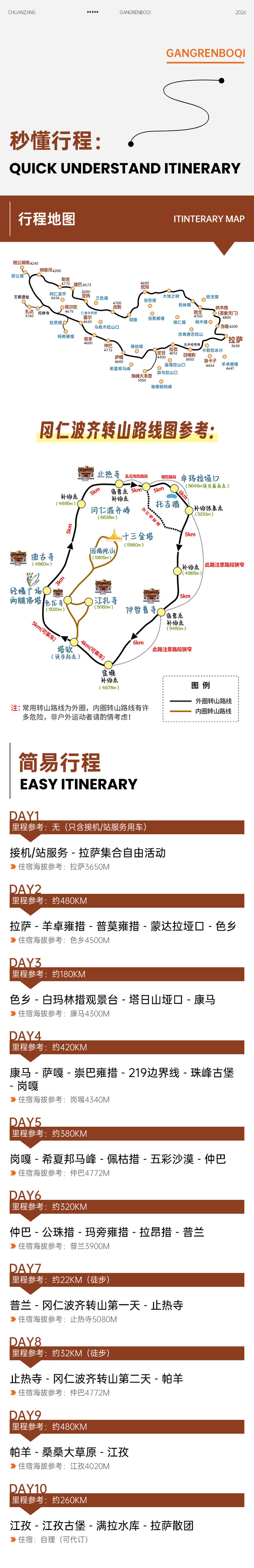 景点海拔参考:崇巴雍措(4900m)、珠峰古堡(5000m)