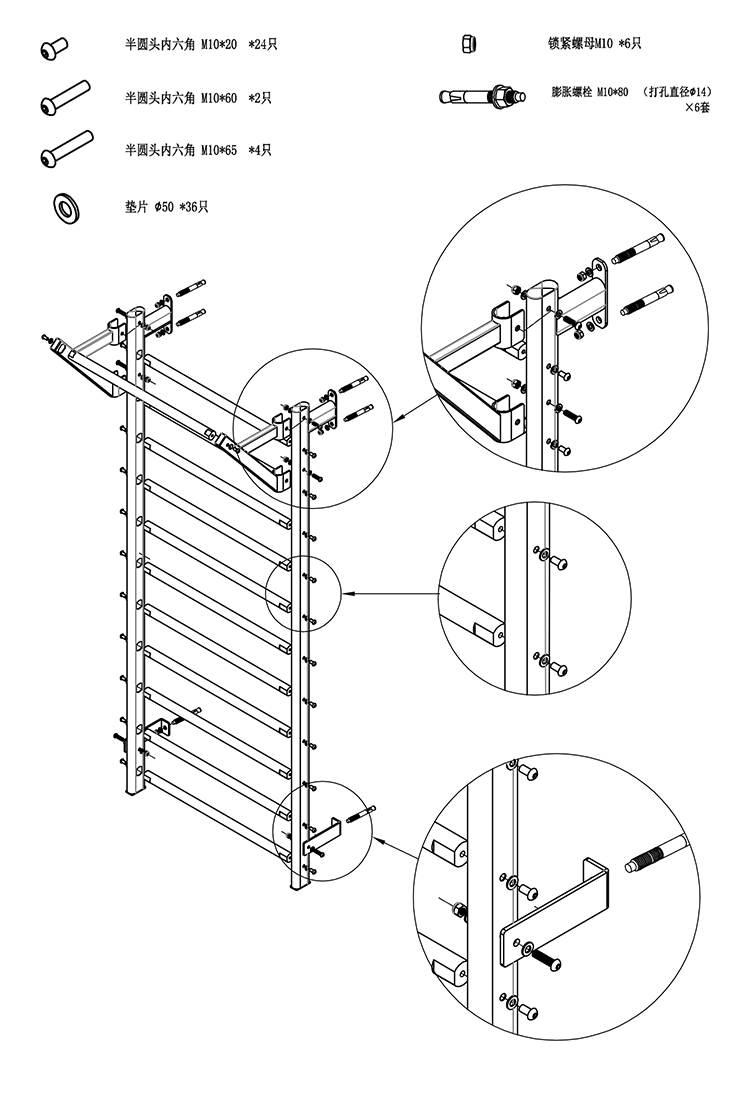 A5013单排肋木架(需要承重墙安装)