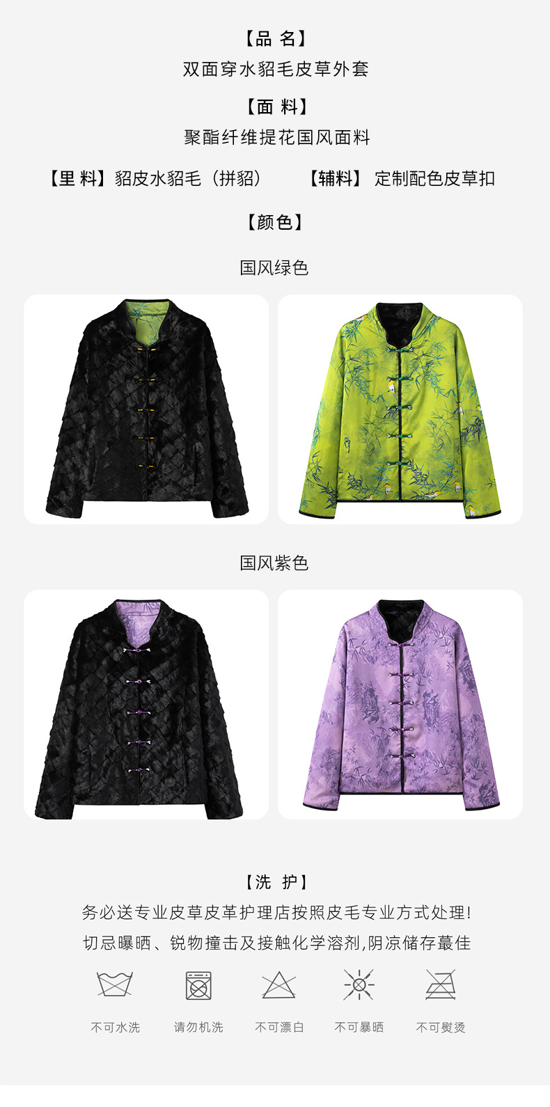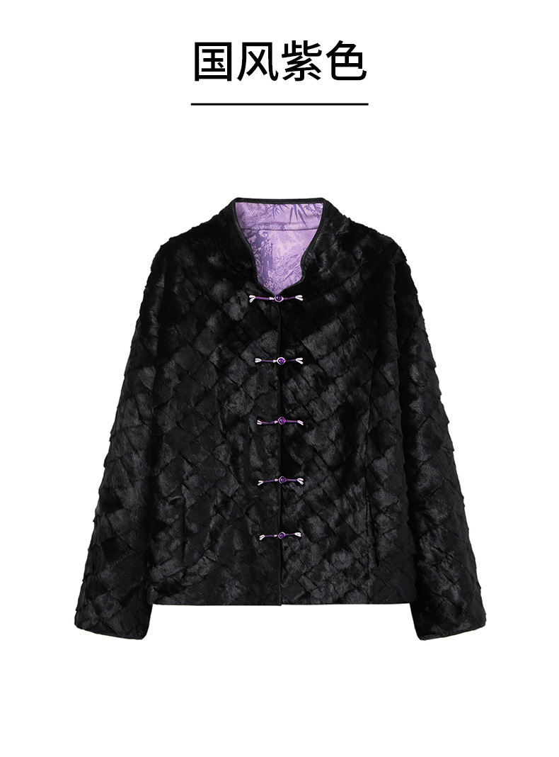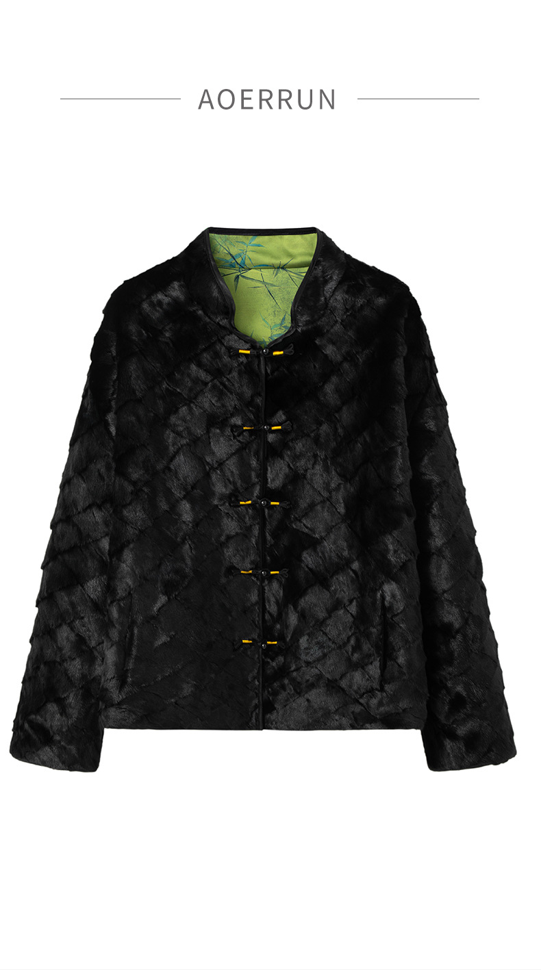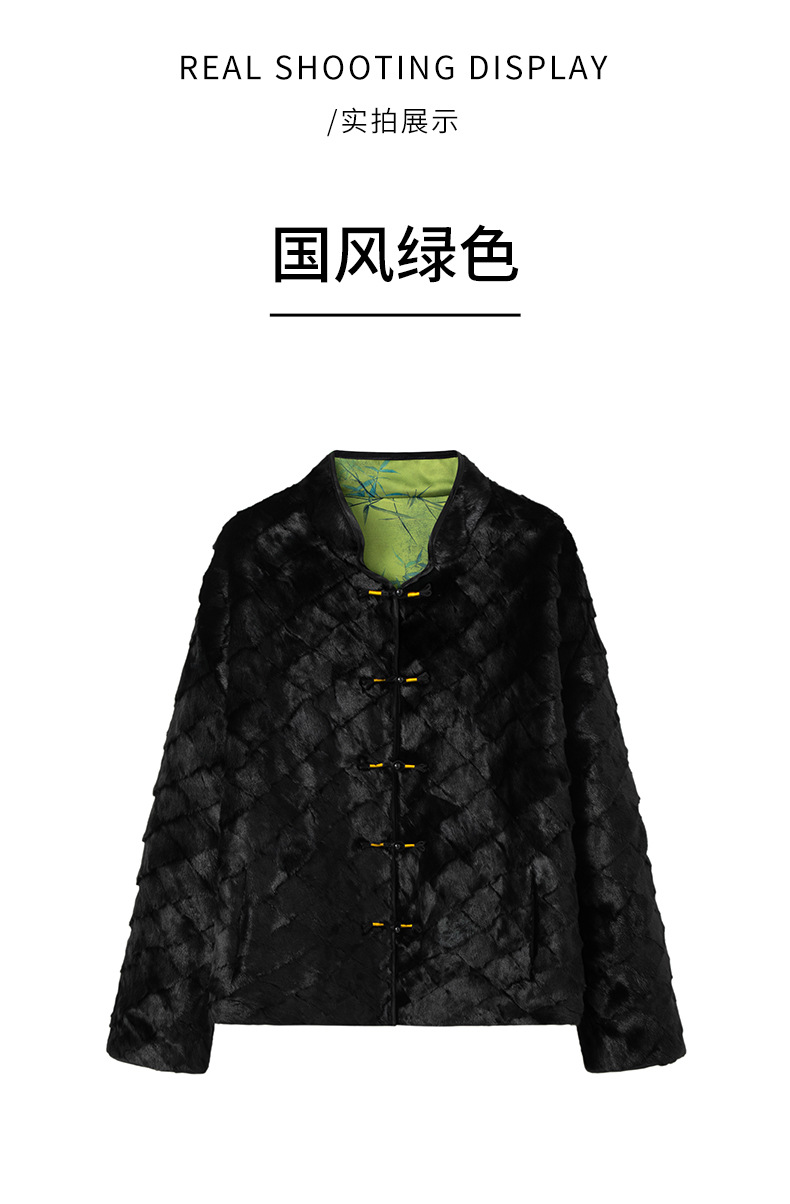 雀说国风中式盘扣水貂皮草外套女短款拼貂双面穿貂皮大衣冬季新款AL