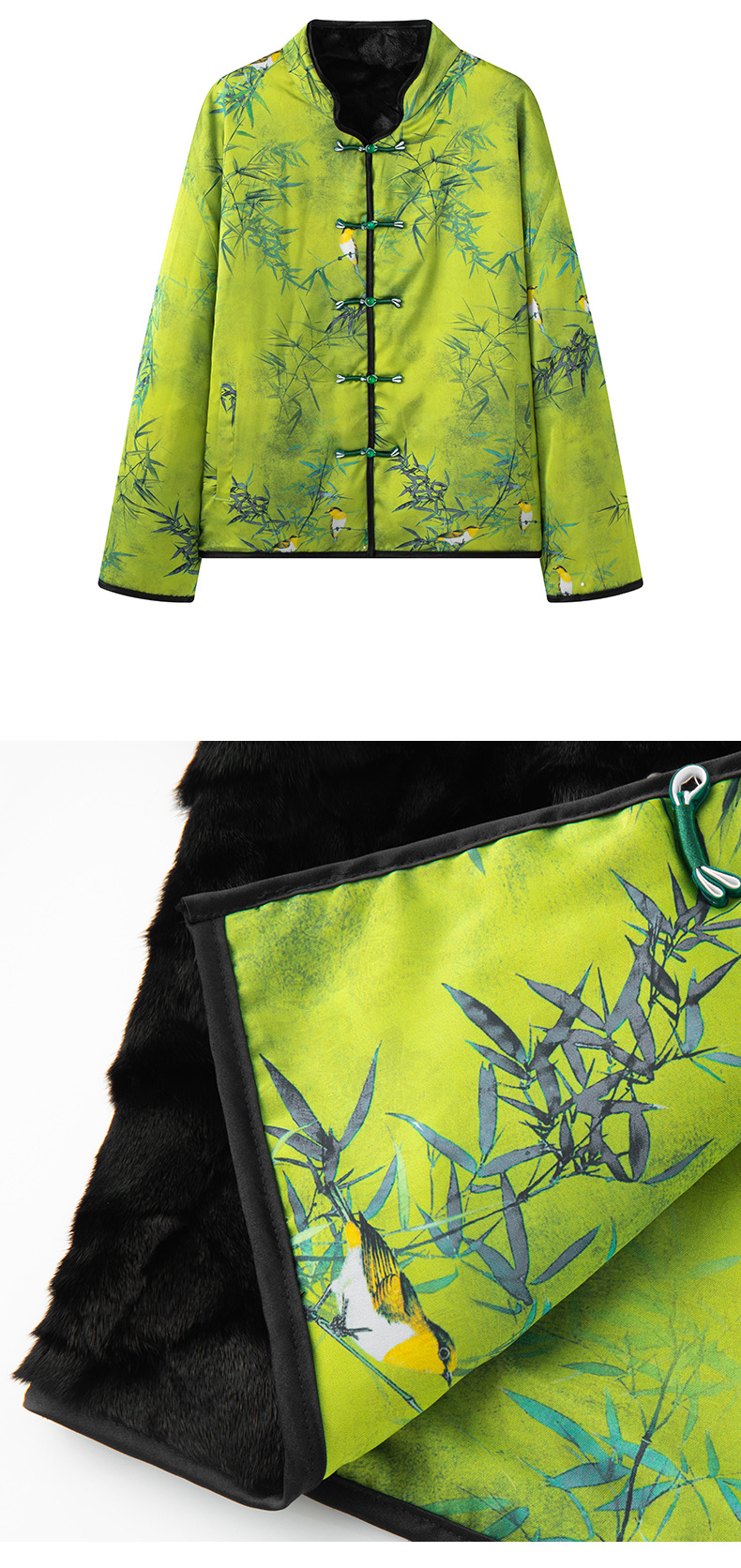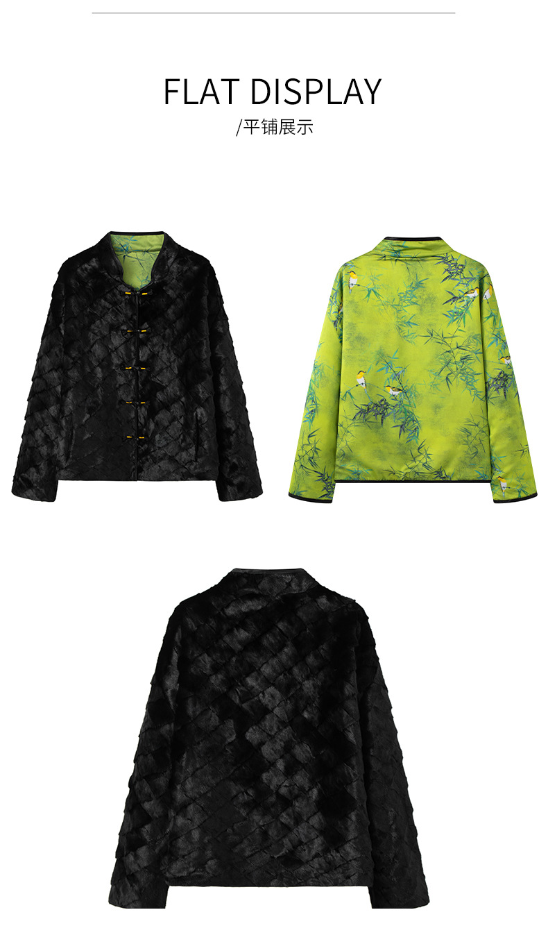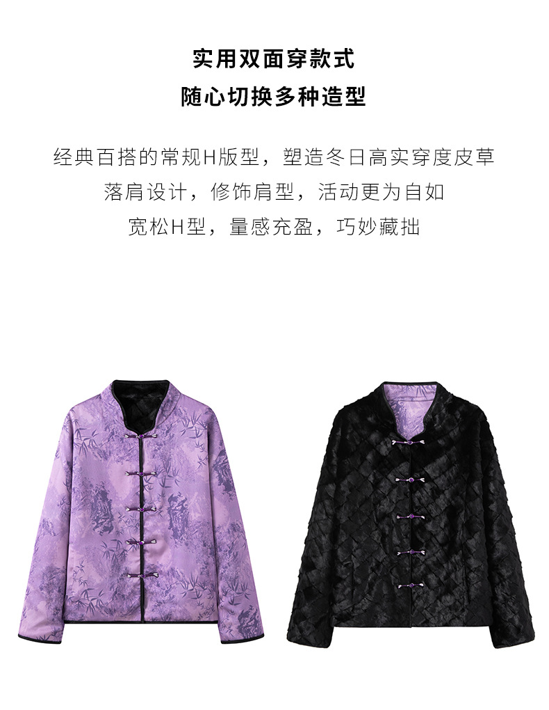 雀说国风中式盘扣水貂皮草外套女短款拼貂双面穿貂皮大衣冬季新款AL