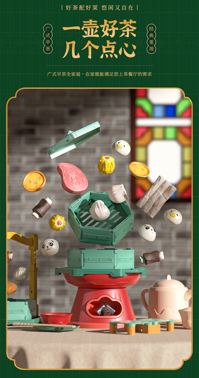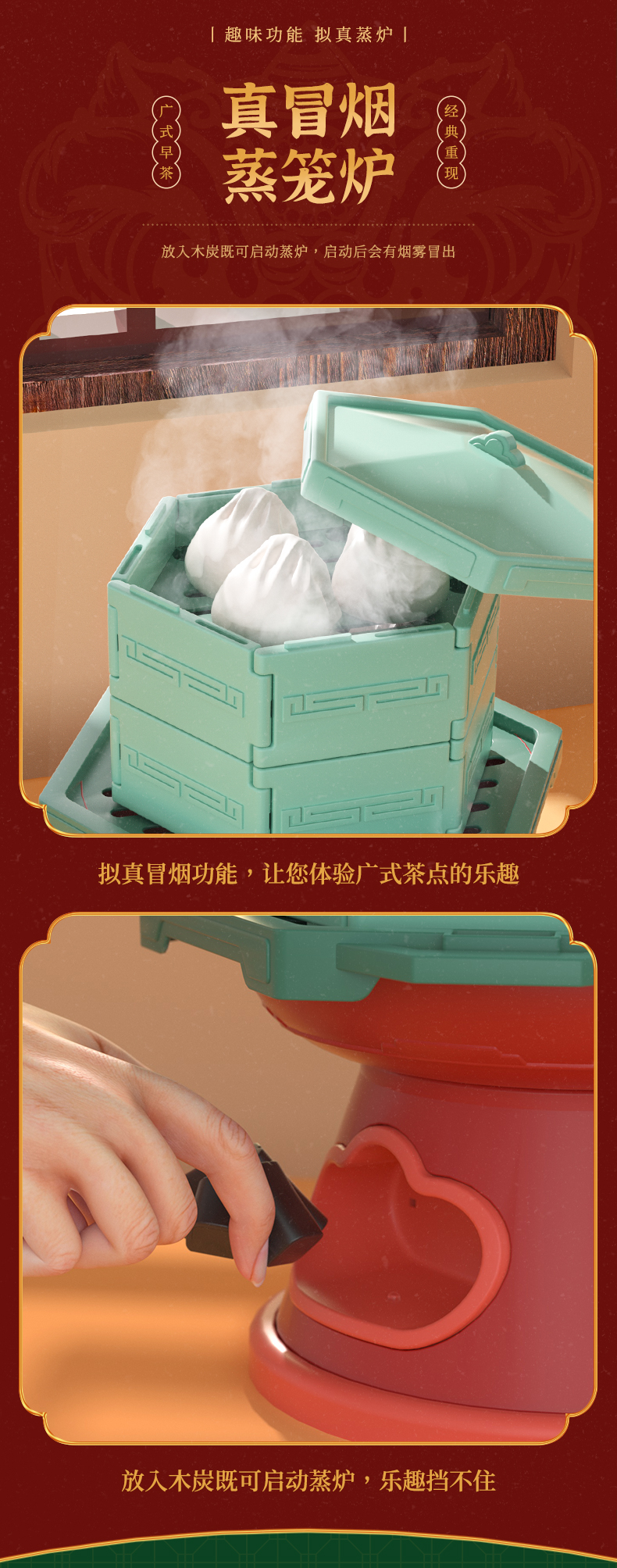 欢乐客 广式早茶 厨房做饭蒸笼仿真过家家diy儿童礼物玩具