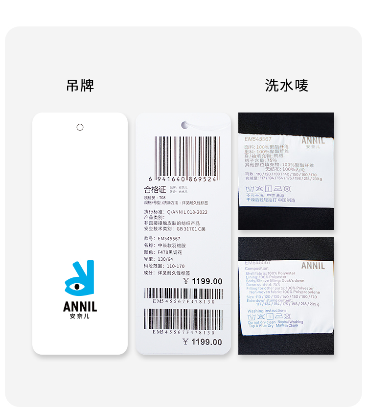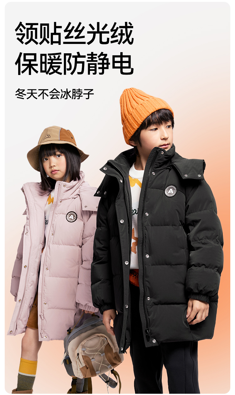 【-15~-5℃极寒抗冻】男女童可拆卸帽子中长款羽绒服冬季新款安奈儿童装EM545567