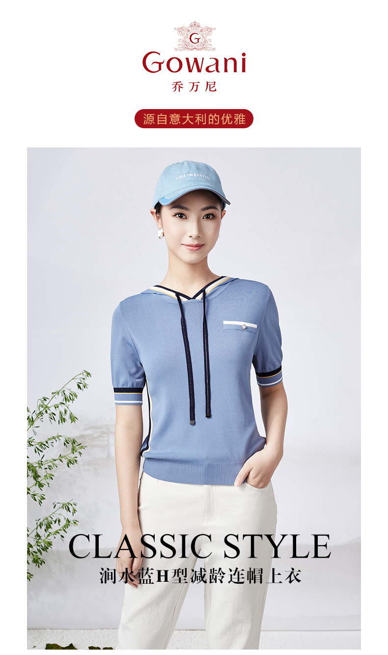 乔万尼夏季针织衫短袖帽衫减龄连帽衫短袖小衫ET2M303