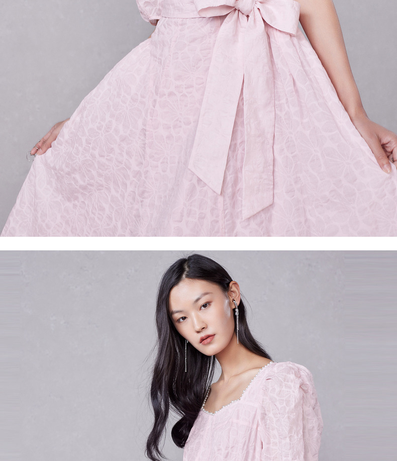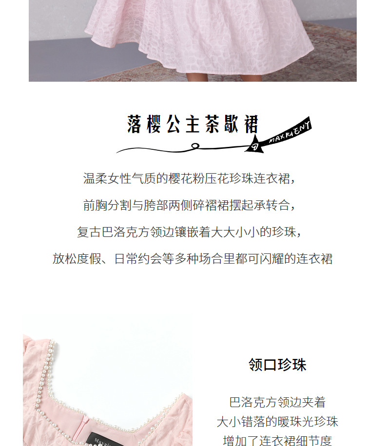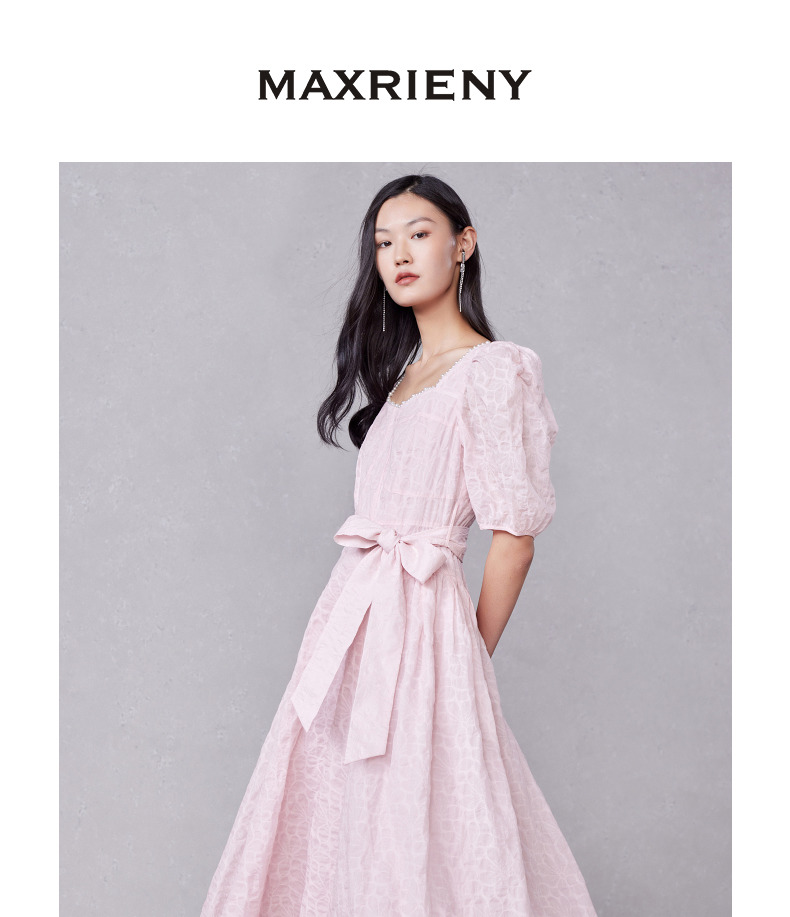 MAXRIENY落樱公主茶歇裙夏蝴蝶结连衣裙中长显瘦(货号:MC87DR273)
