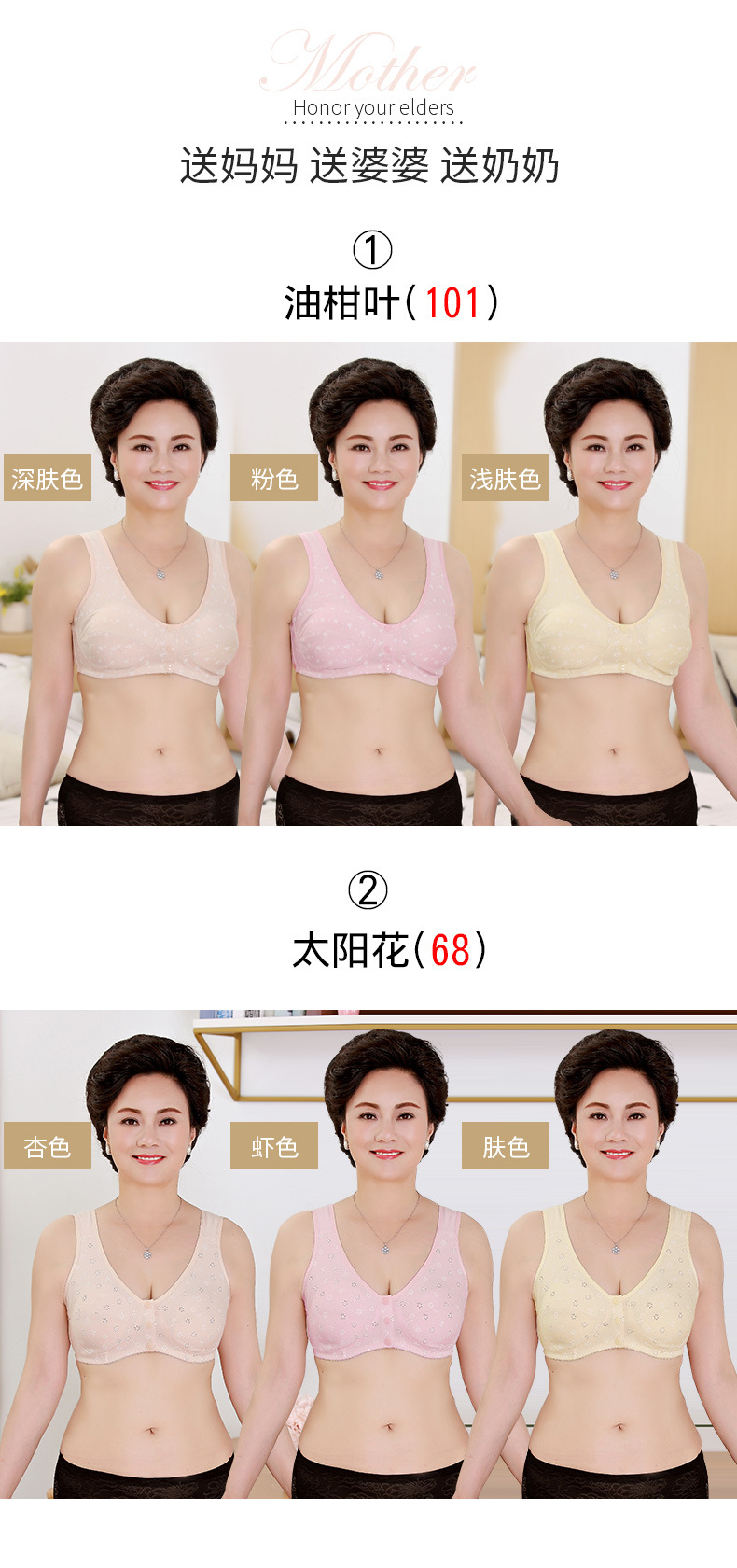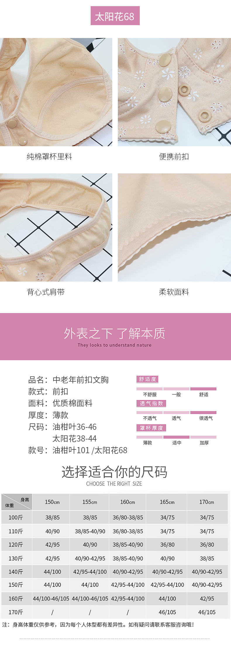 YY-68+101前扣薄款女士内衣无钢圈舒适薄棉大码文胸罩女背心