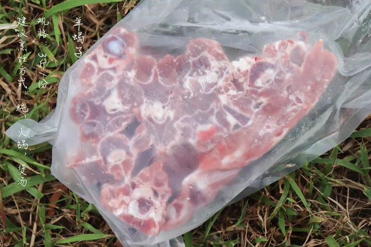 需要注意的是,羊肉冷冻后山长水远ro到珠海,在路途中有部分标签脱落;内蒙汉子又忘了给羊蝎子打包,发的大件,到达绿手指农场后分装。这部分羊肉可能会没有检疫标签,介意慎拍。