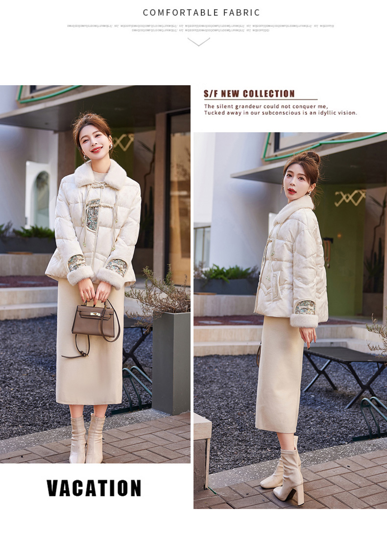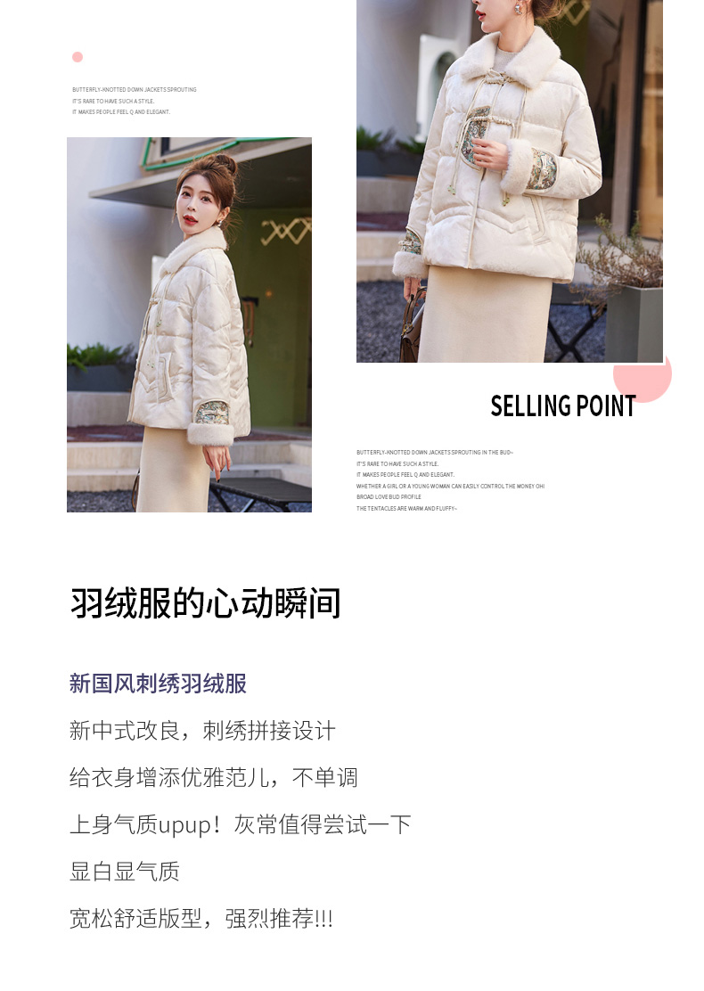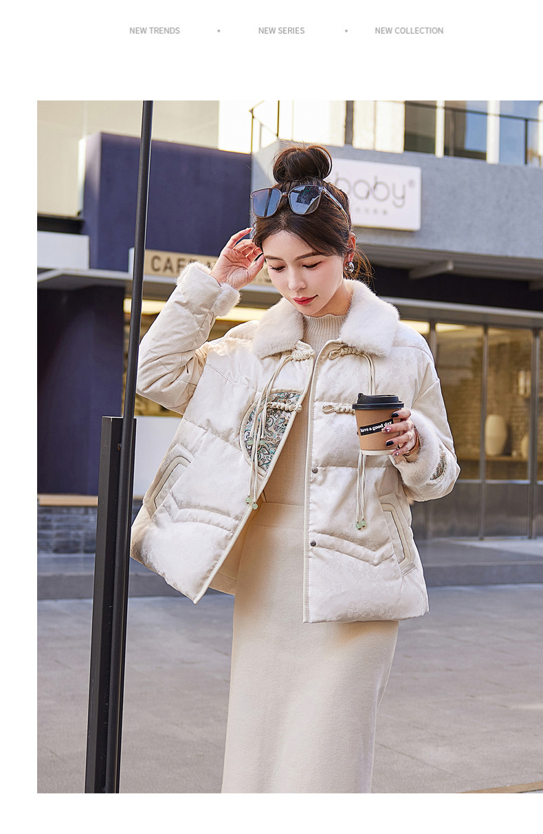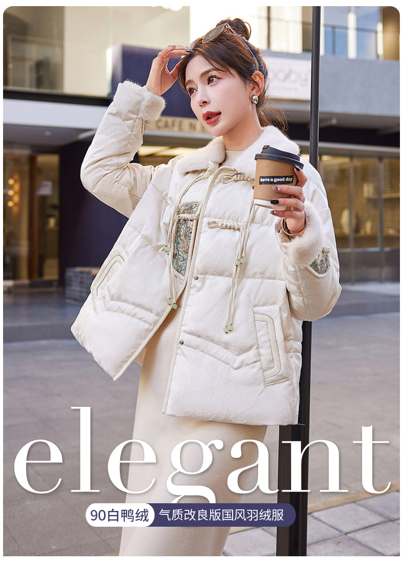冬季新款,90白鸭绒新中式盘扣短款减龄气质新款羽绒服HR-HYGG9003