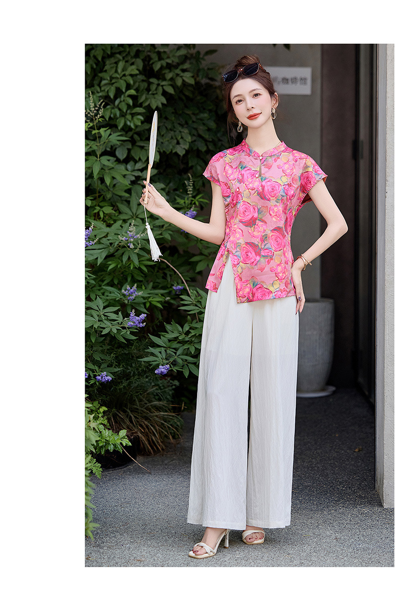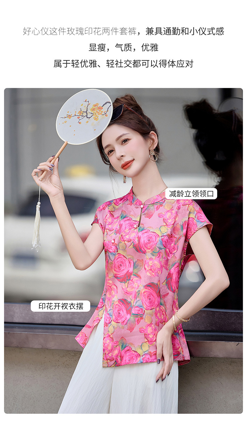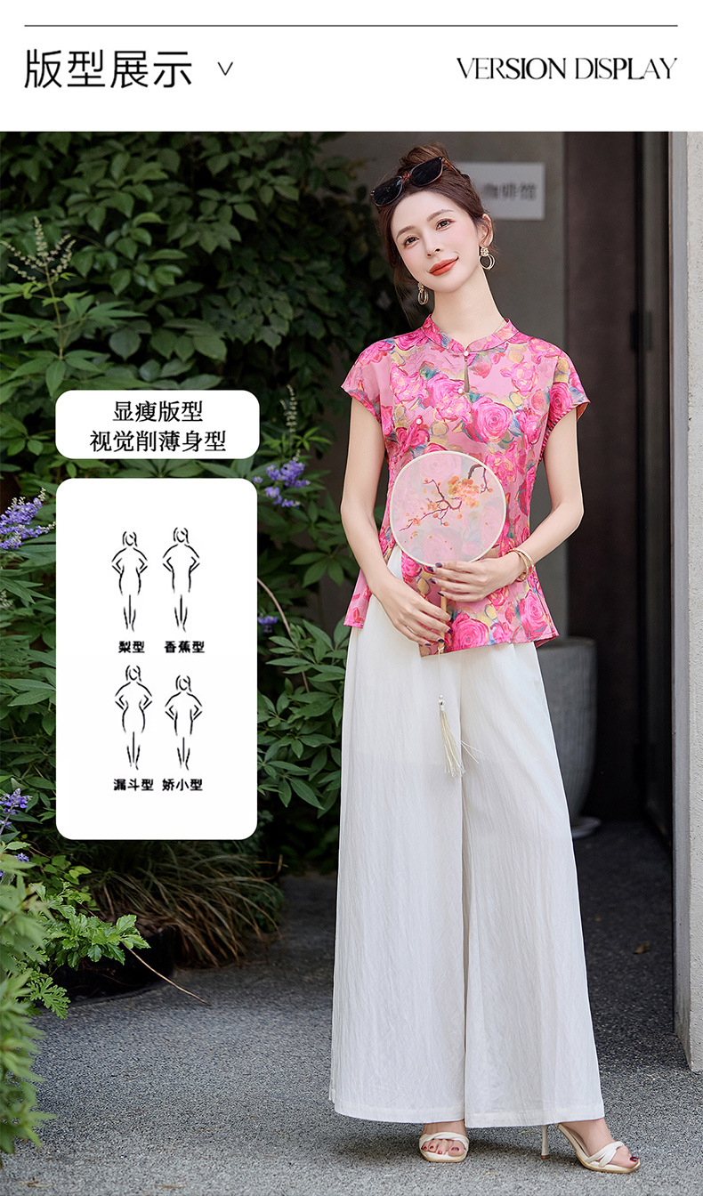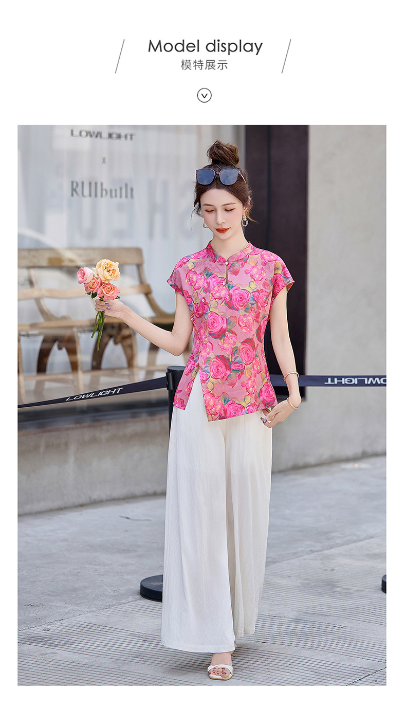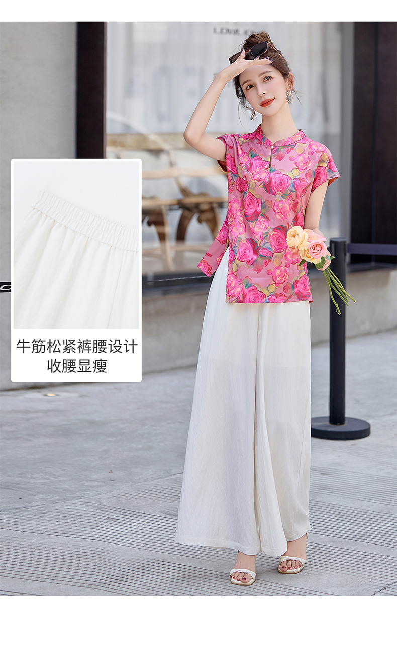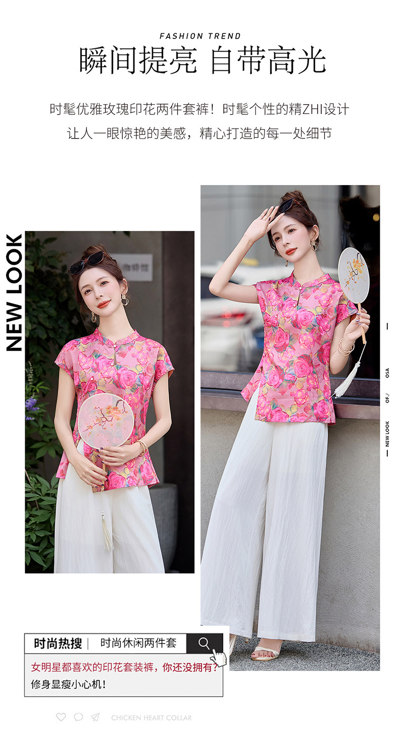 TZW-新中式国风套装女2025夏新款时尚气质印花马甲阔腿裤两件套