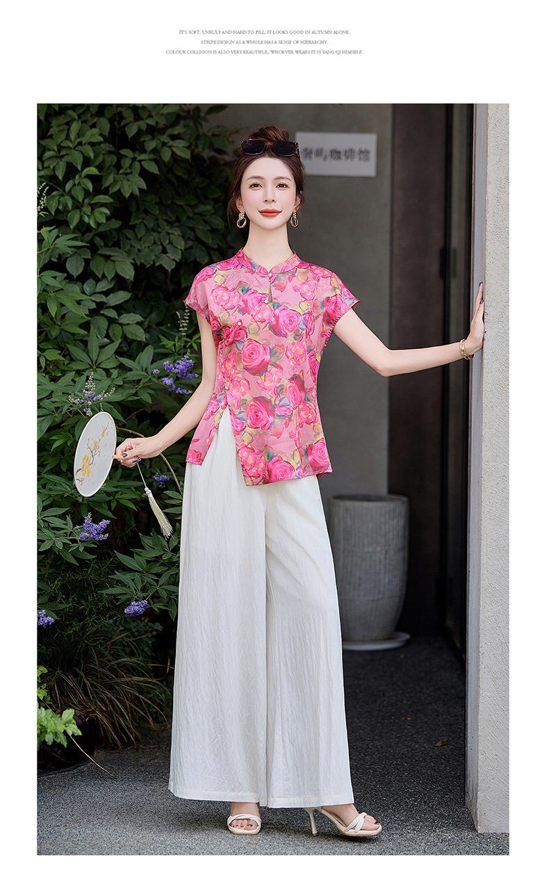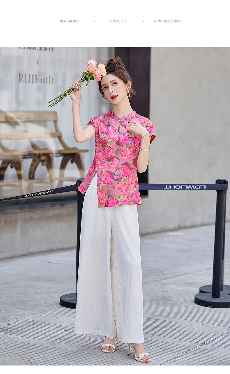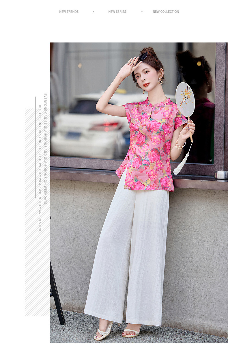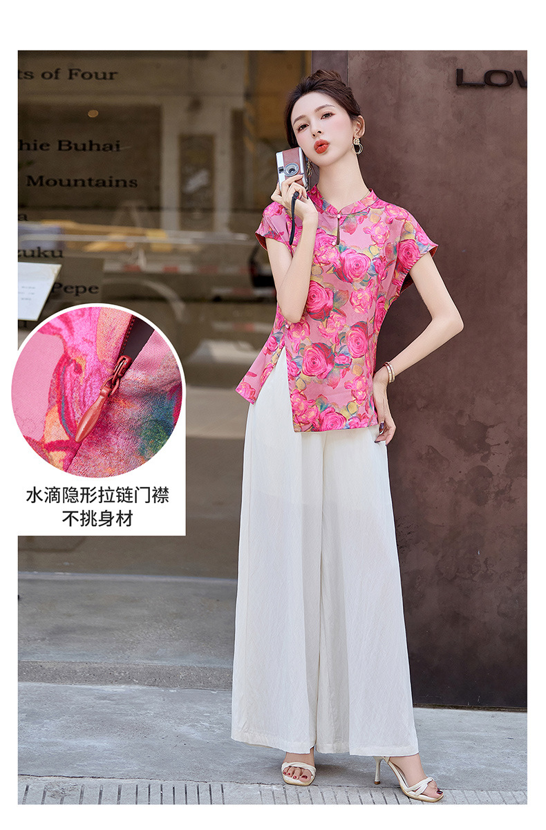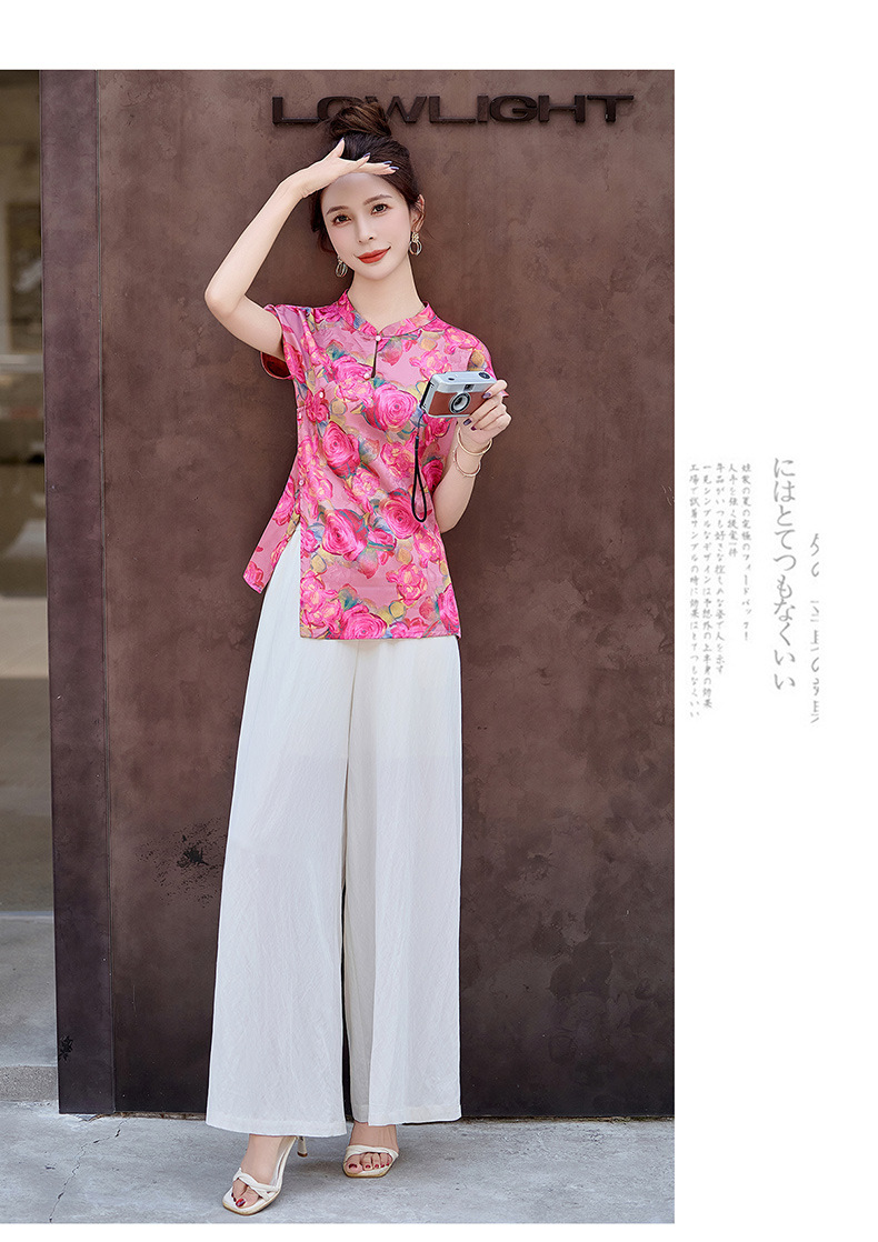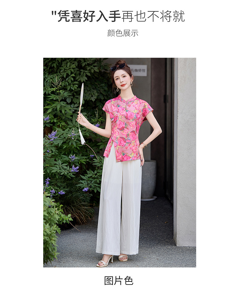 TZW-新中式国风套装女2025夏新款时尚气质印花马甲阔腿裤两件套